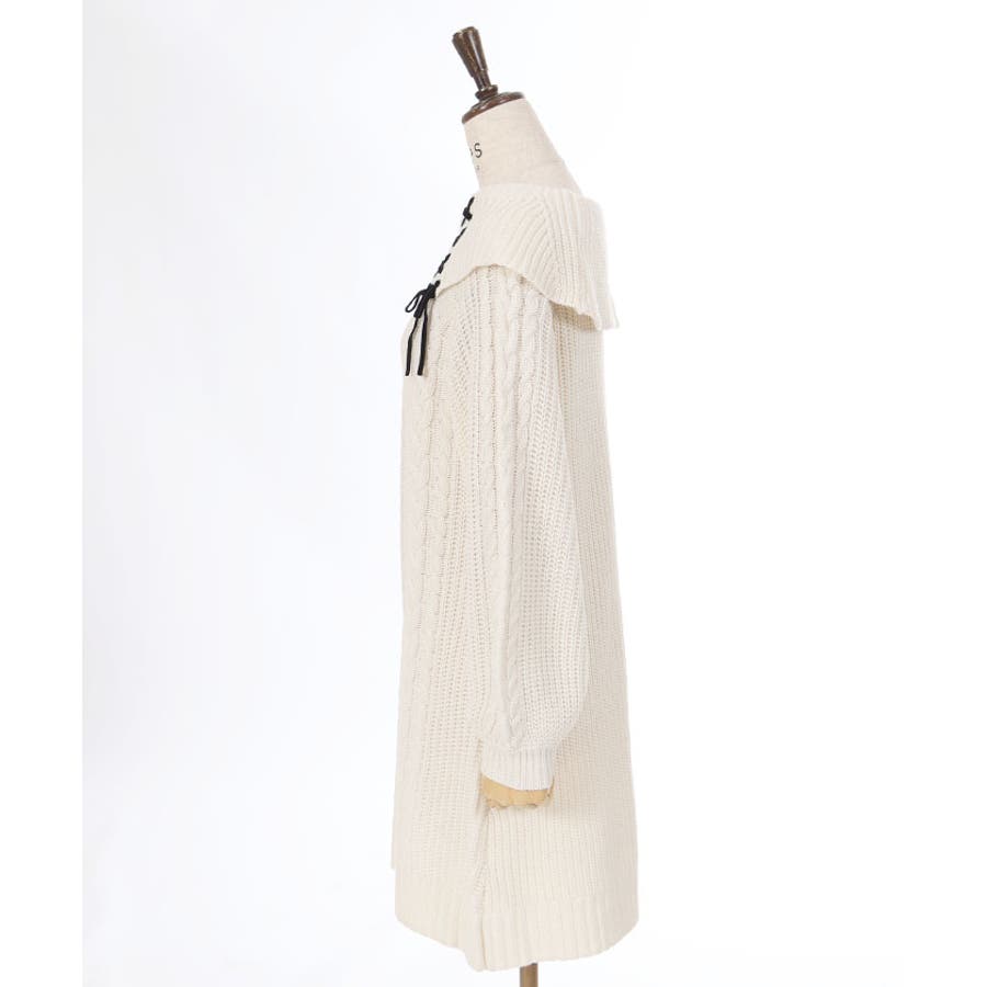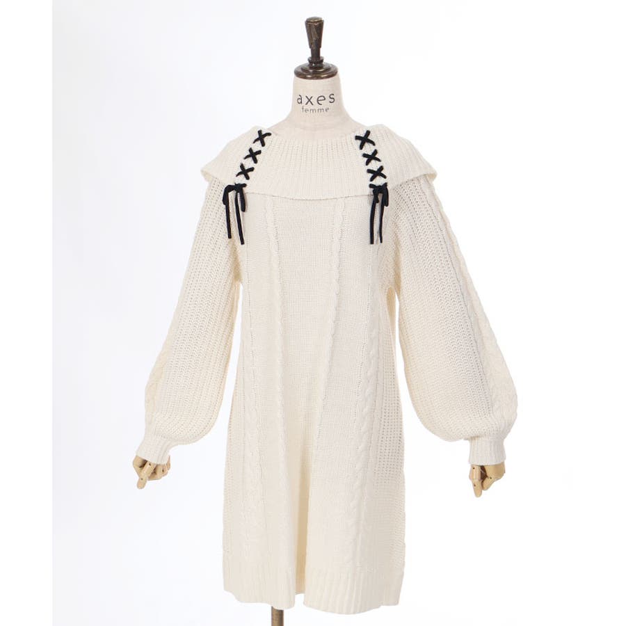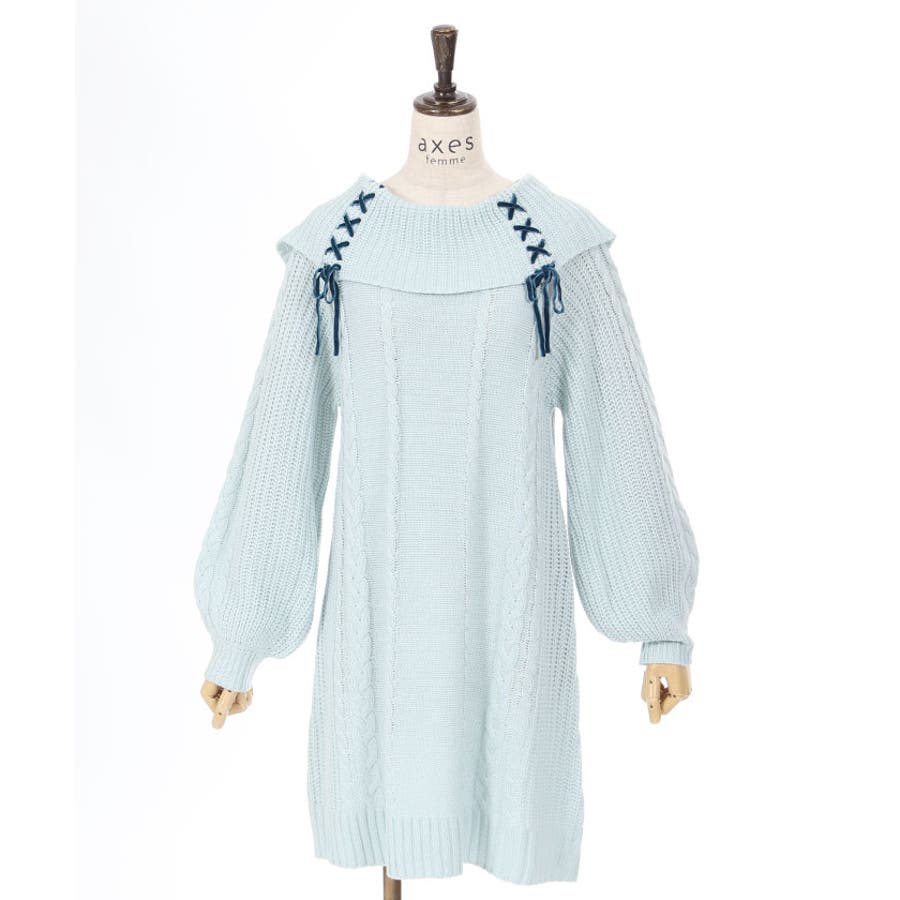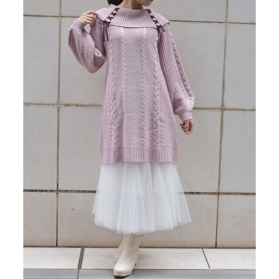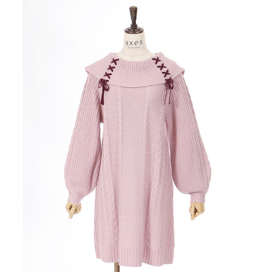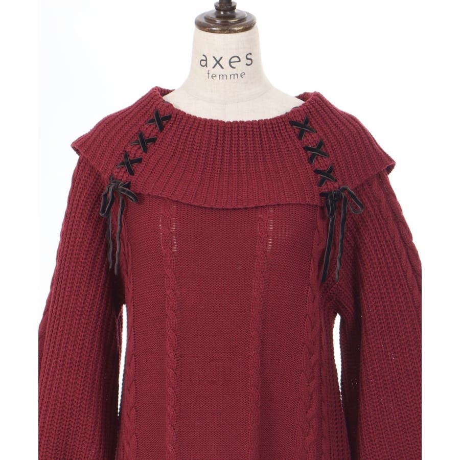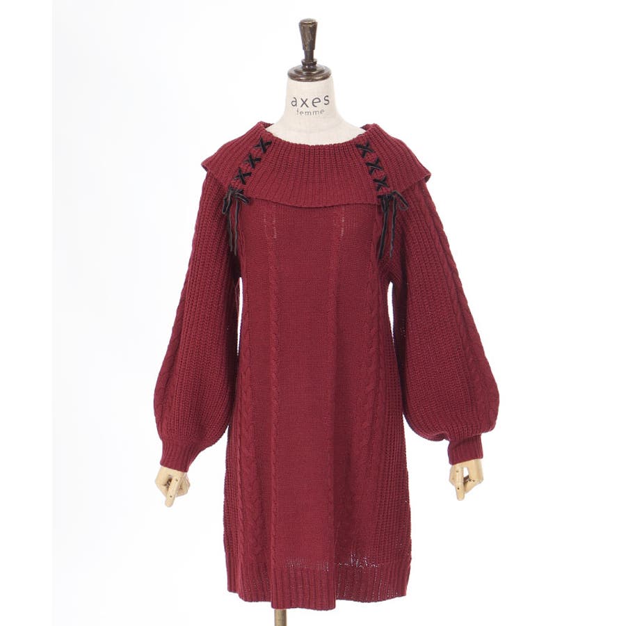 毎年大人気!レースアップがフェミニンな、オフタートルのニットチュニックです。