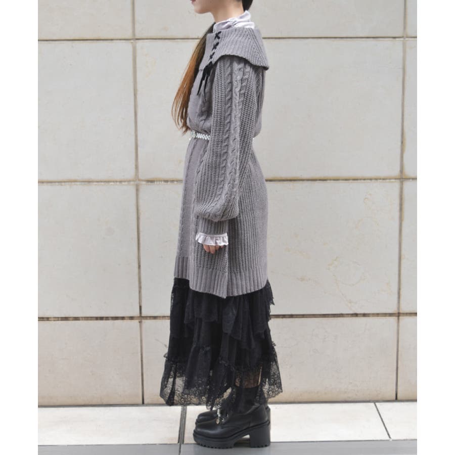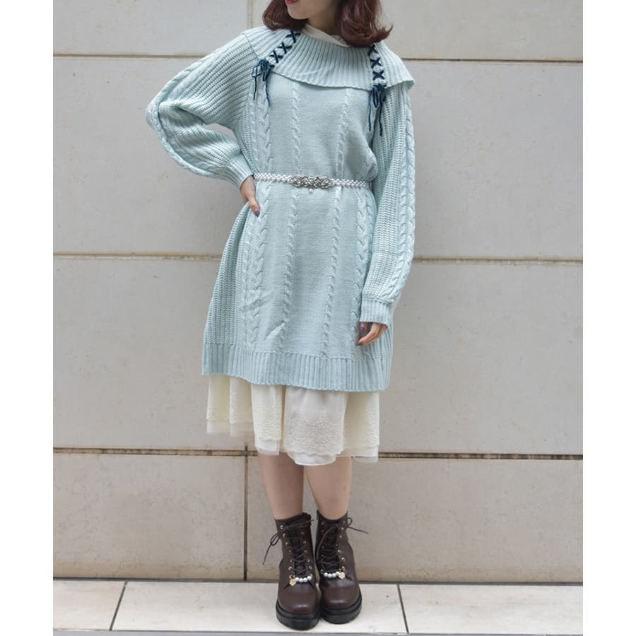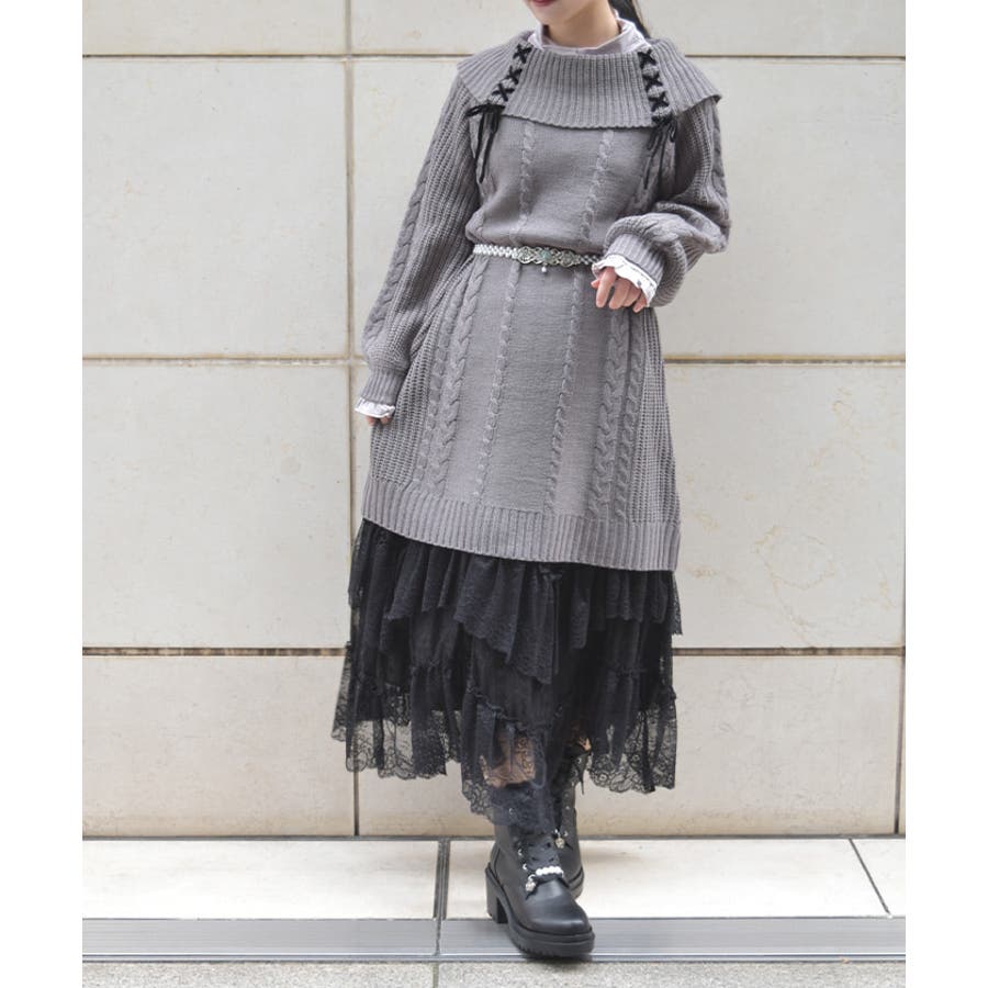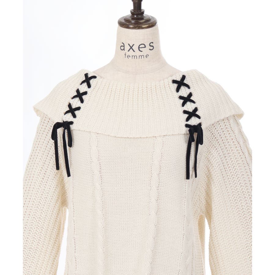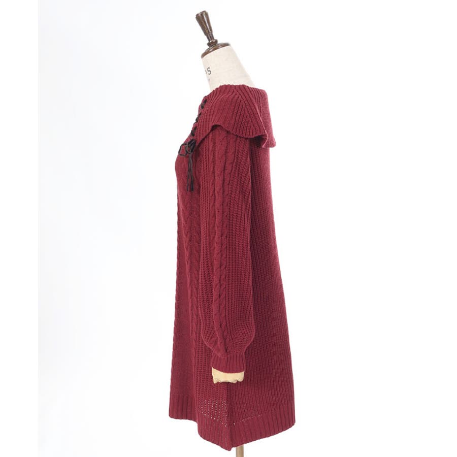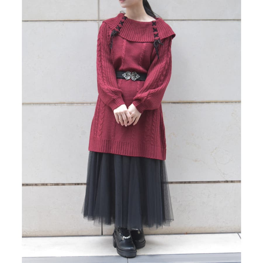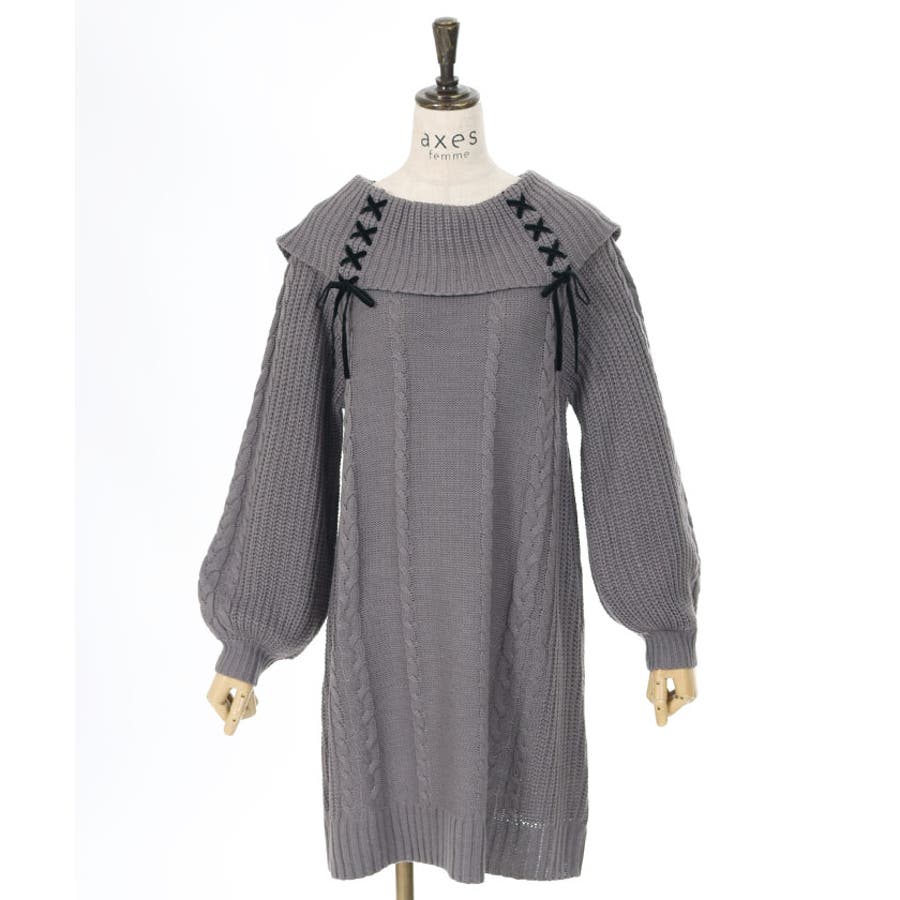 毎年大人気!レースアップがフェミニンな、オフタートルのニットチュニックです。
