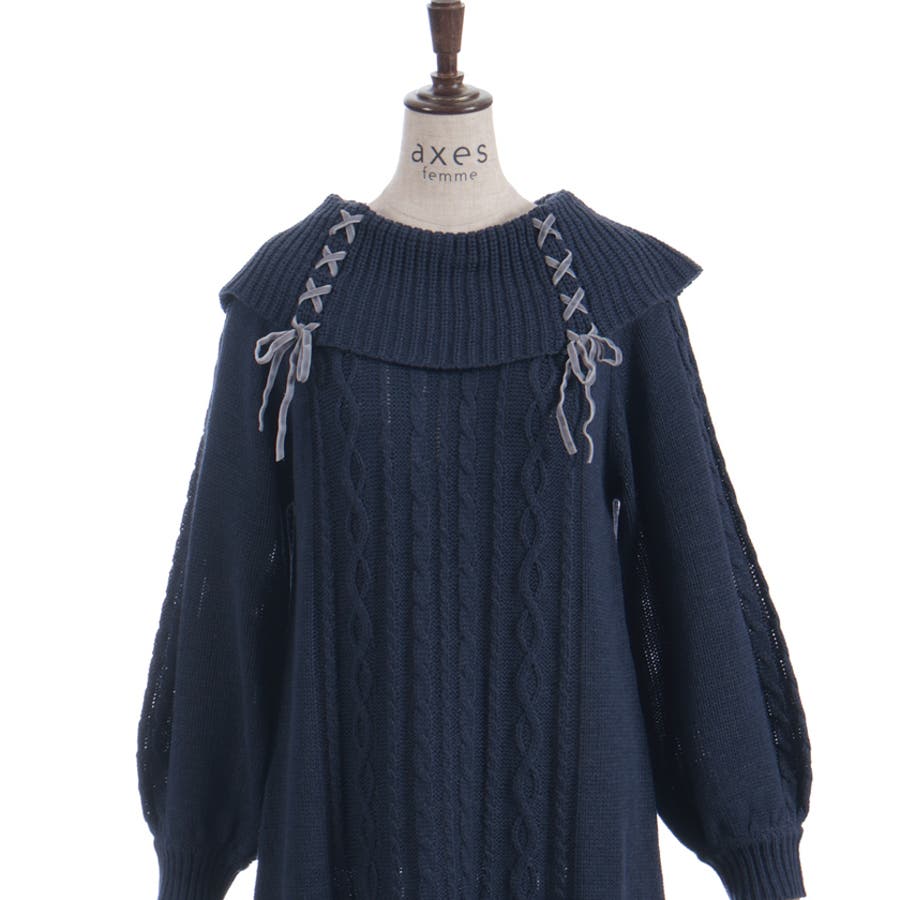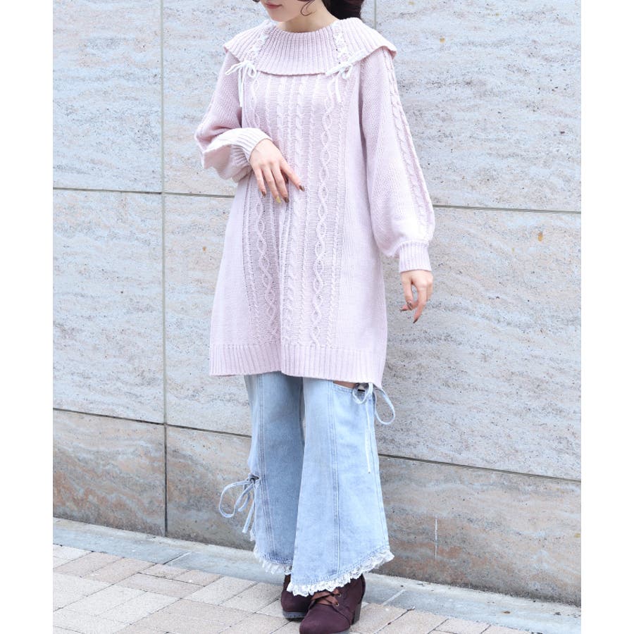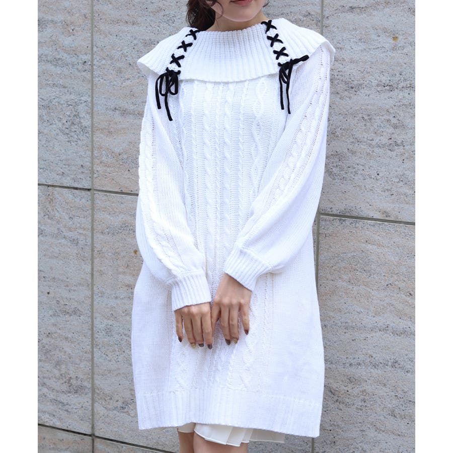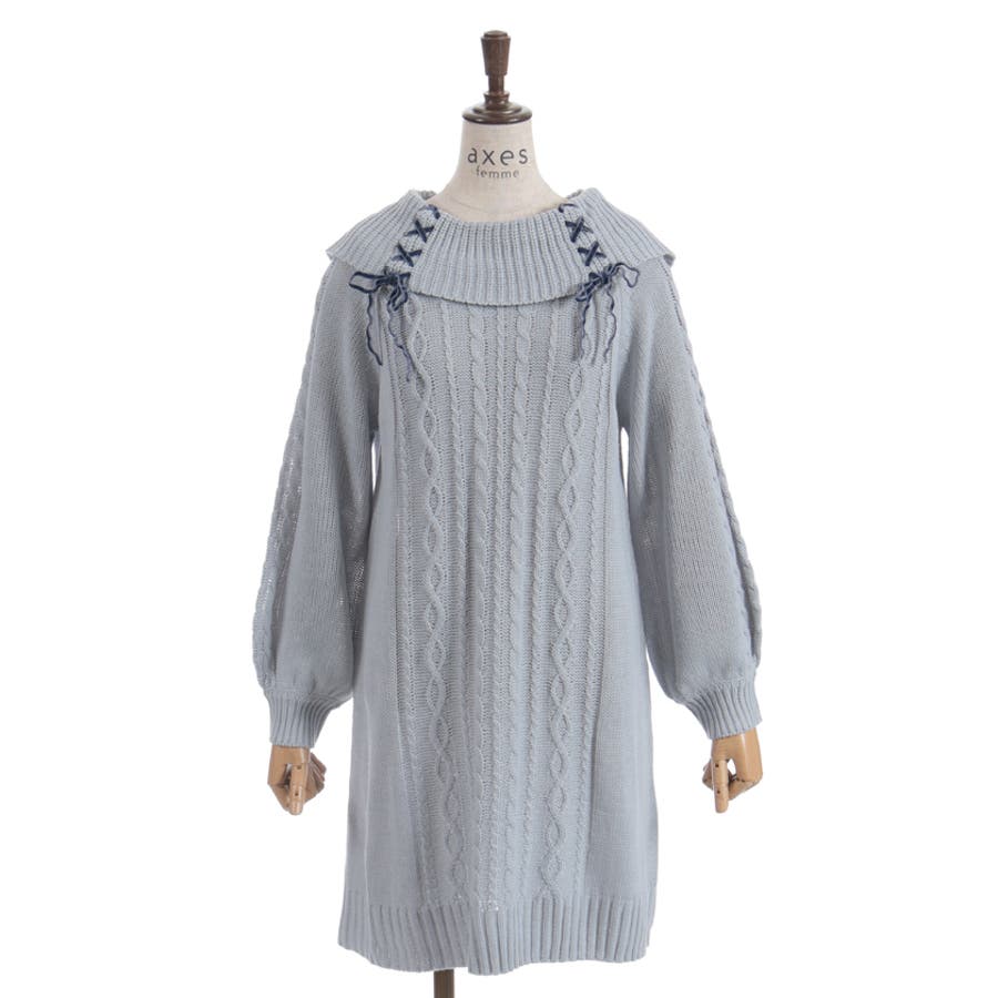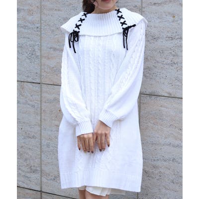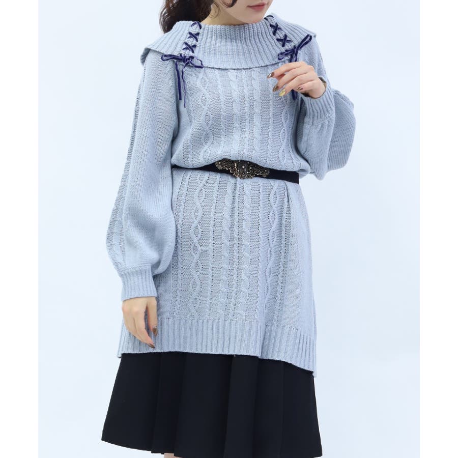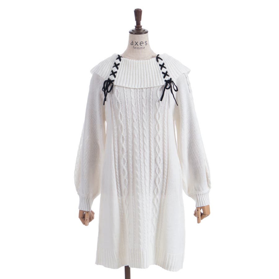 毎年大人気!レースアップがフェミニンな、オフタートルのニットチュニックです。
