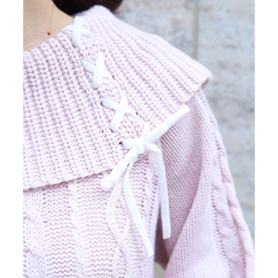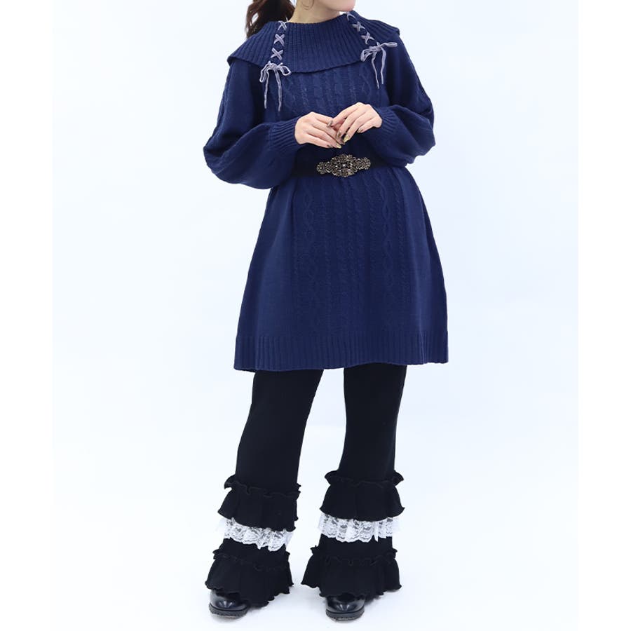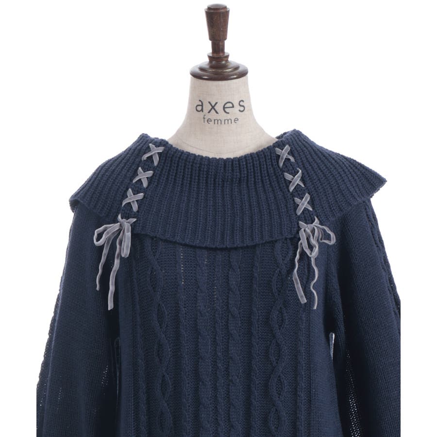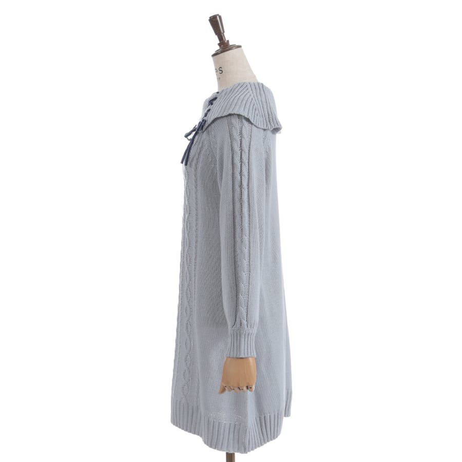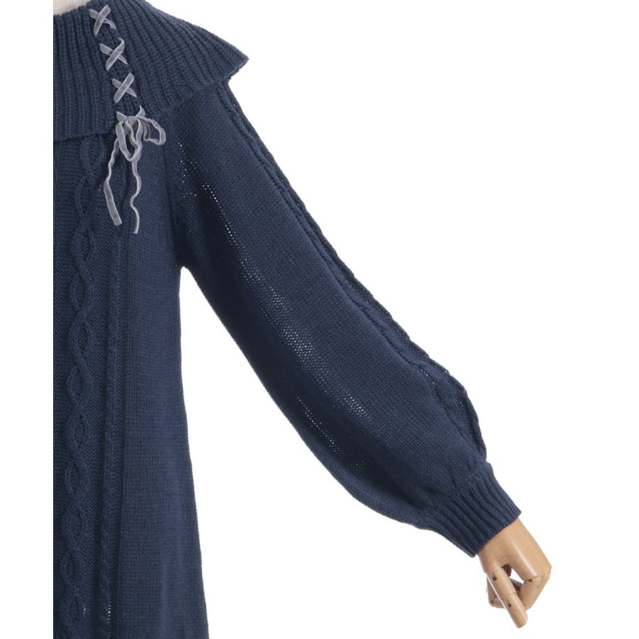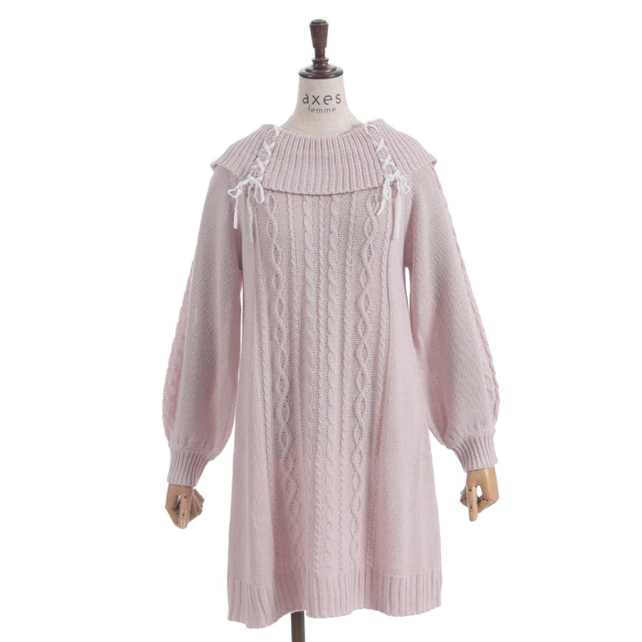 毎年大人気!レースアップがフェミニンな、オフタートルのニットチュニックです。