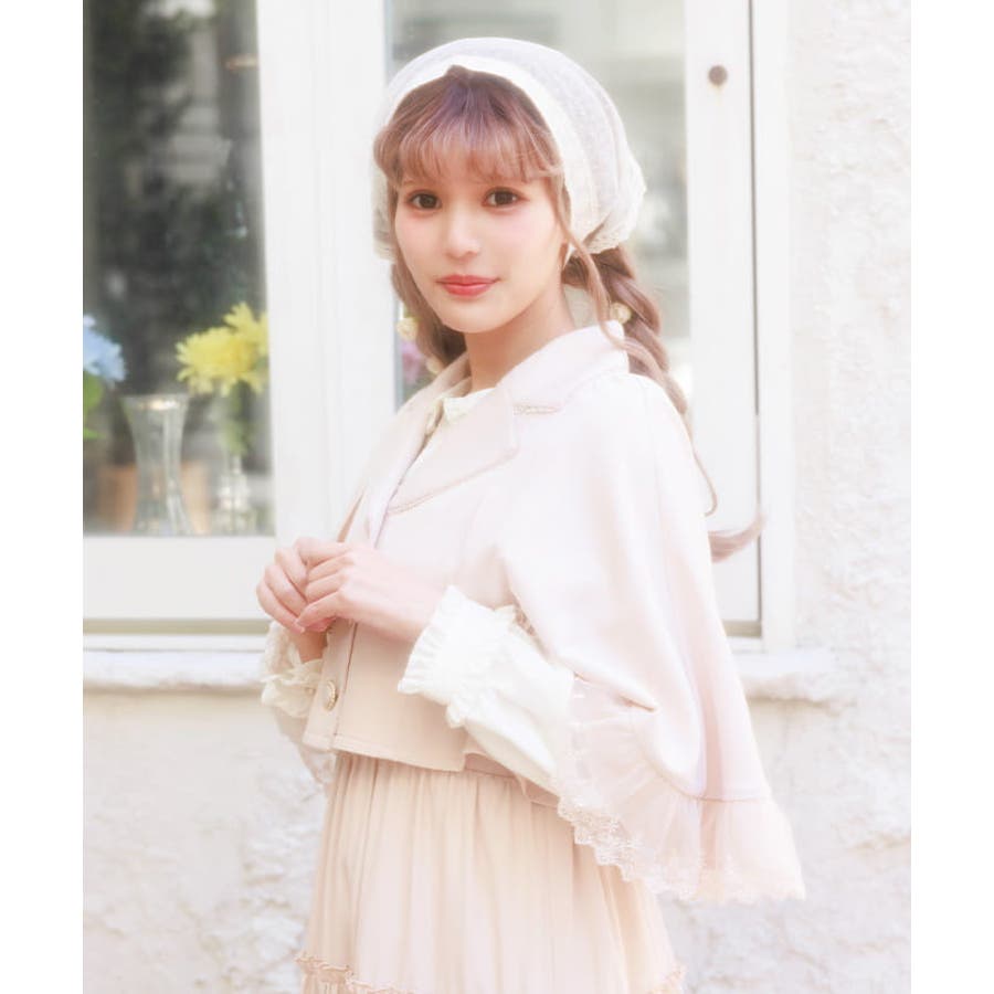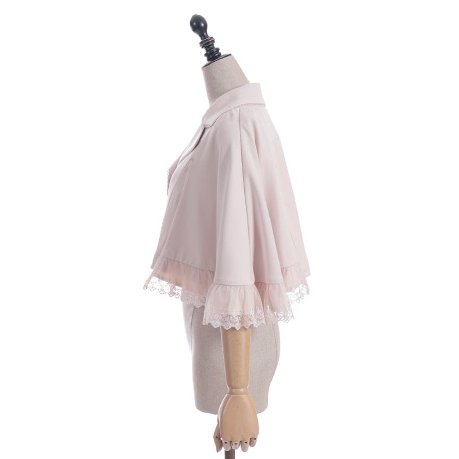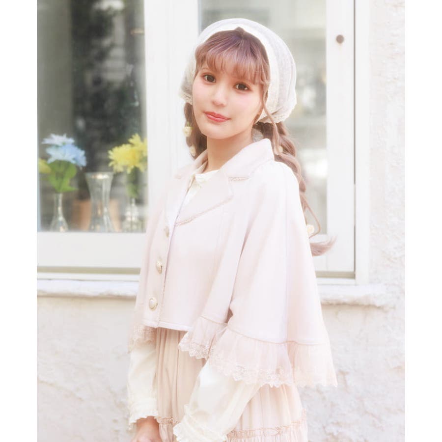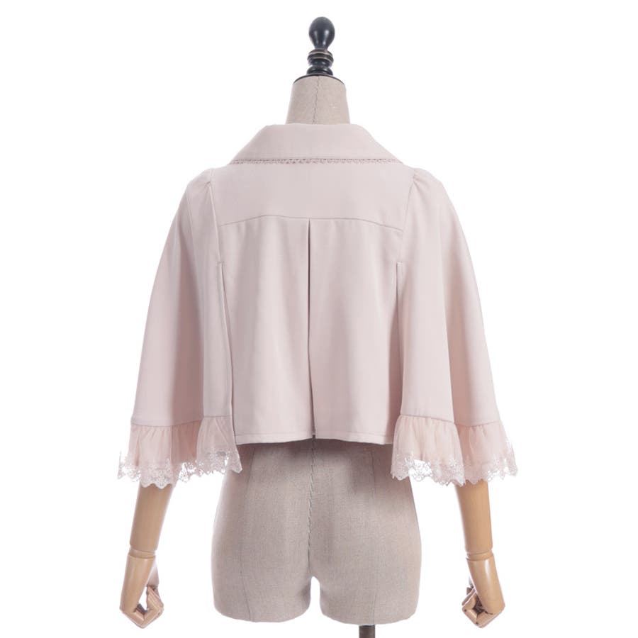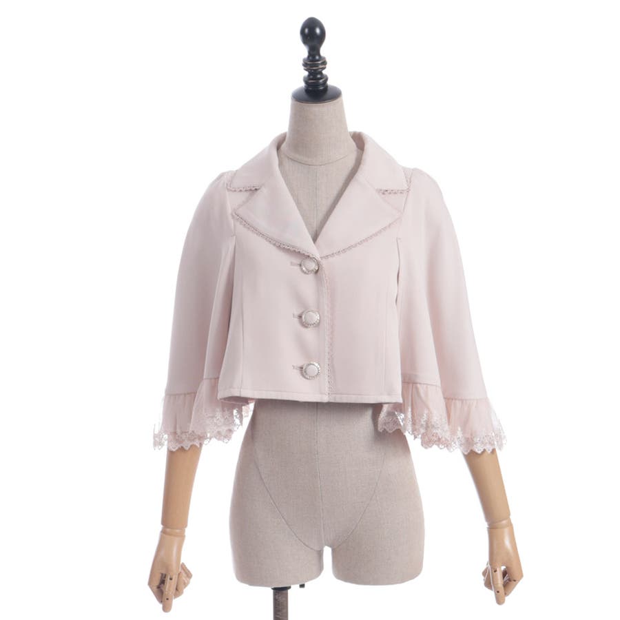袖にあしらわれたレースが華やかなケープジャケットです。