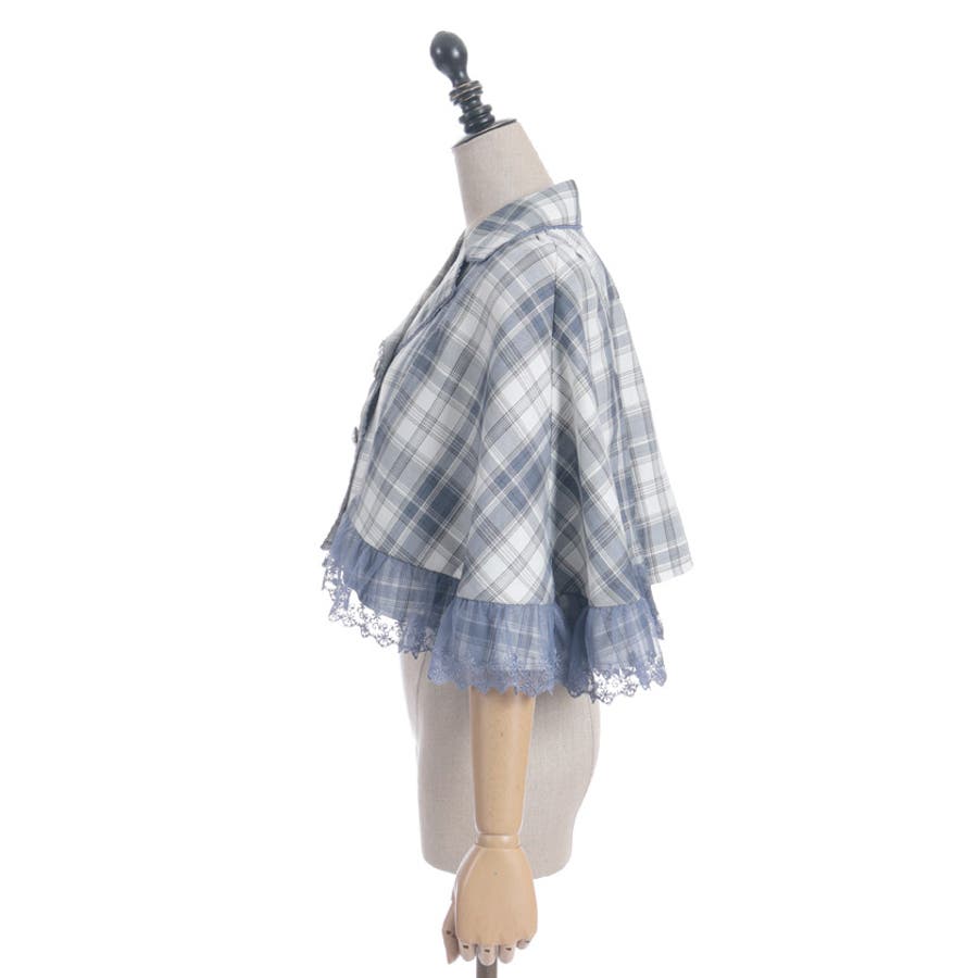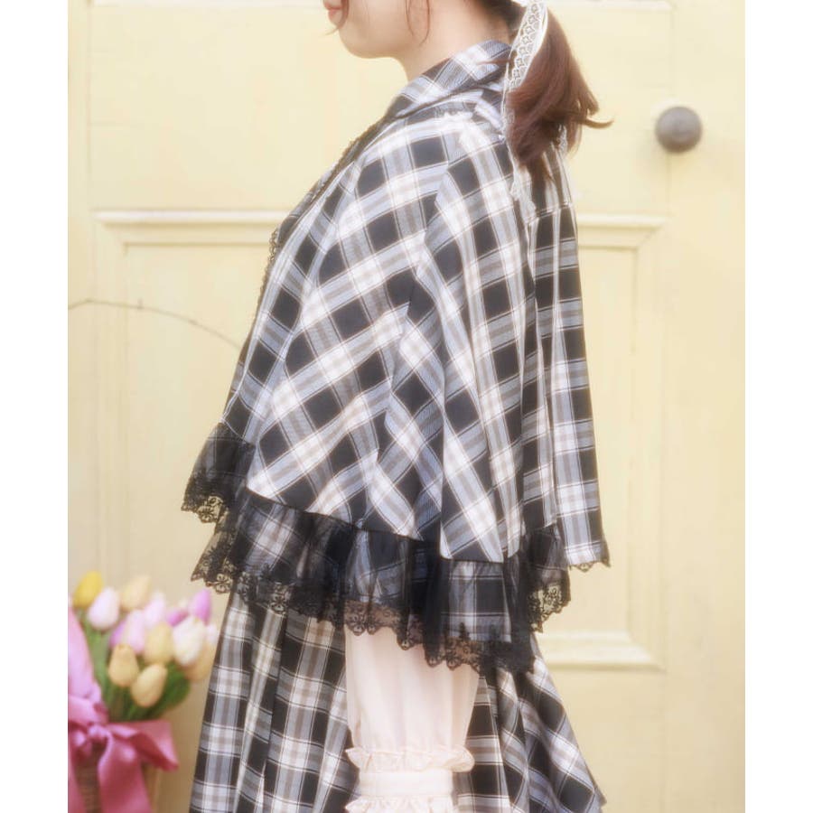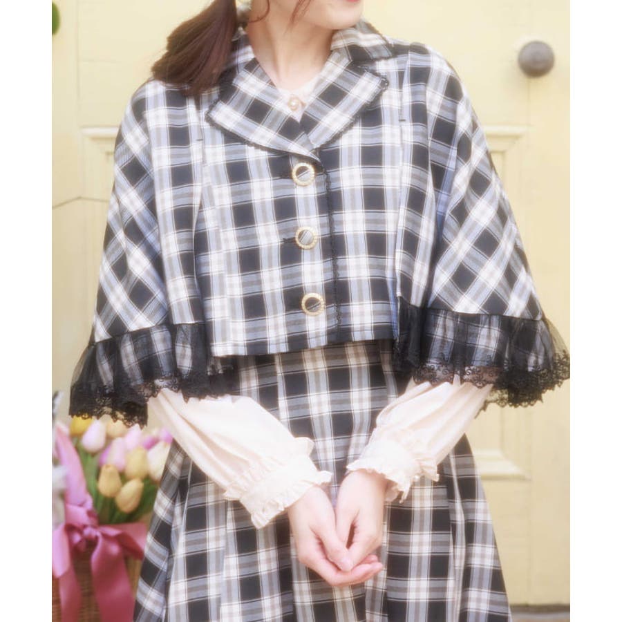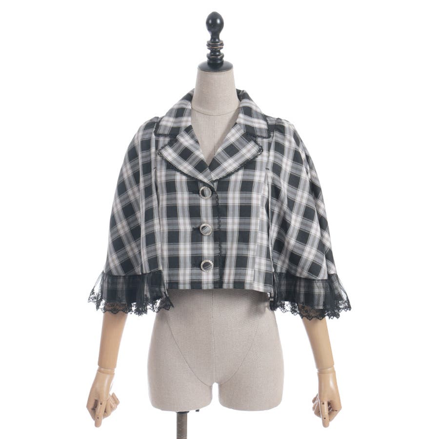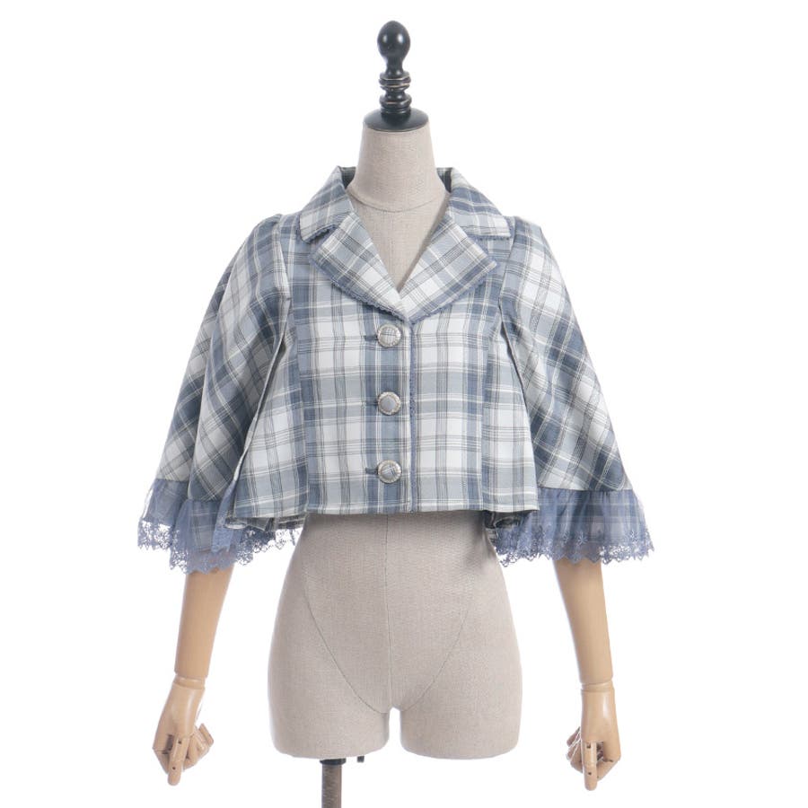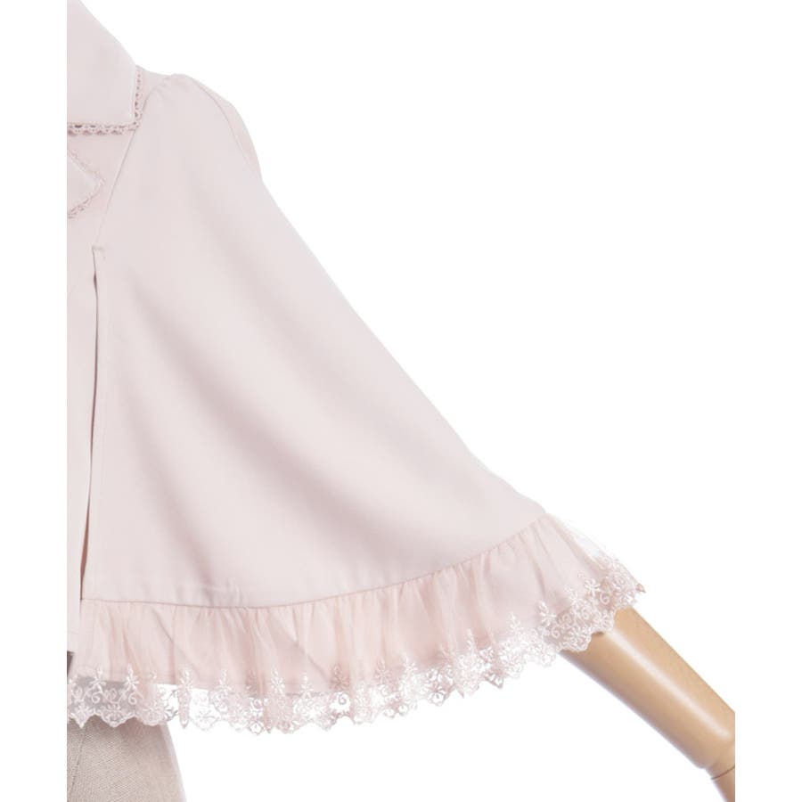袖にあしらわれたレースが華やかなケープジャケットです。
