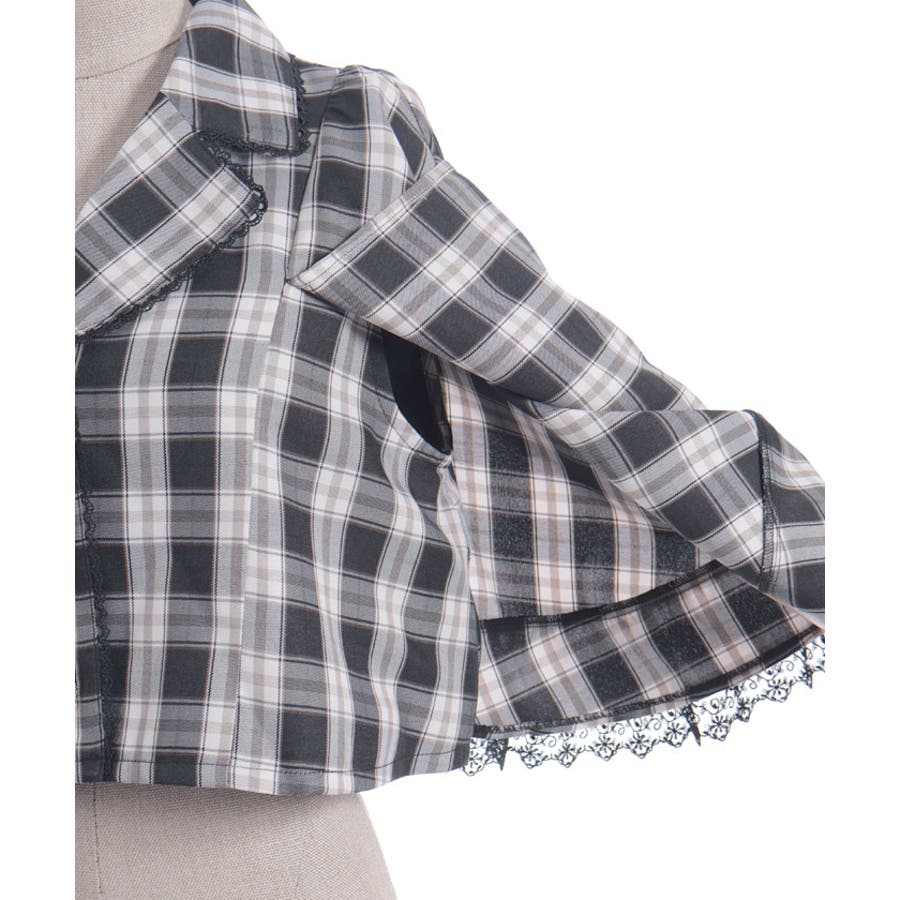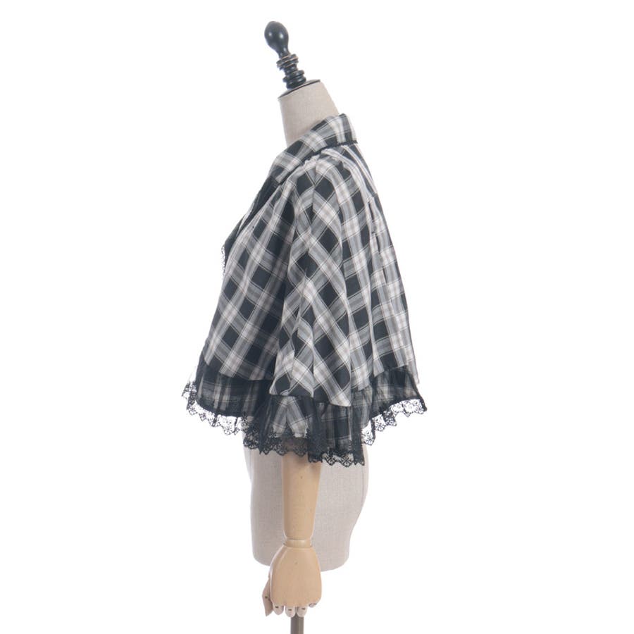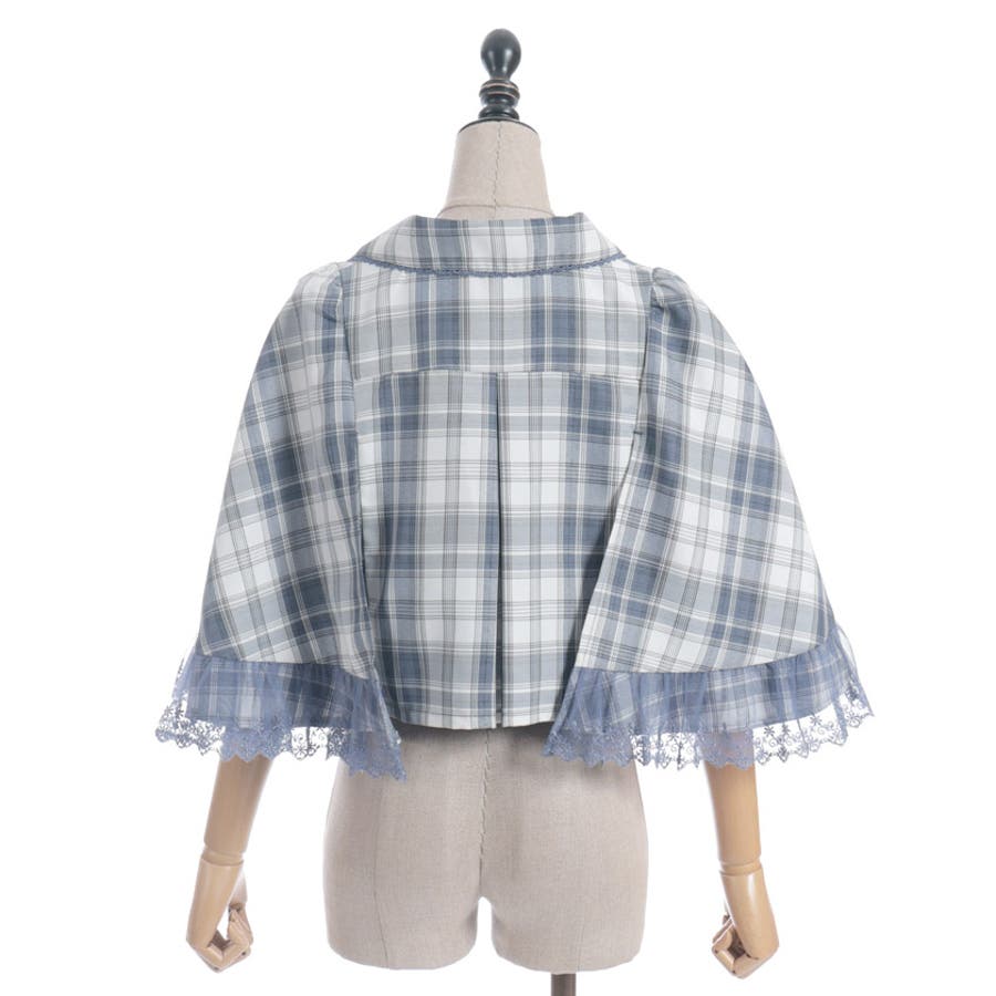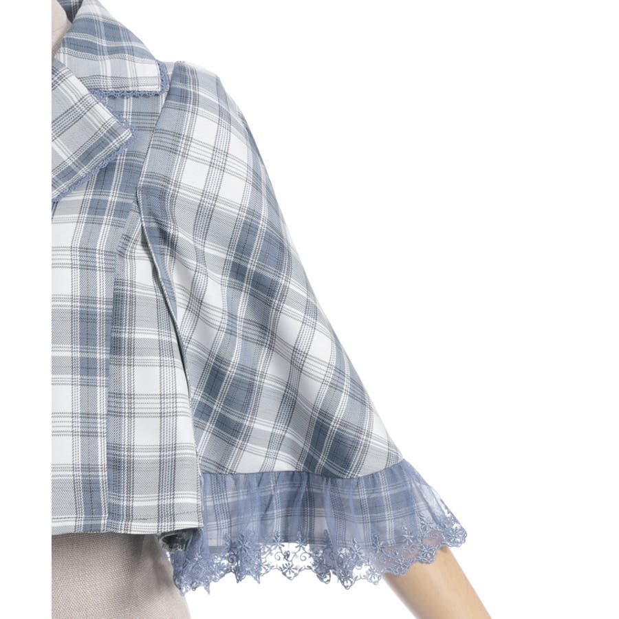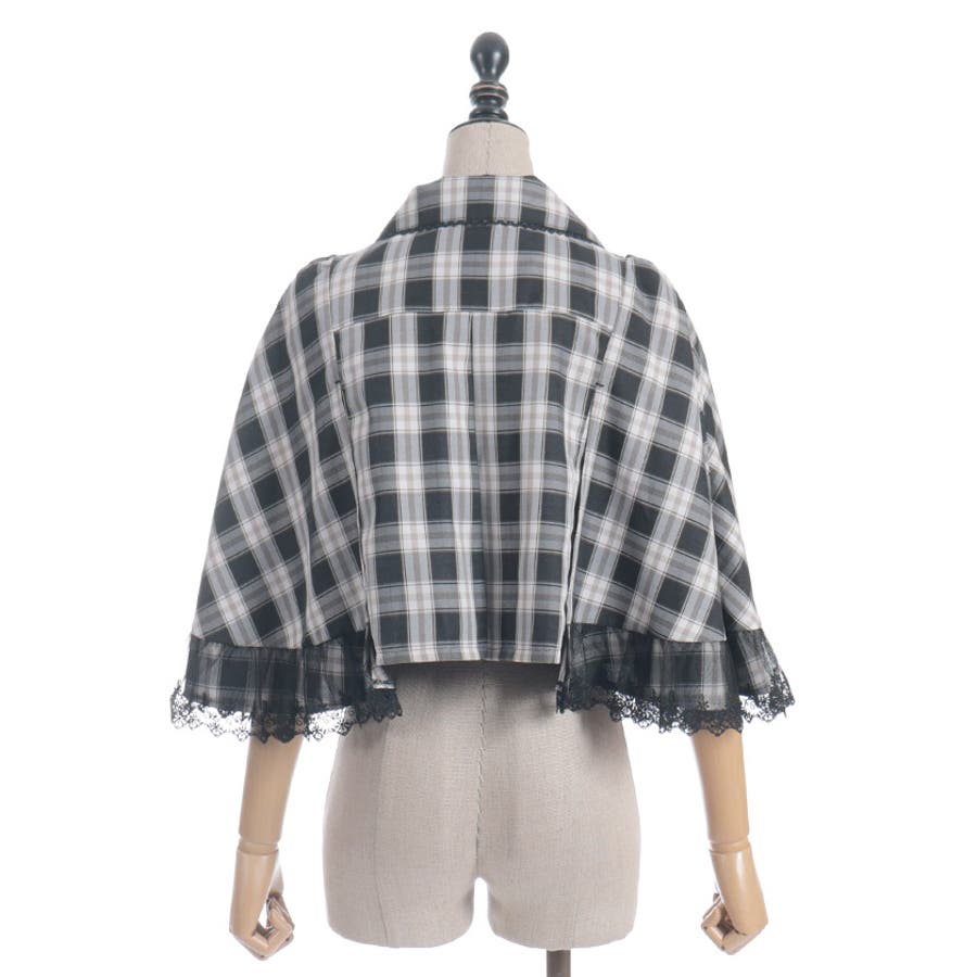 袖にあしらわれたレースが華やかなケープジャケットです。