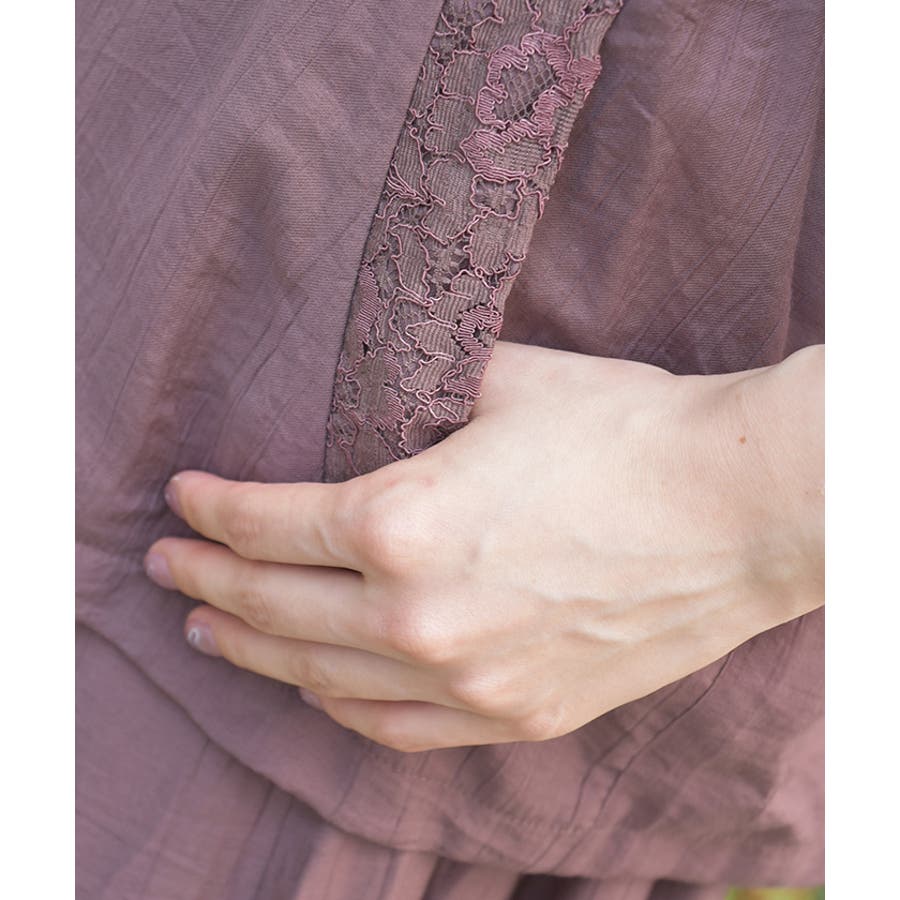 | 素材 | 本体:レーヨン76%、 :ナイロン18%、 :再生繊維6%、 :(セルロース)、レース:ナイロン57%、 :レーヨン43% |