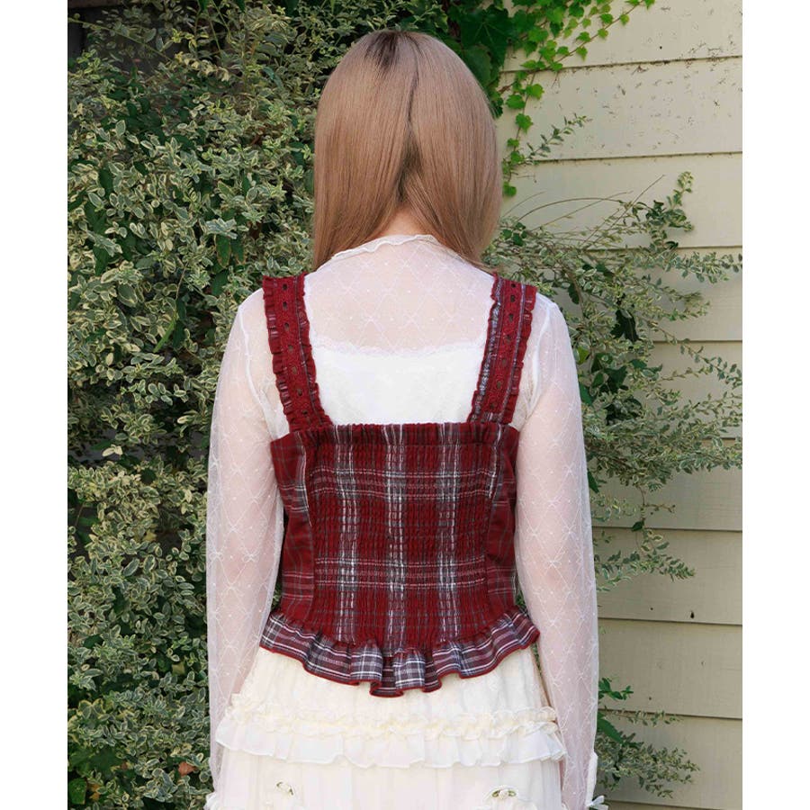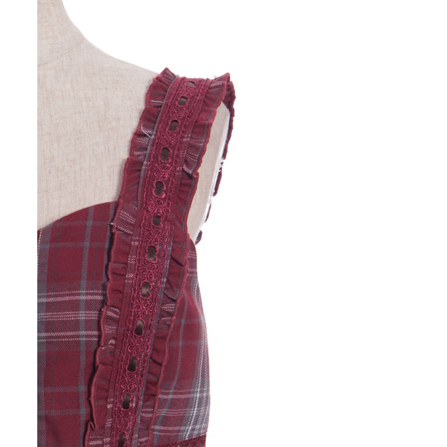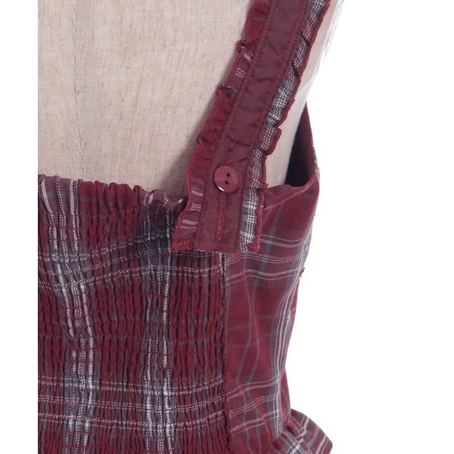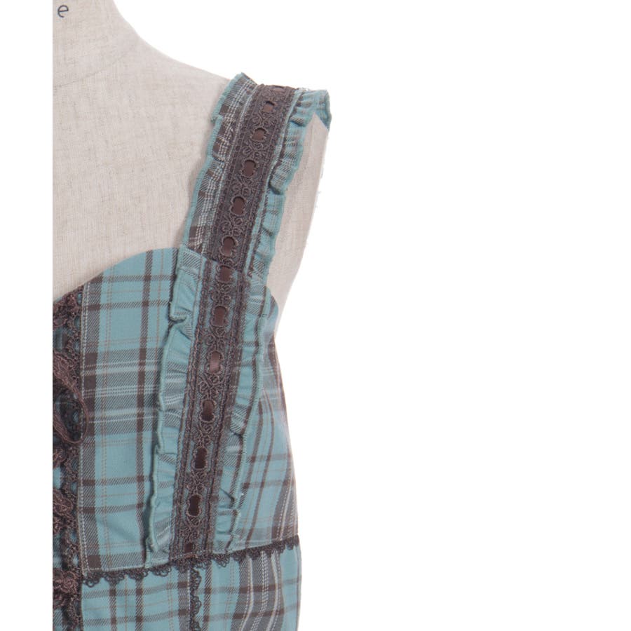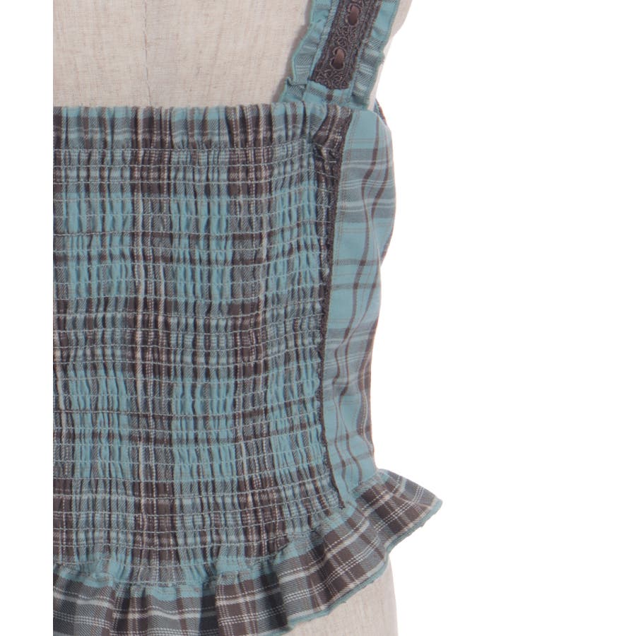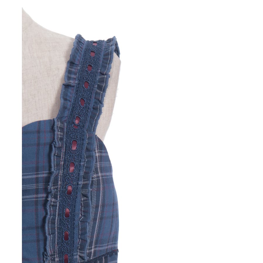 肩紐はボタンで長さ調整が可能。クラシカルなチェック柄と繊細なディテールで、スタイリングにさりげない可愛らしさをプラスします。