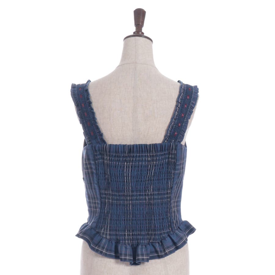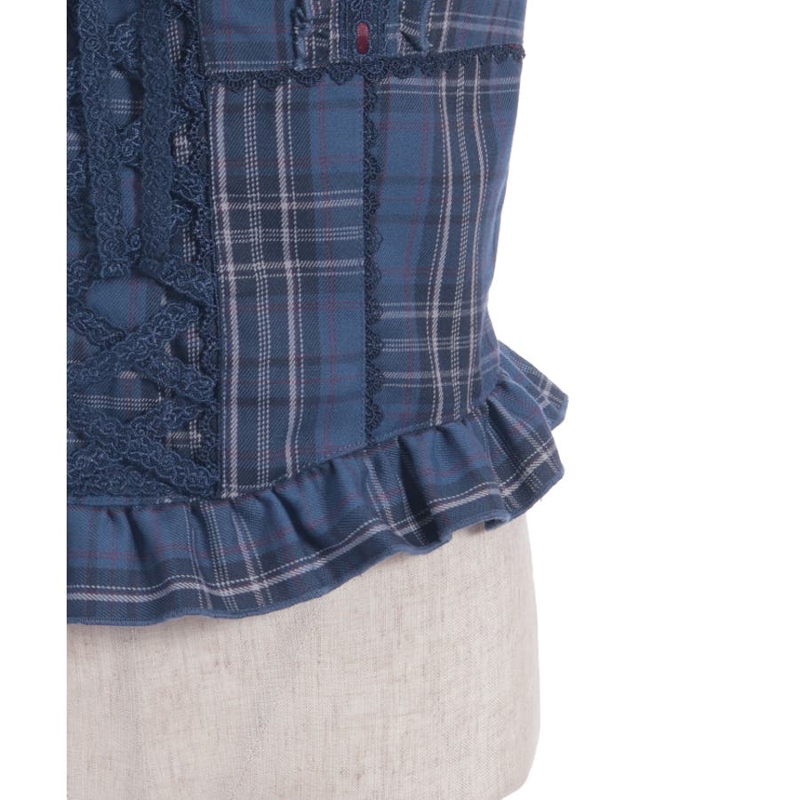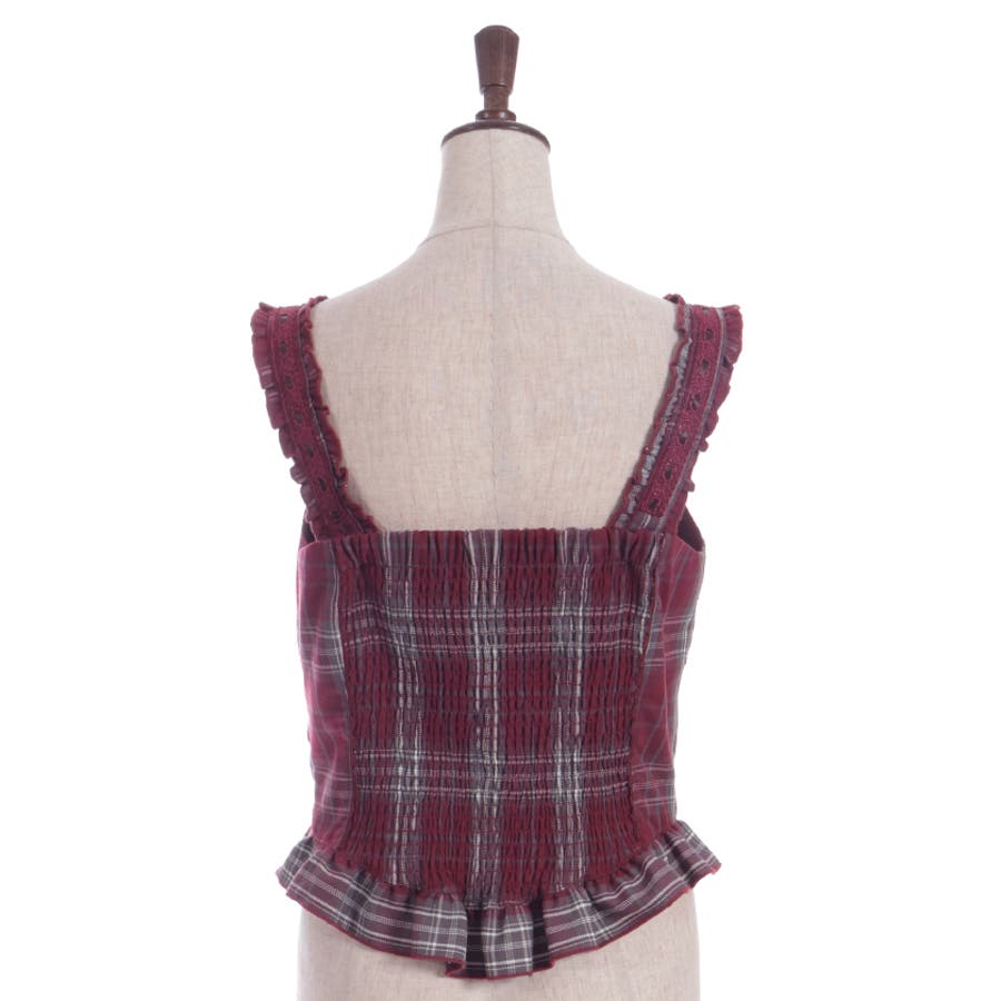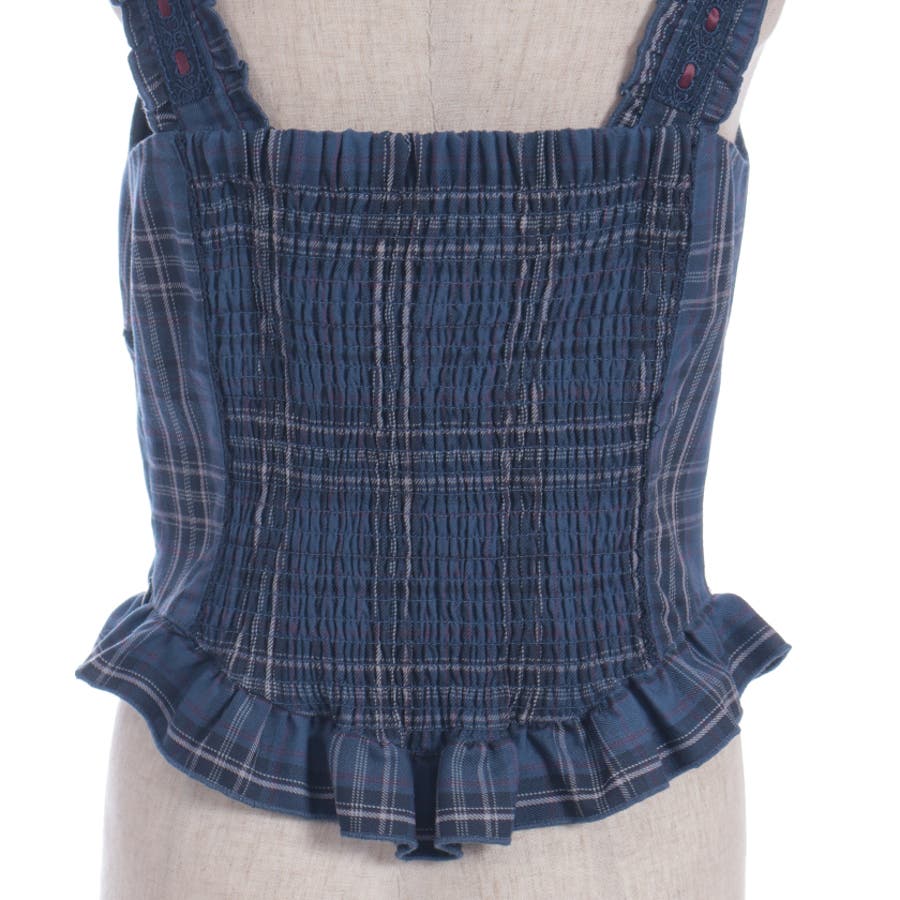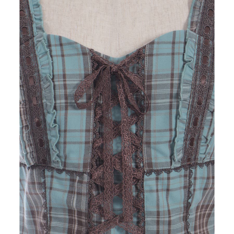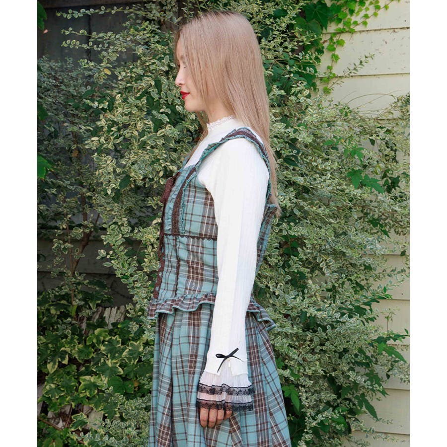 肩紐はボタンで長さ調整が可能。クラシカルなチェック柄と繊細なディテールで、スタイリングにさりげない可愛らしさをプラスします。