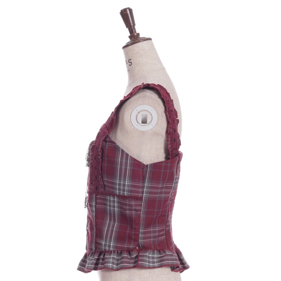 フロントのレースアップデザインがアクセントになったビスチェ。後ろはシャーリングゴム仕様でフィット感があり、サイドファスナーは裾から上に開けるタイプで着脱もスムーズです。