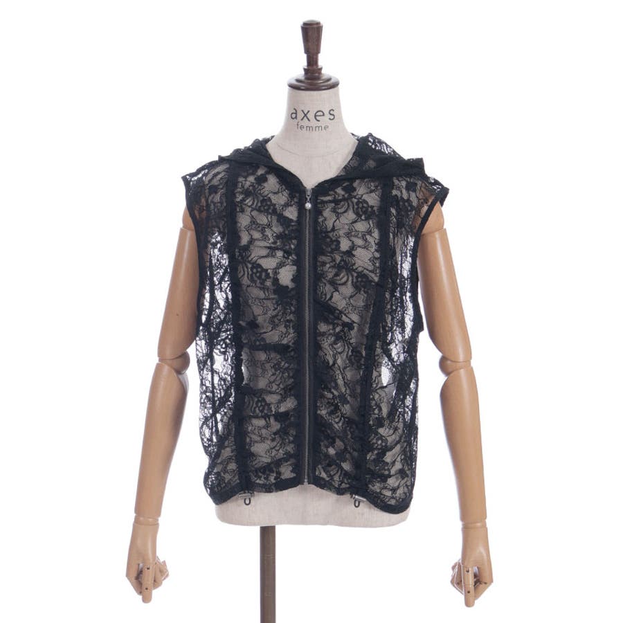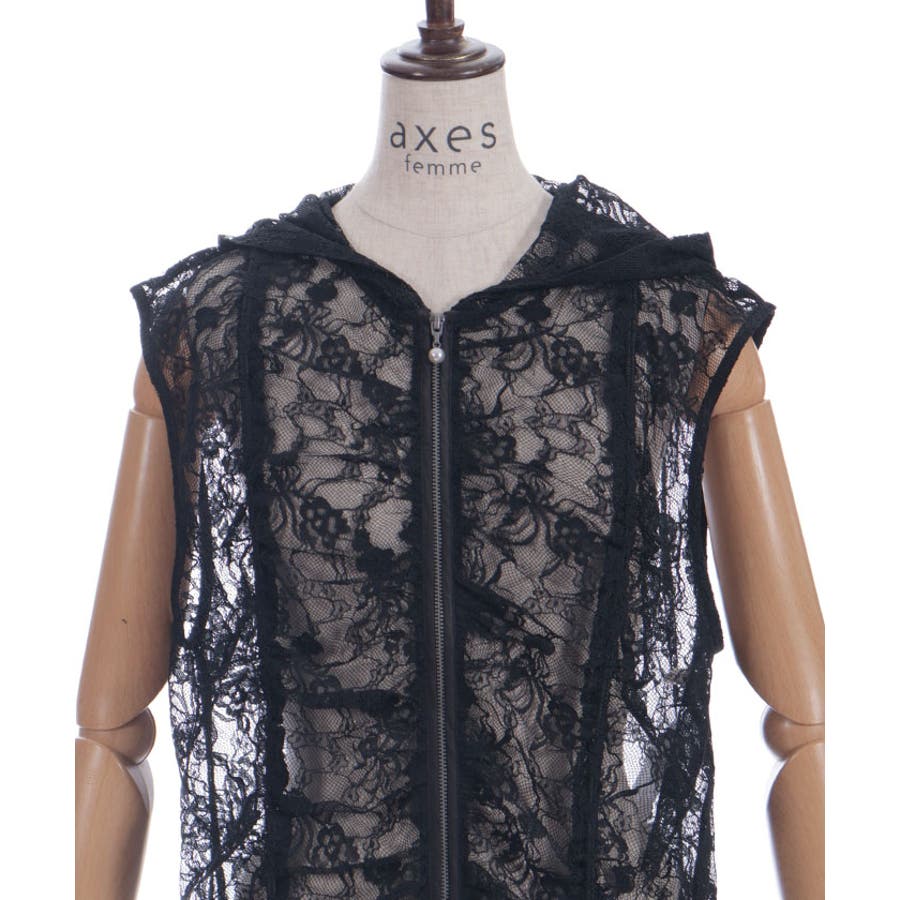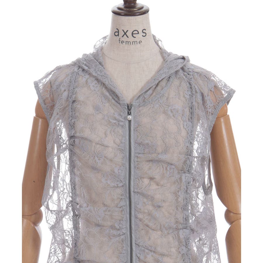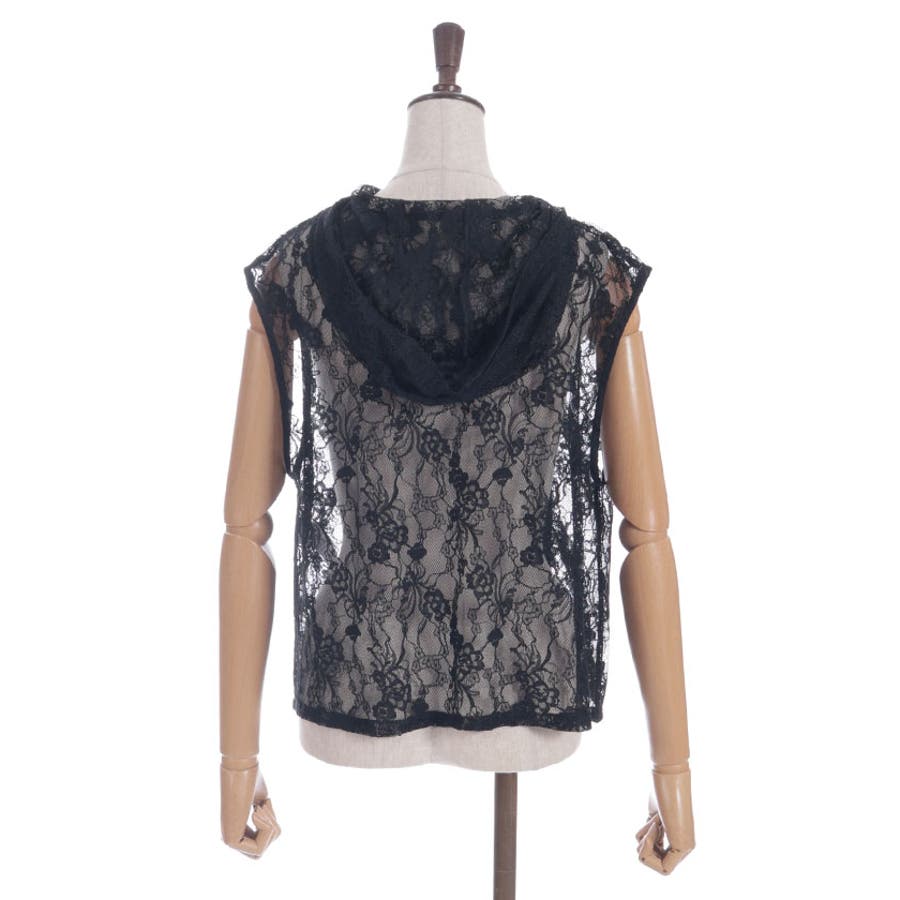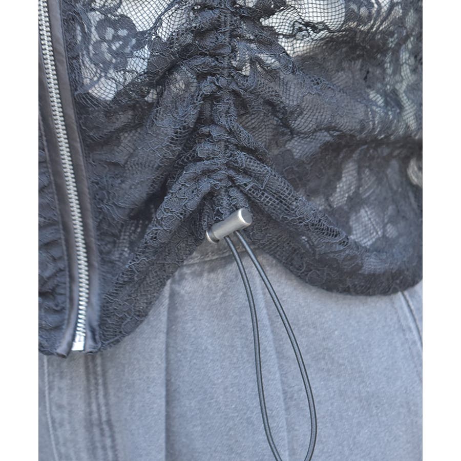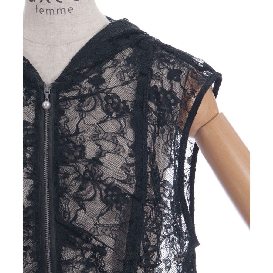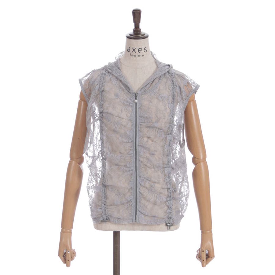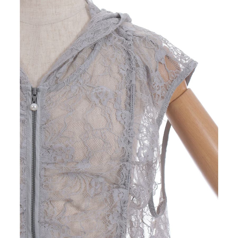 繊細なレース素材とドロストデザインが魅力のフード付きベストはレイヤードスタイルで一気にトレンドライクな印象に仕上がるアイテムです。