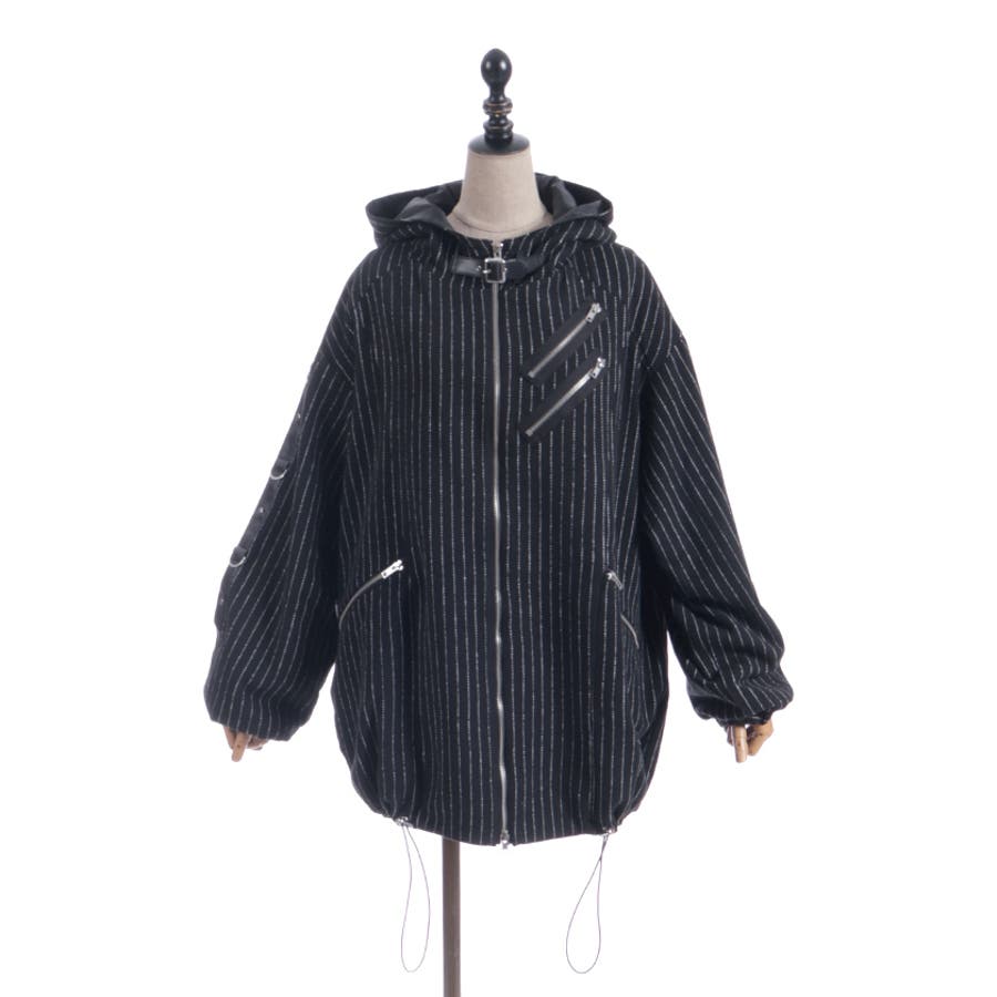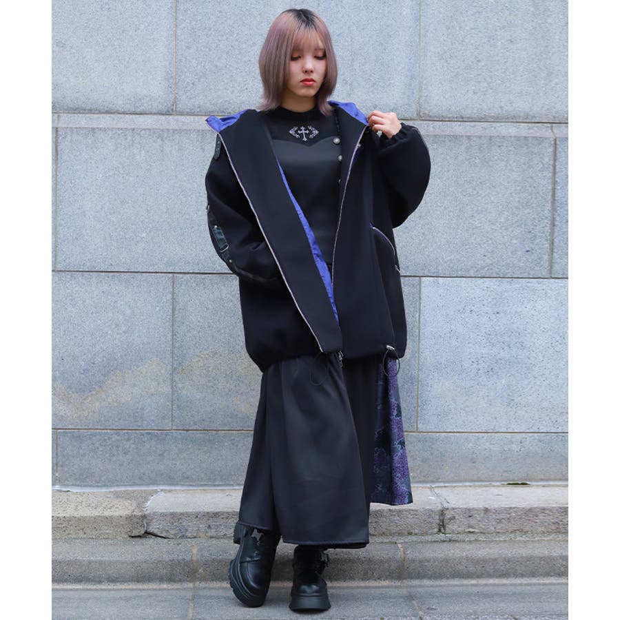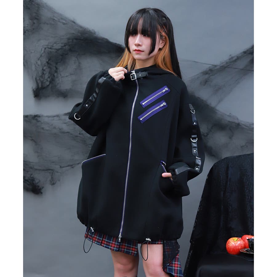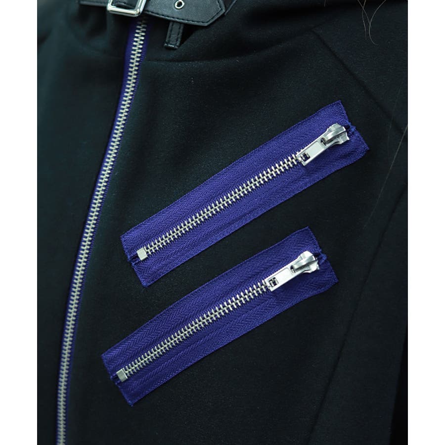 胸元の飾りファスナーで辛口なアクセントをプラスしました。