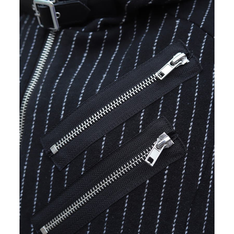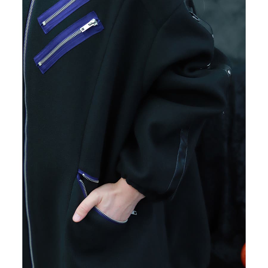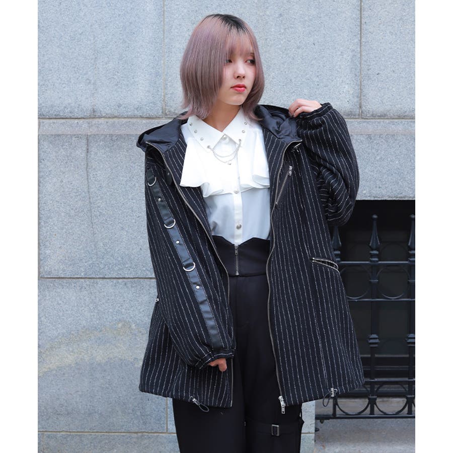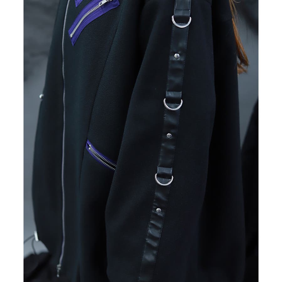 胸元の飾りファスナーで辛口なアクセントをプラスしました。