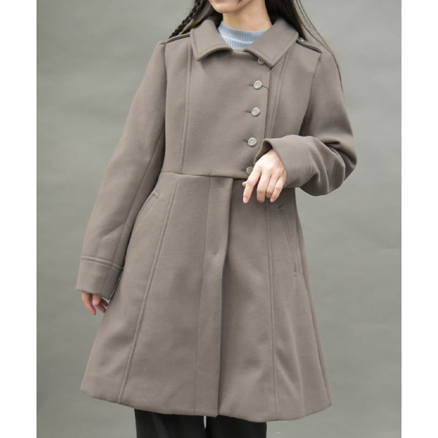 アシンメトリーデザインがミリタリーな雰囲気を醸し出すクールなコートです。