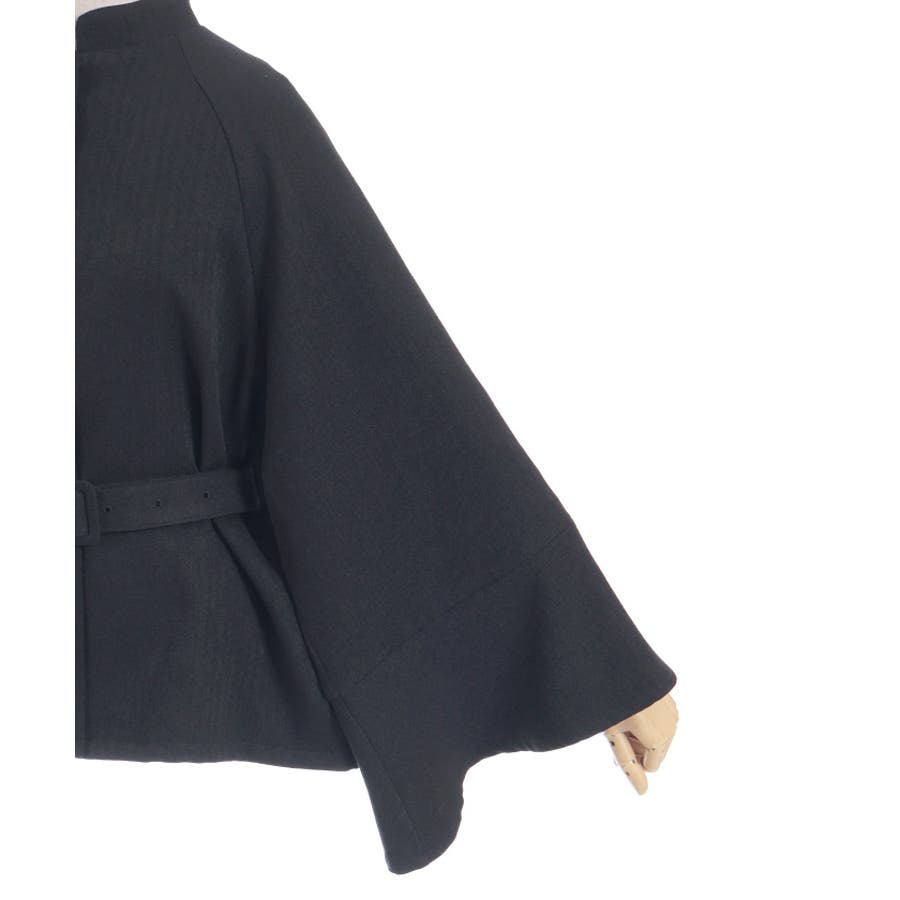 広めの袖はゆったりと上品な印象を与え、指先まで美しく魅せます。袖口にかけてフレアに広がるラグランスリーブは肩回りにゆとりもあり着やすさも◎。