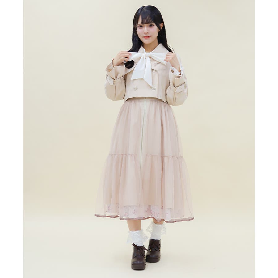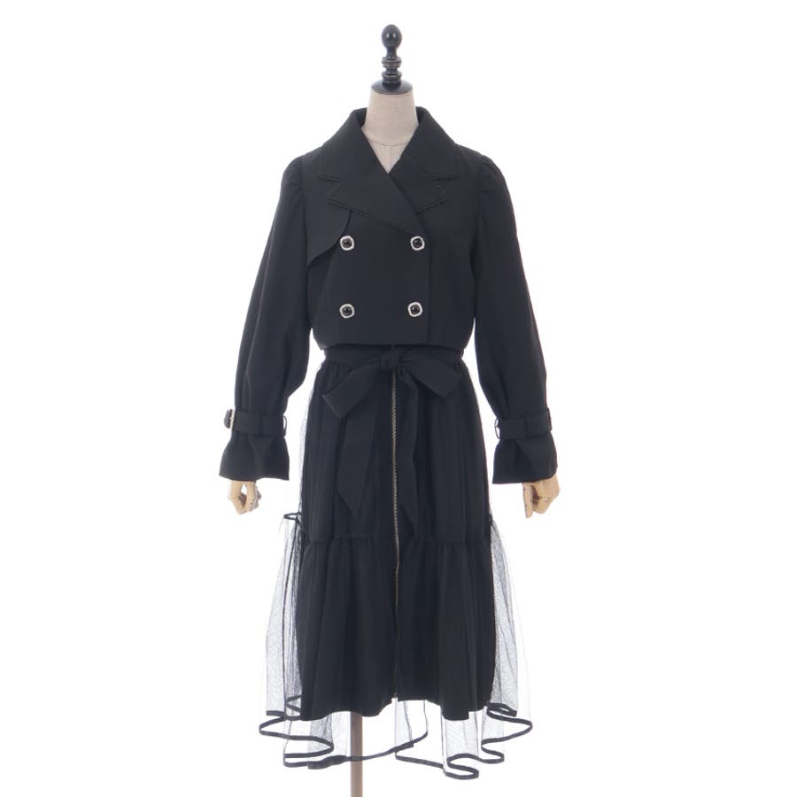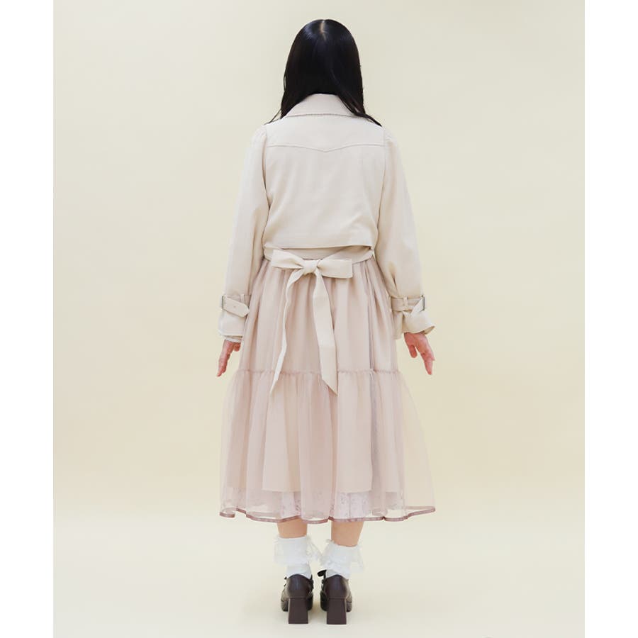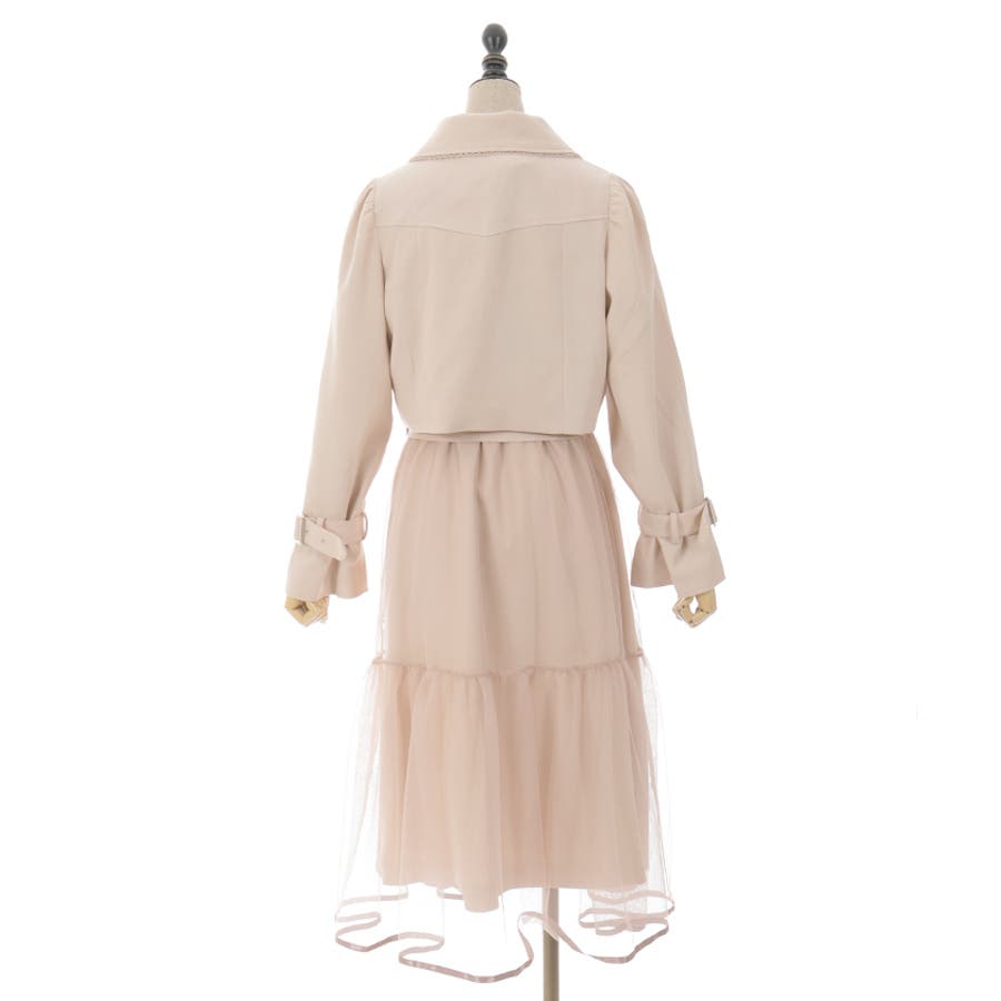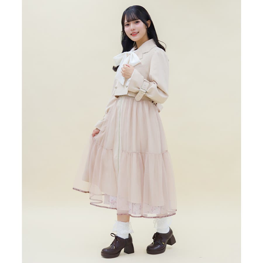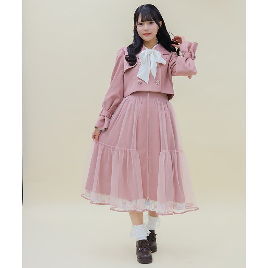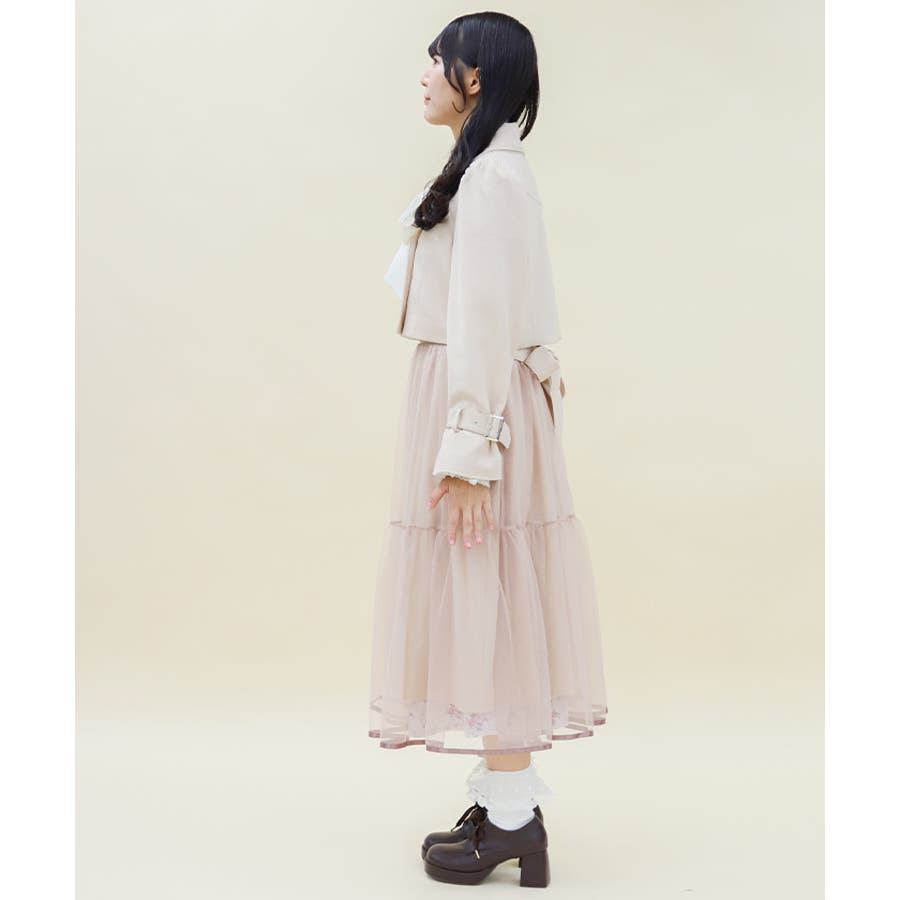 花びらの様にふんわりとしたボリュームのあるチュールをあしらった春コートです。