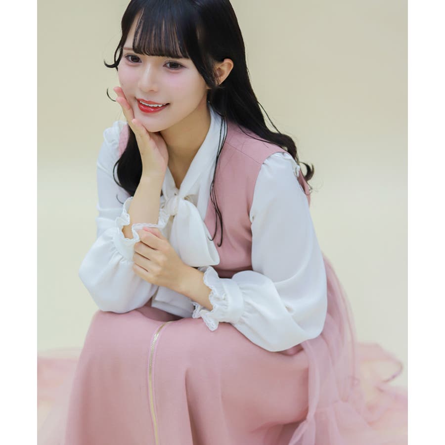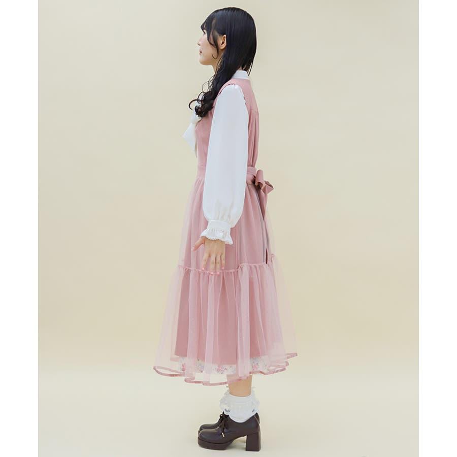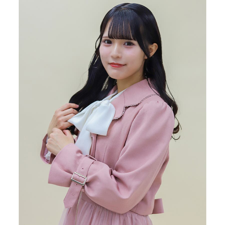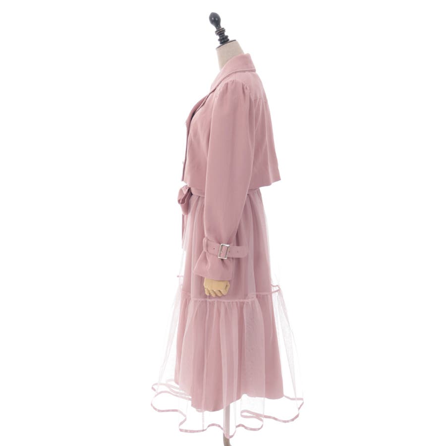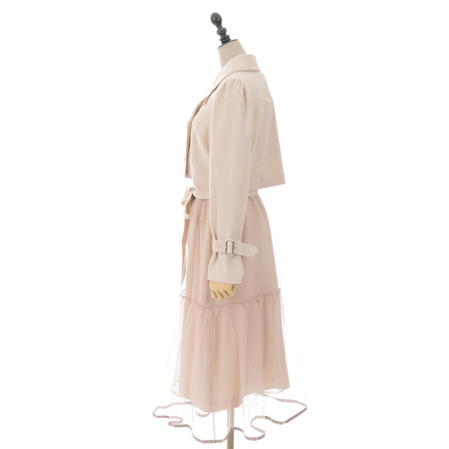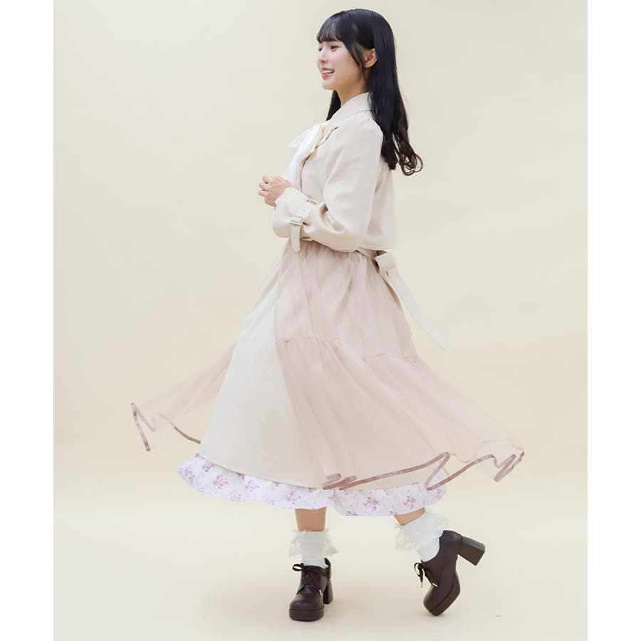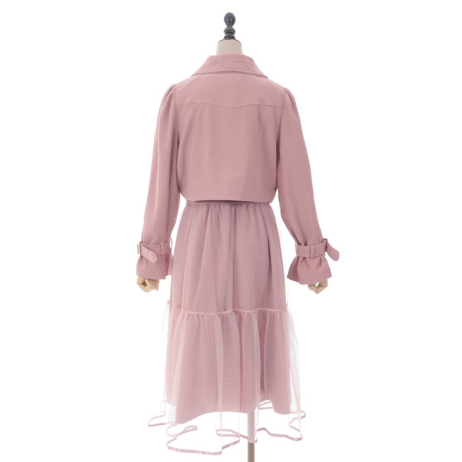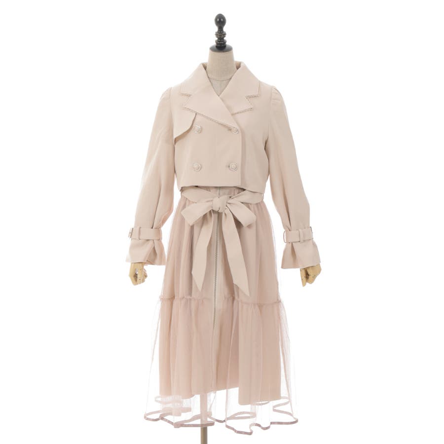 花びらの様にふんわりとしたボリュームのあるチュールをあしらった春コートです。