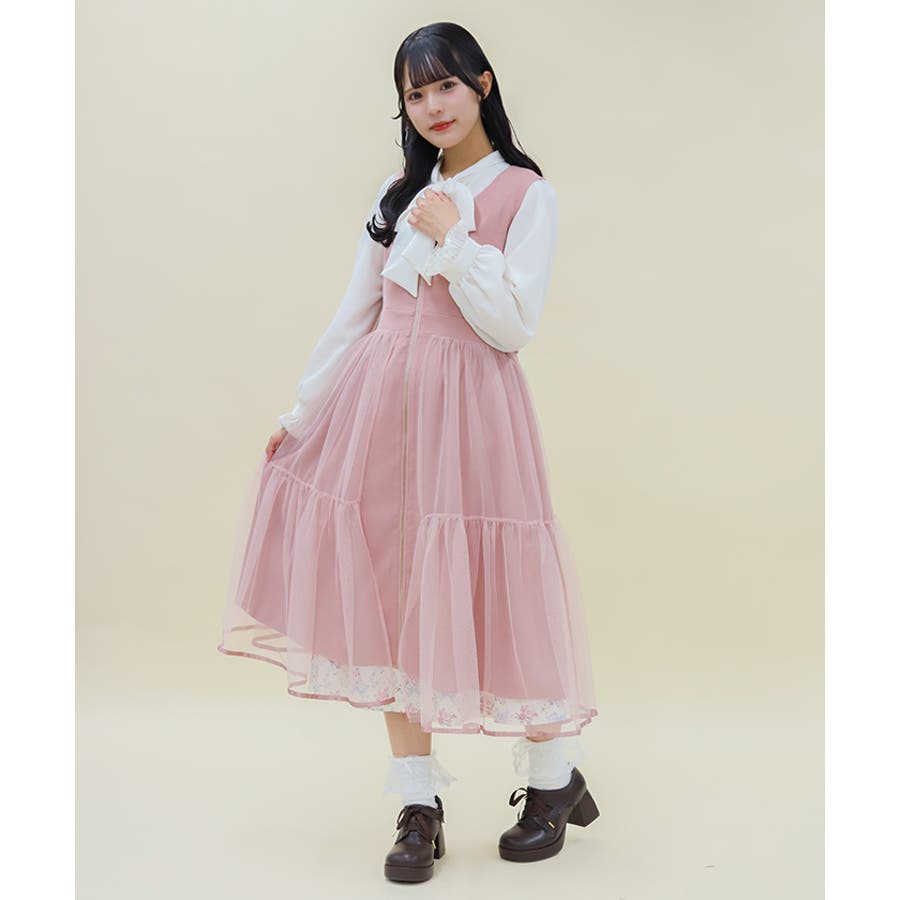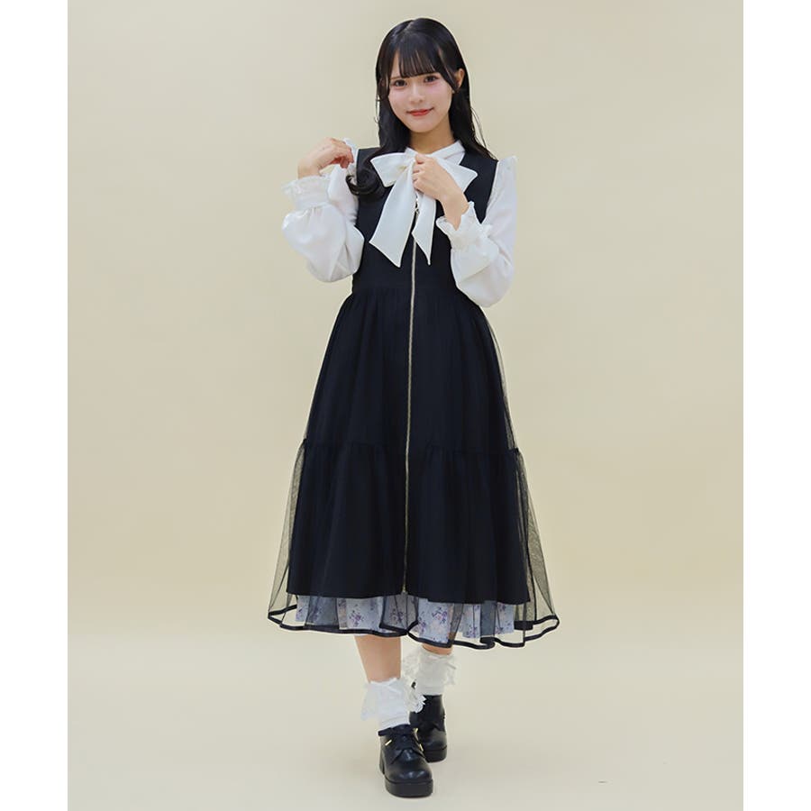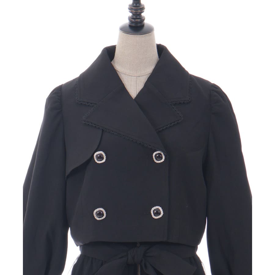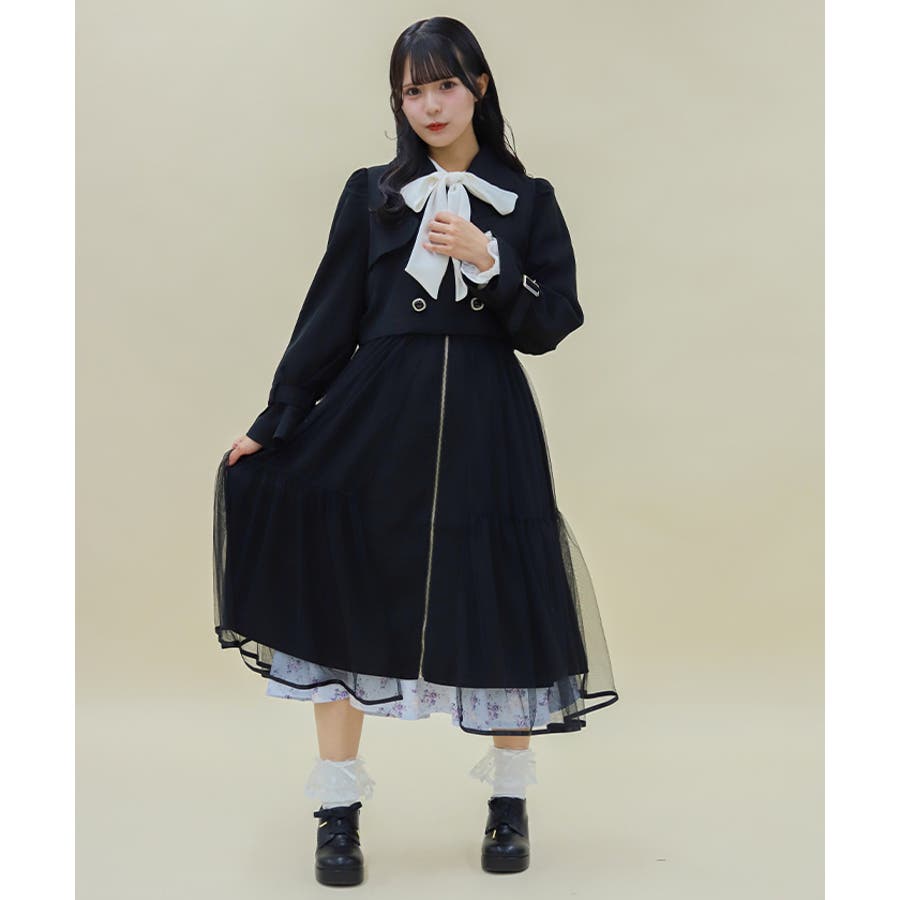 素材 | (ジャケット)表地:ポリエステル99%、ポリウレタン1%、レース:ポリエステル100%、裏地:ポリエステル100%、(ワンピース)表地:ポリエステル99%、ポリウレタン1%、別布:ポリエステル100%、テープ:ポリエステル100%、裏地:ポリエステル100% |