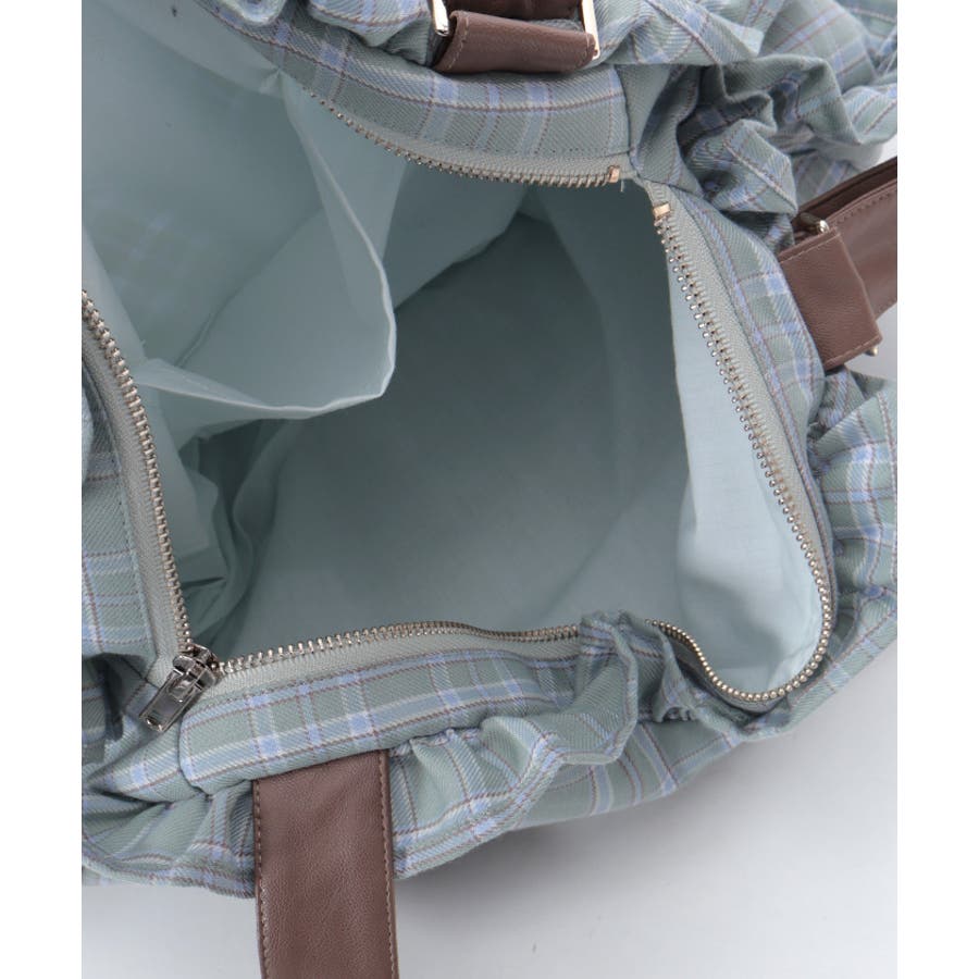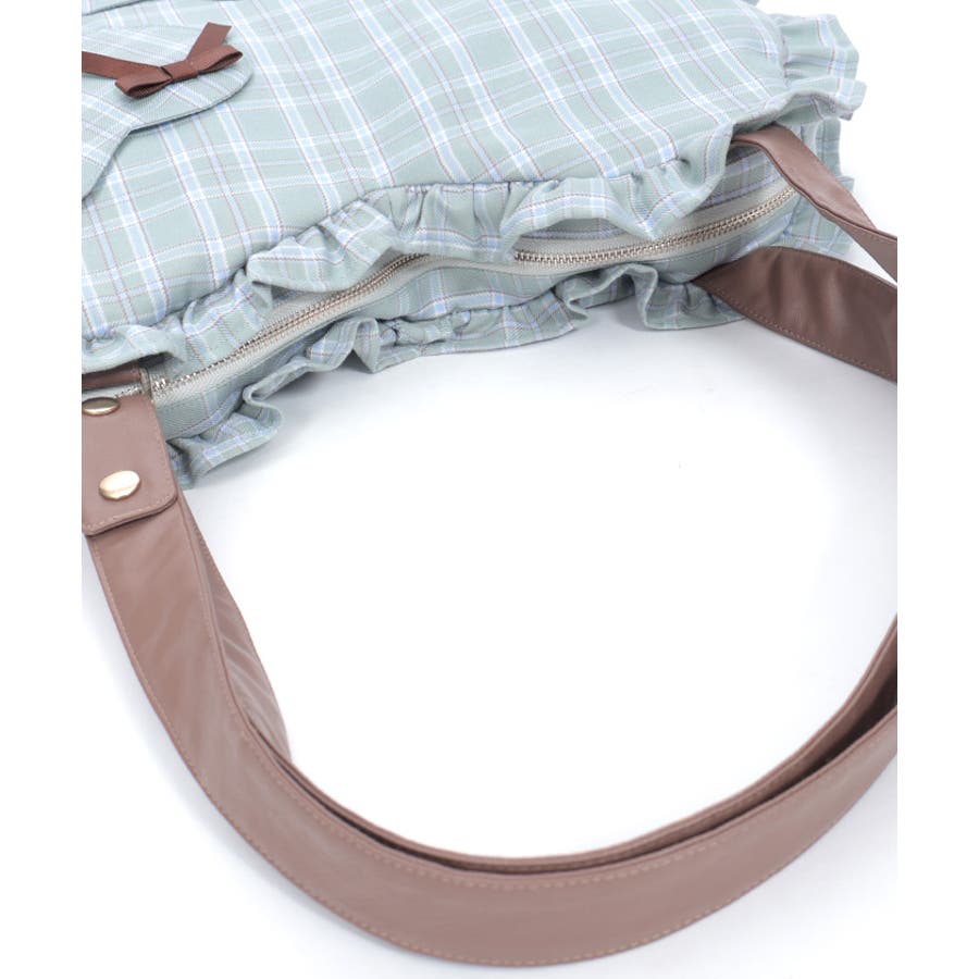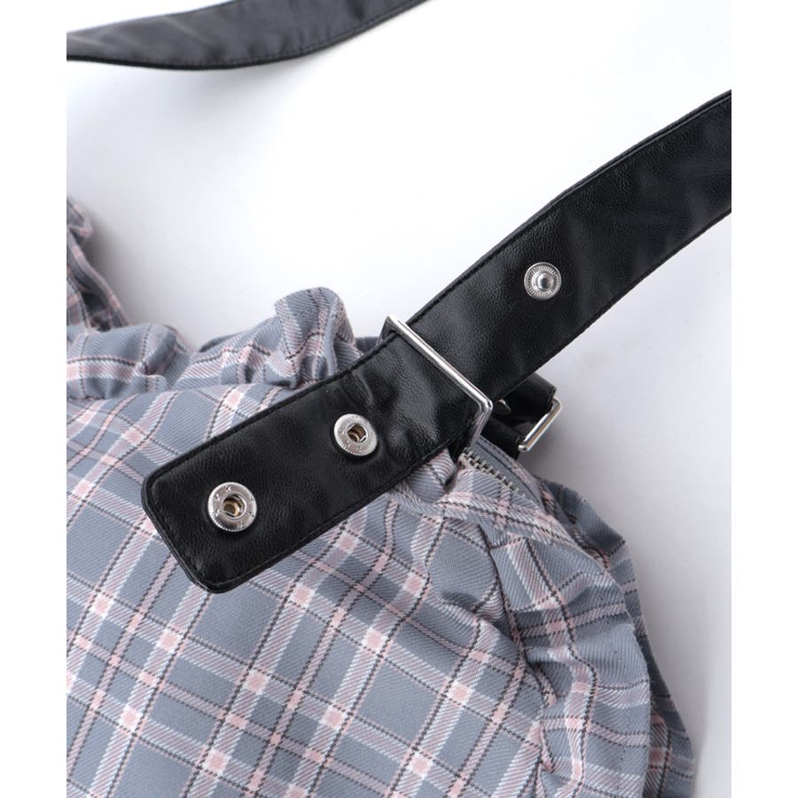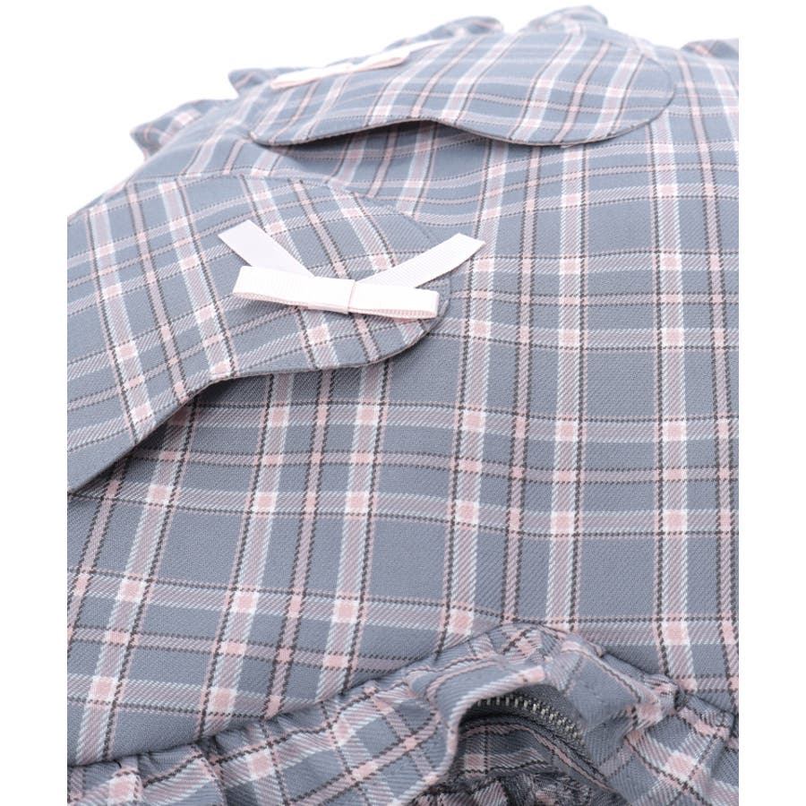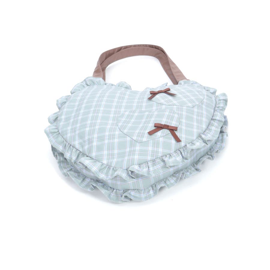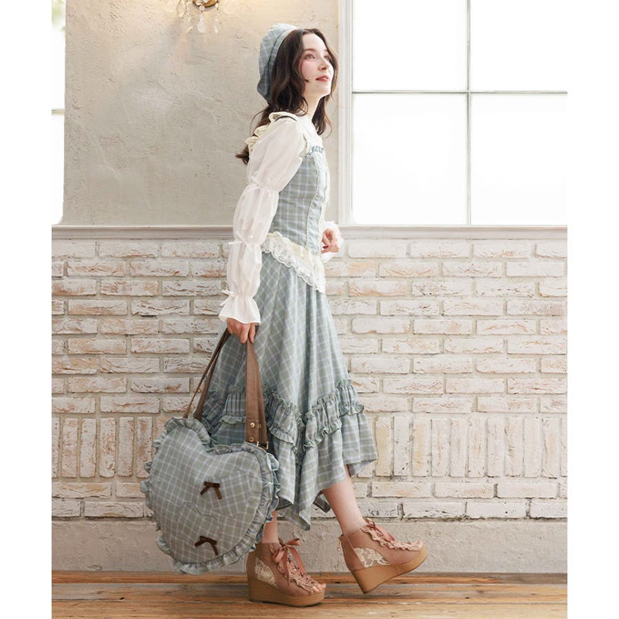立体的なハートフォルムに、ブランドオリジナルのチェック柄を落とし込んだデザイン。フロントにはハート型ポケットとリボン付きの外ポケットをあしらい、甘さのあるアクセントに仕上げています。縁のフリルディテールがより可愛らしさを引き立て、持つだけで存在感のあるスタイルに。【コーディネート】