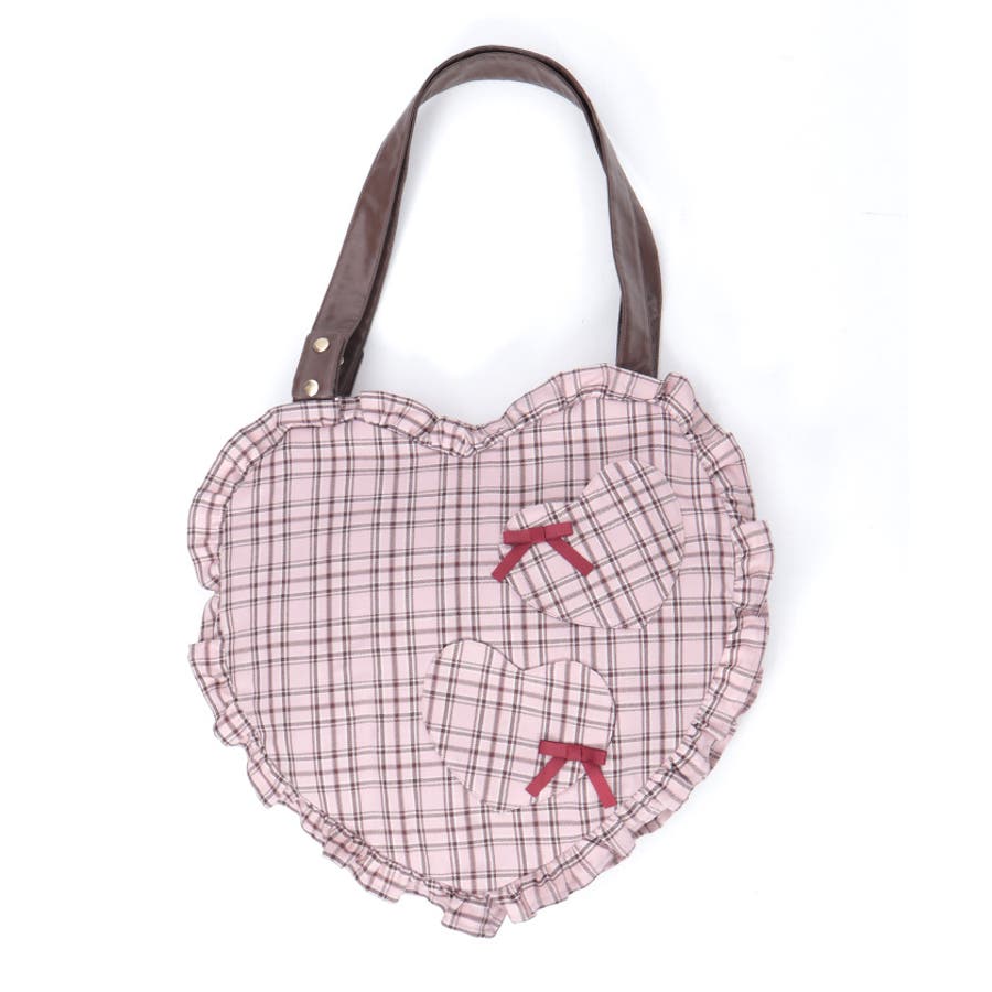 オリジナルチェックが目を惹く、ハートシルエットのバッグ。コーディネートに遊び心をプラスするアイテムです。【デザイン】