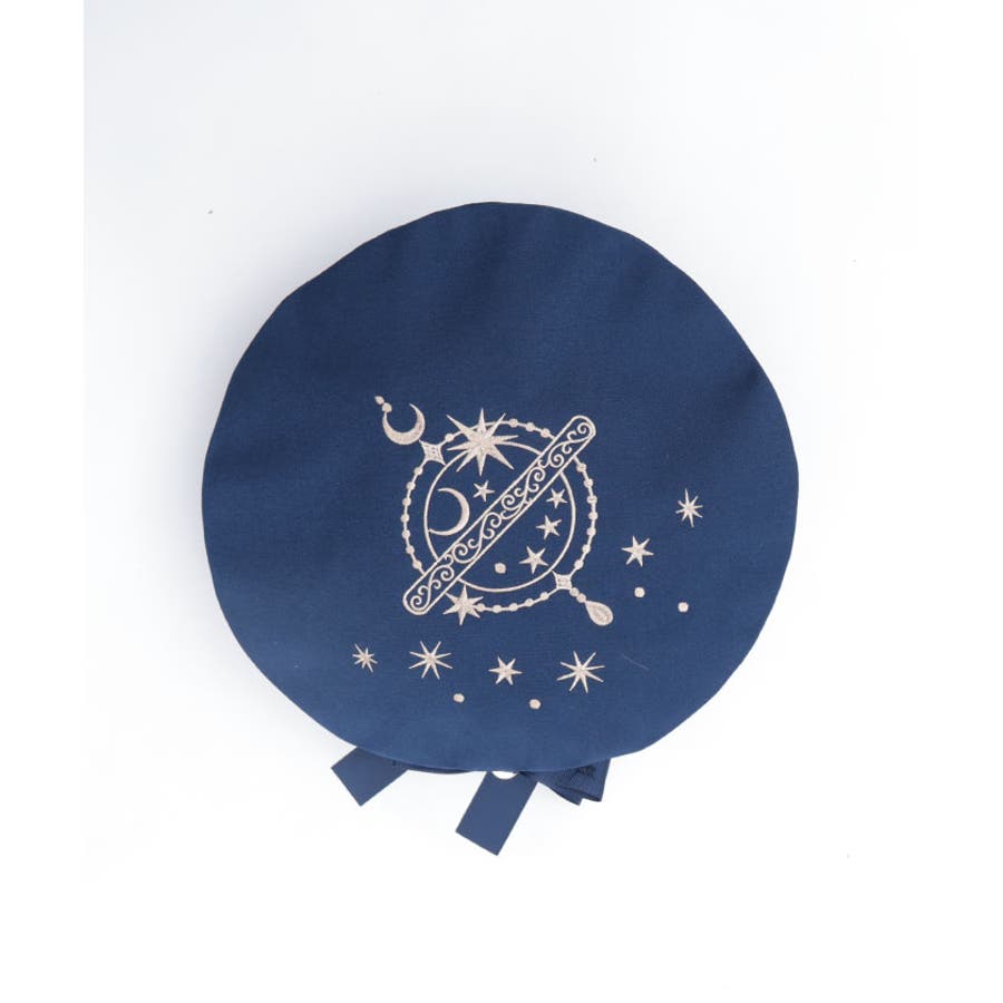 コン色には天球儀、黒色には月モチーフの刺繍をあしらったデザイン。