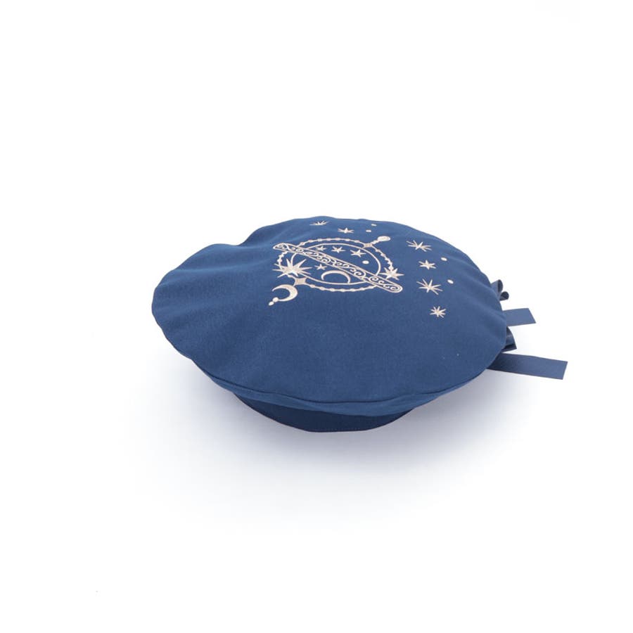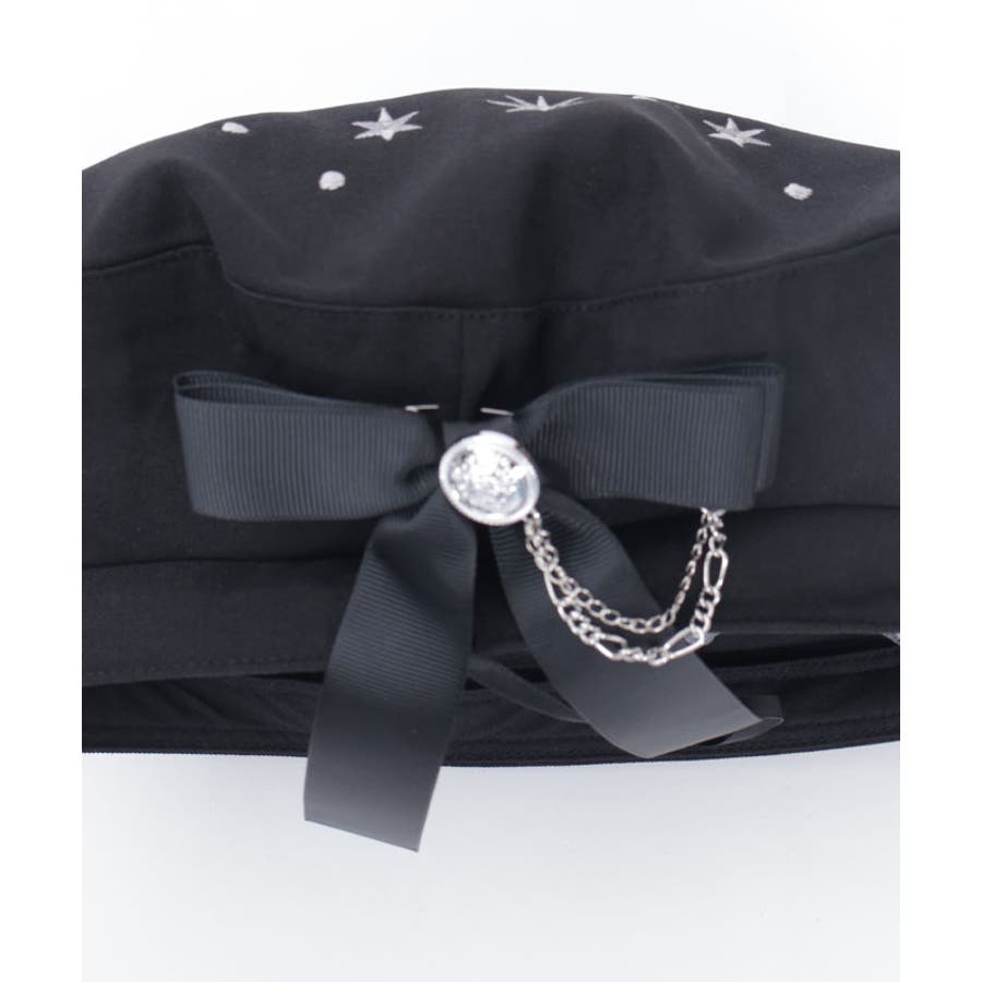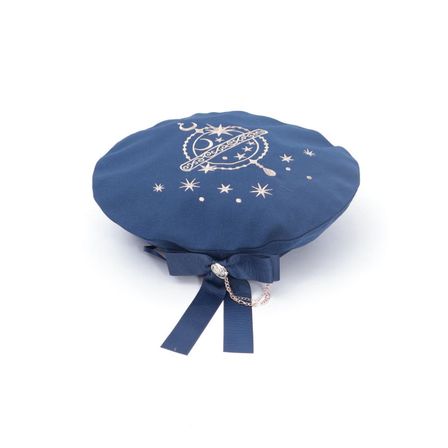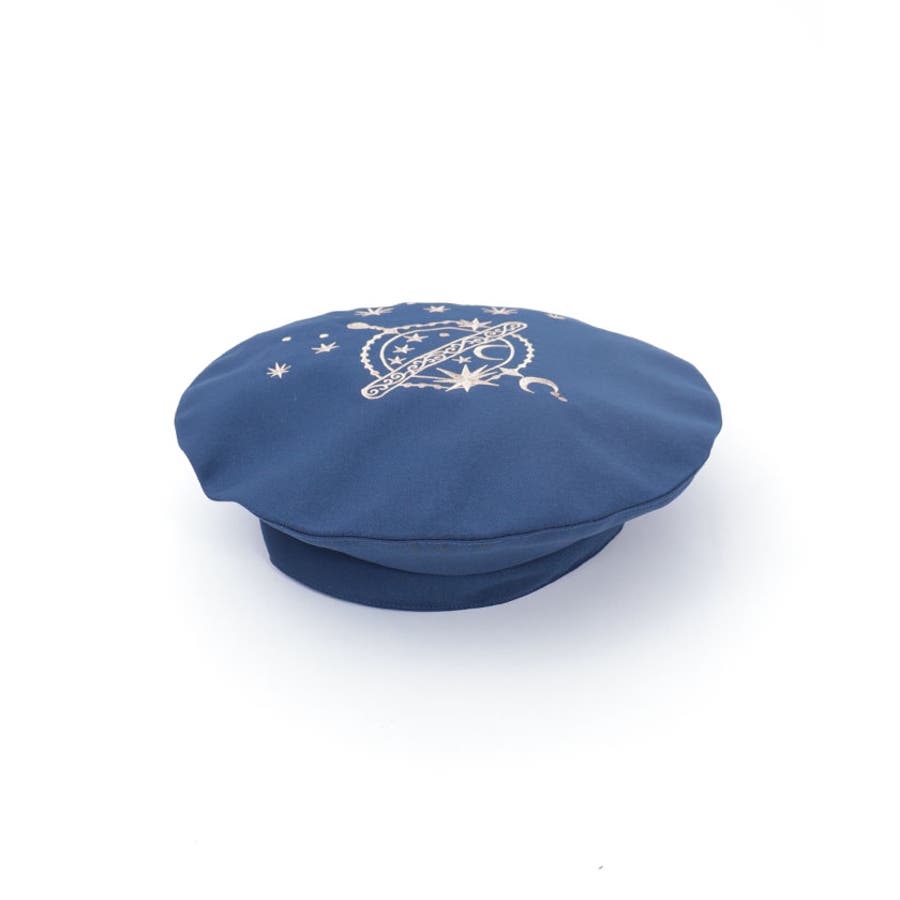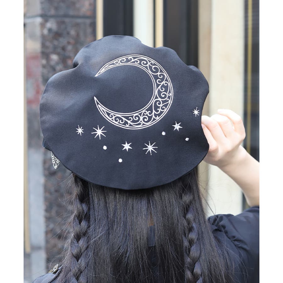 月と星をモチーフにした刺繍デザインがポイントのベレー帽です。