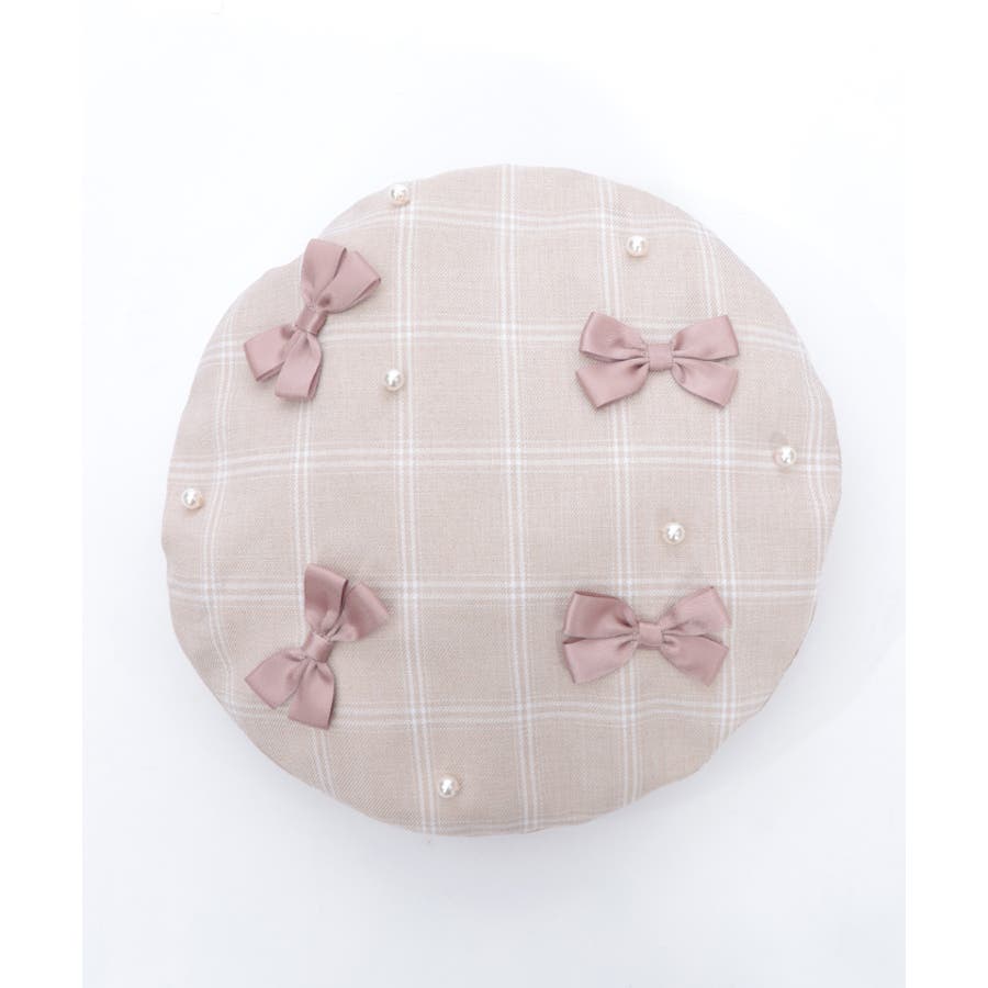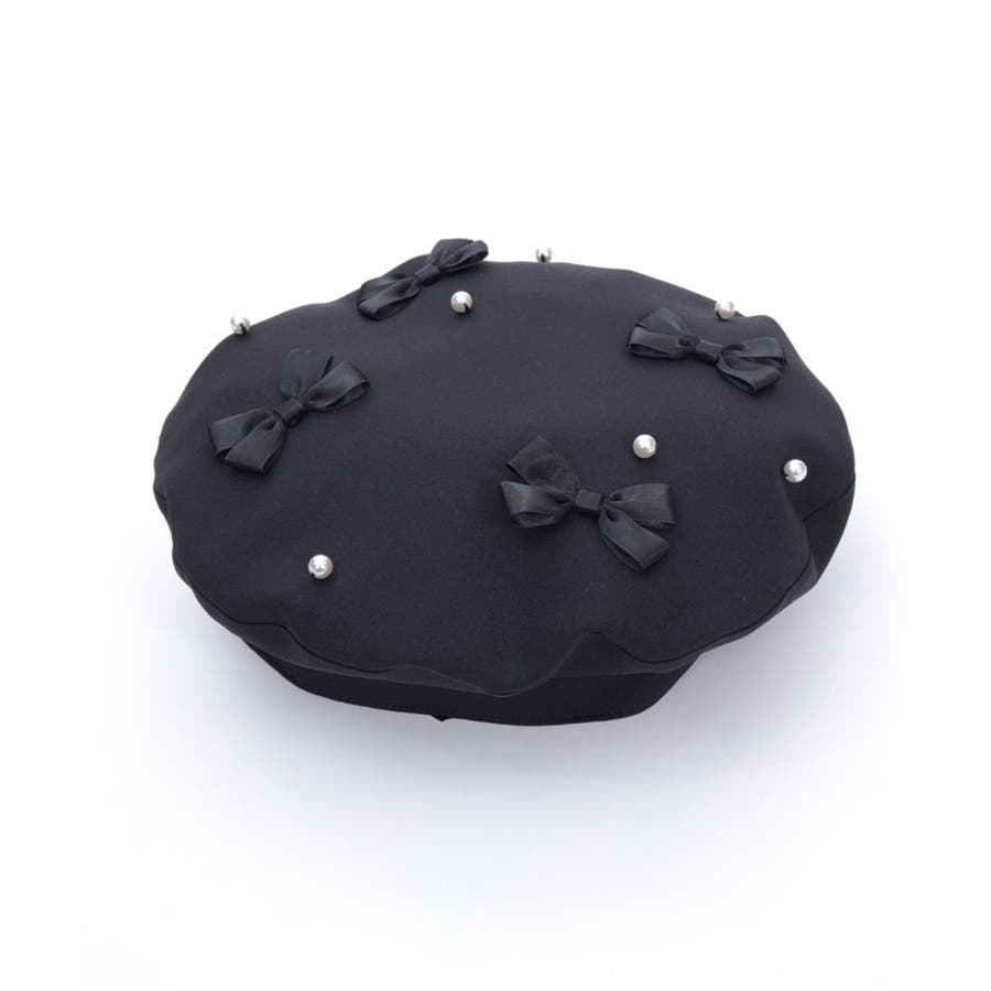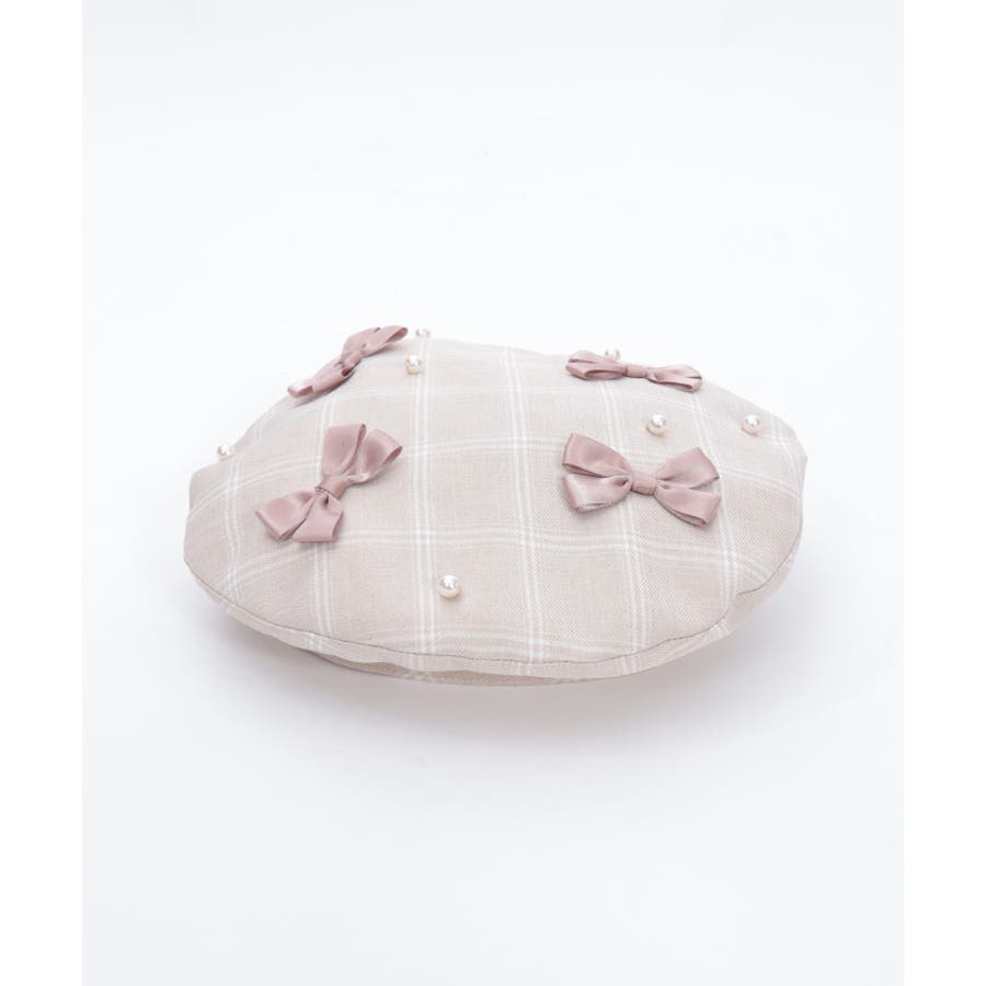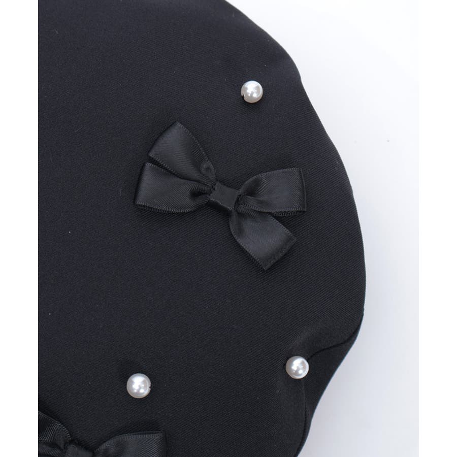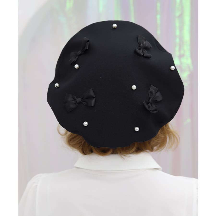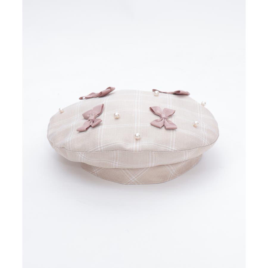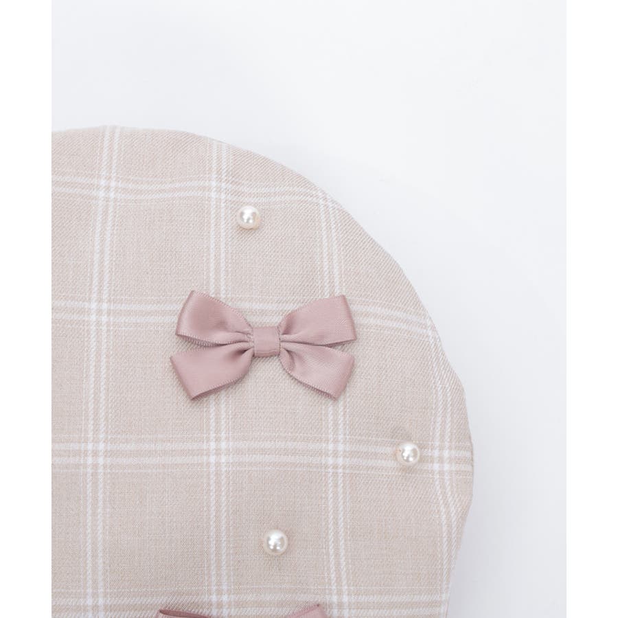 リボン×パールの装飾がガーリーなベレー帽