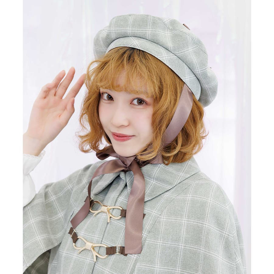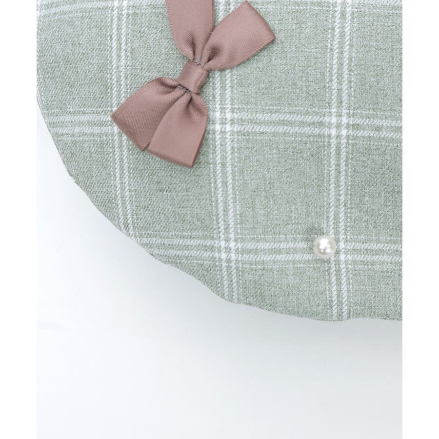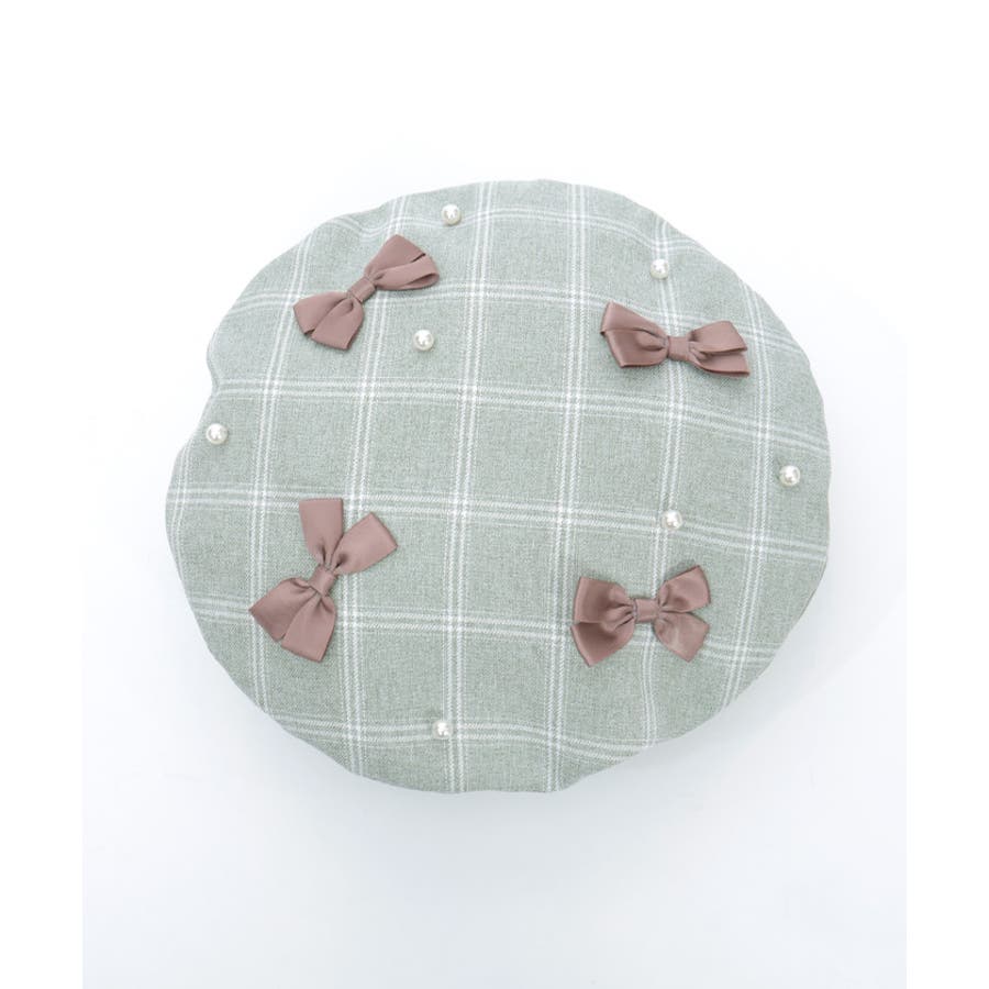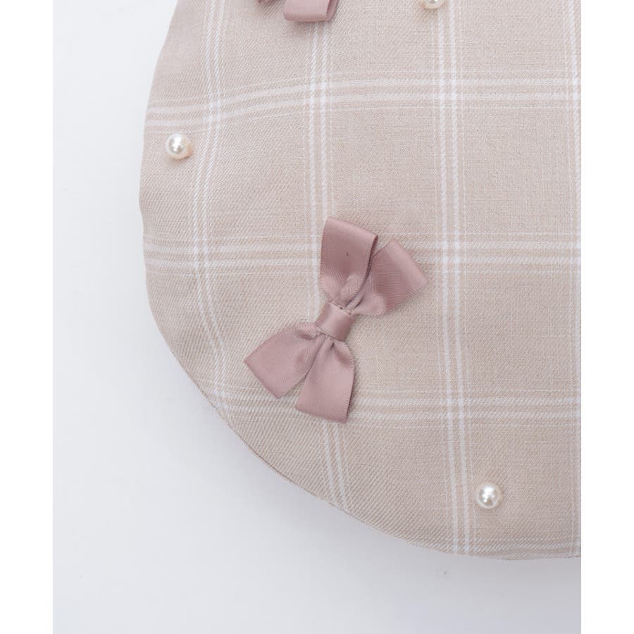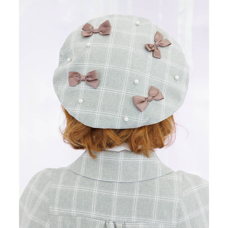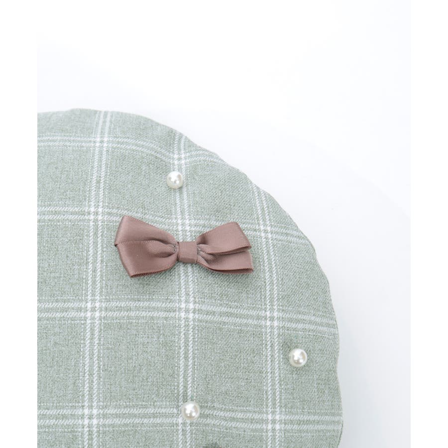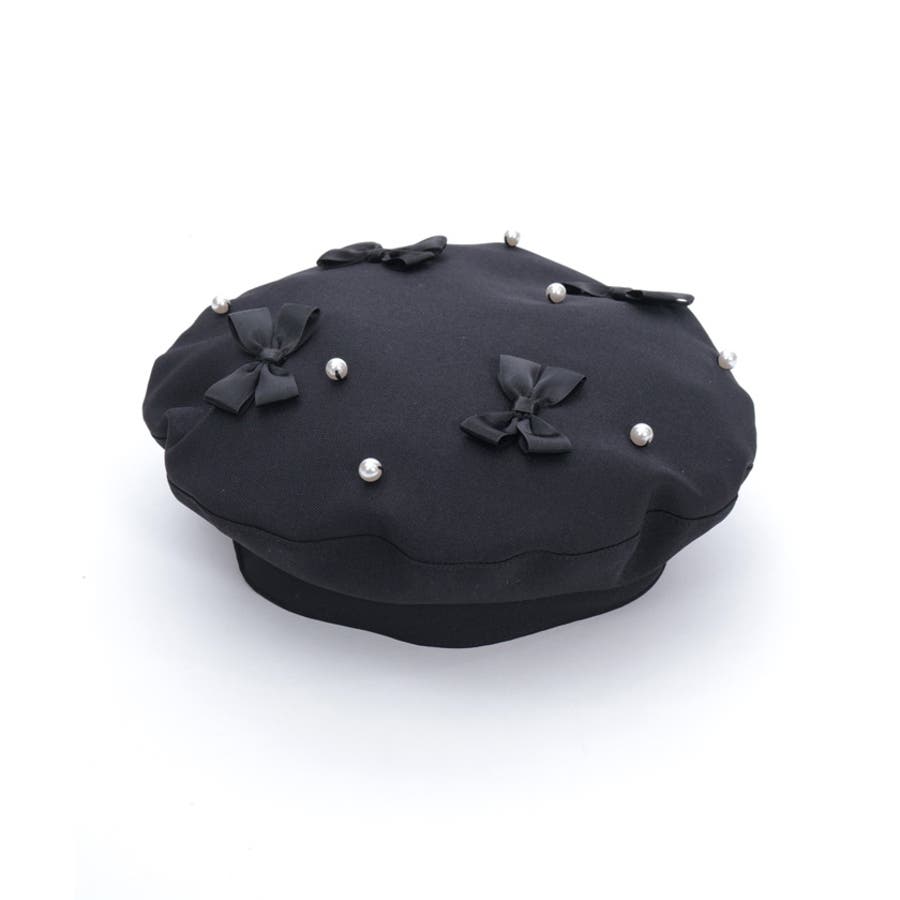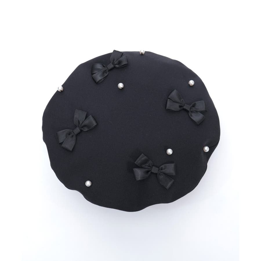 リボン×パールの装飾がガーリーなベレー帽