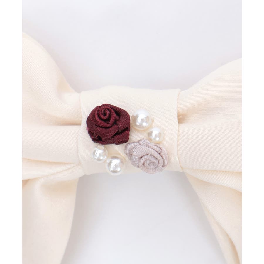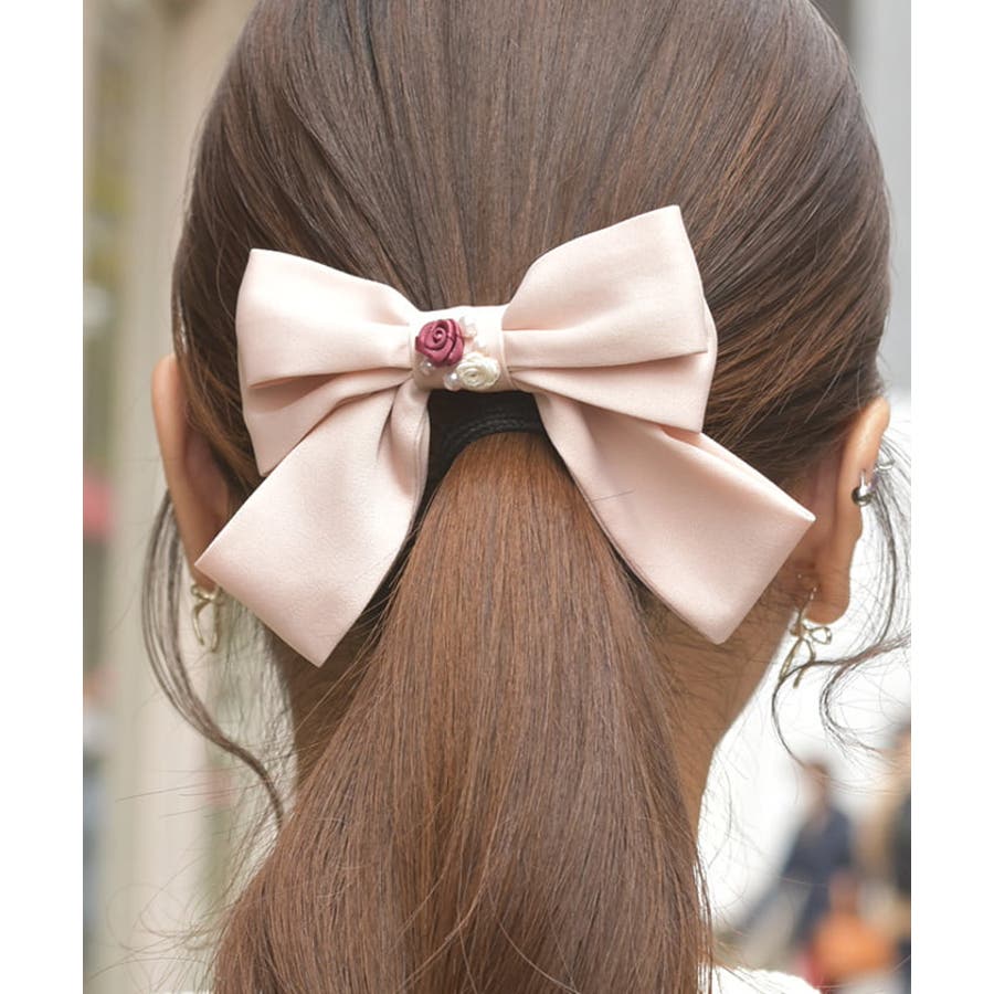 ヘアスタイルに華やかさをプラスしてくれる、巻き薔薇をあしらったリボンクリップです。