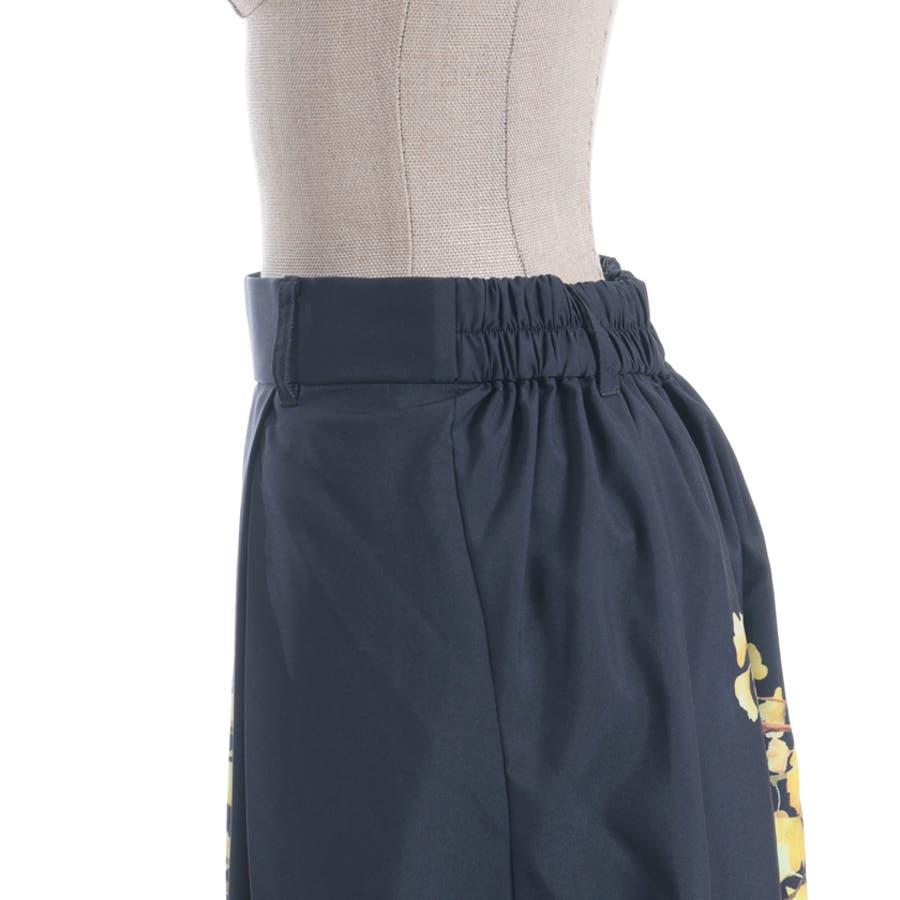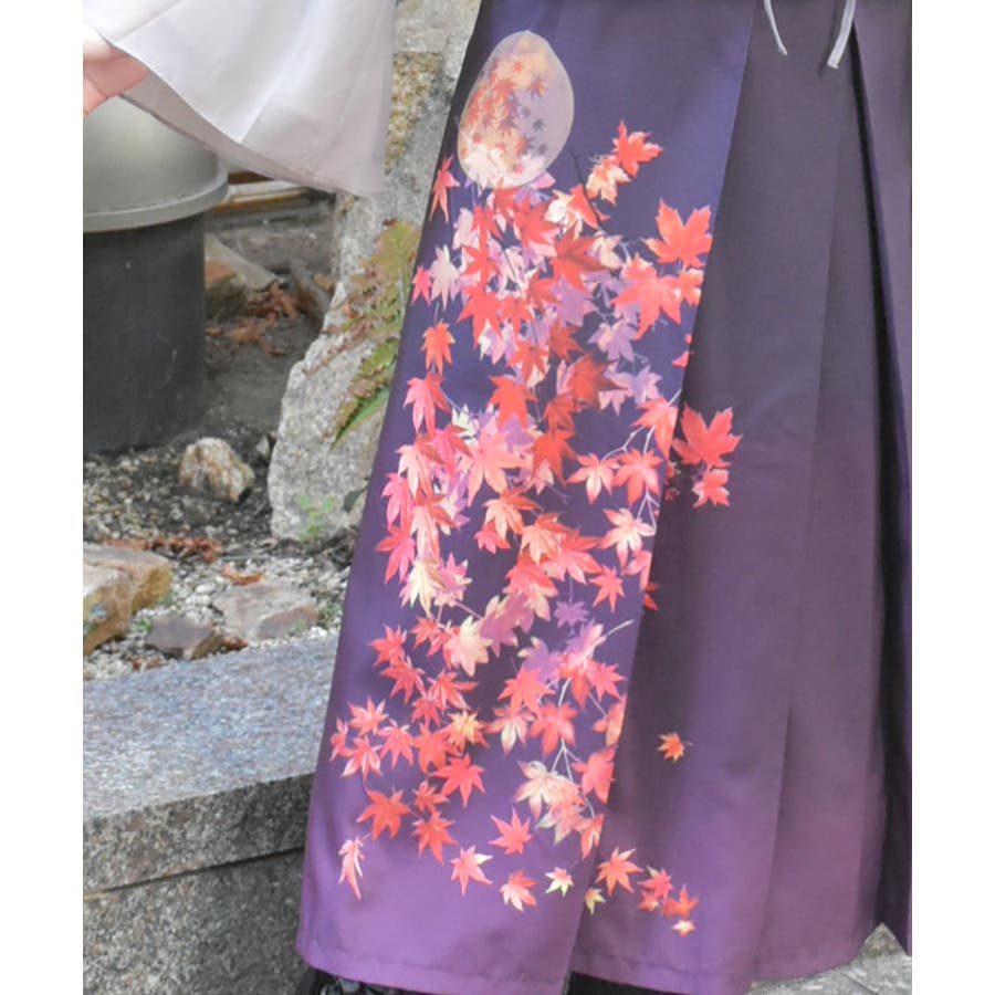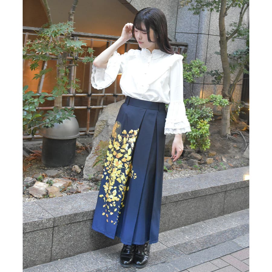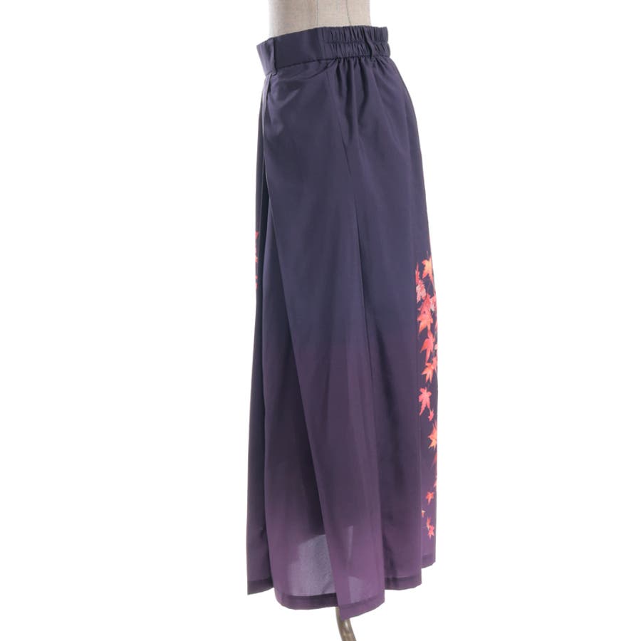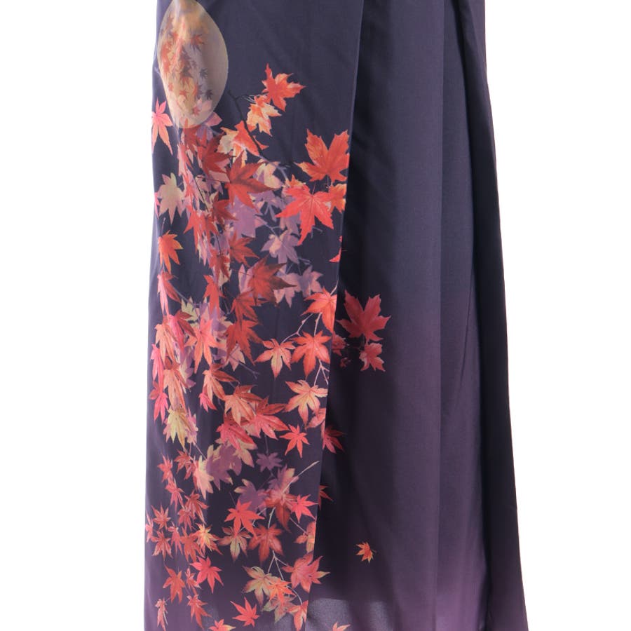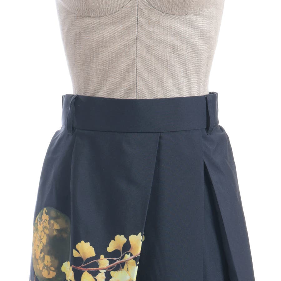 日本の秋を感じさせる、紅葉【楓】【銀杏】をモチーフにしたアートプリントスカート。静謐な夜空に浮かぶ月と舞い散る葉が印象的で、まるで一枚の日本画のような美しさを楽しめます。