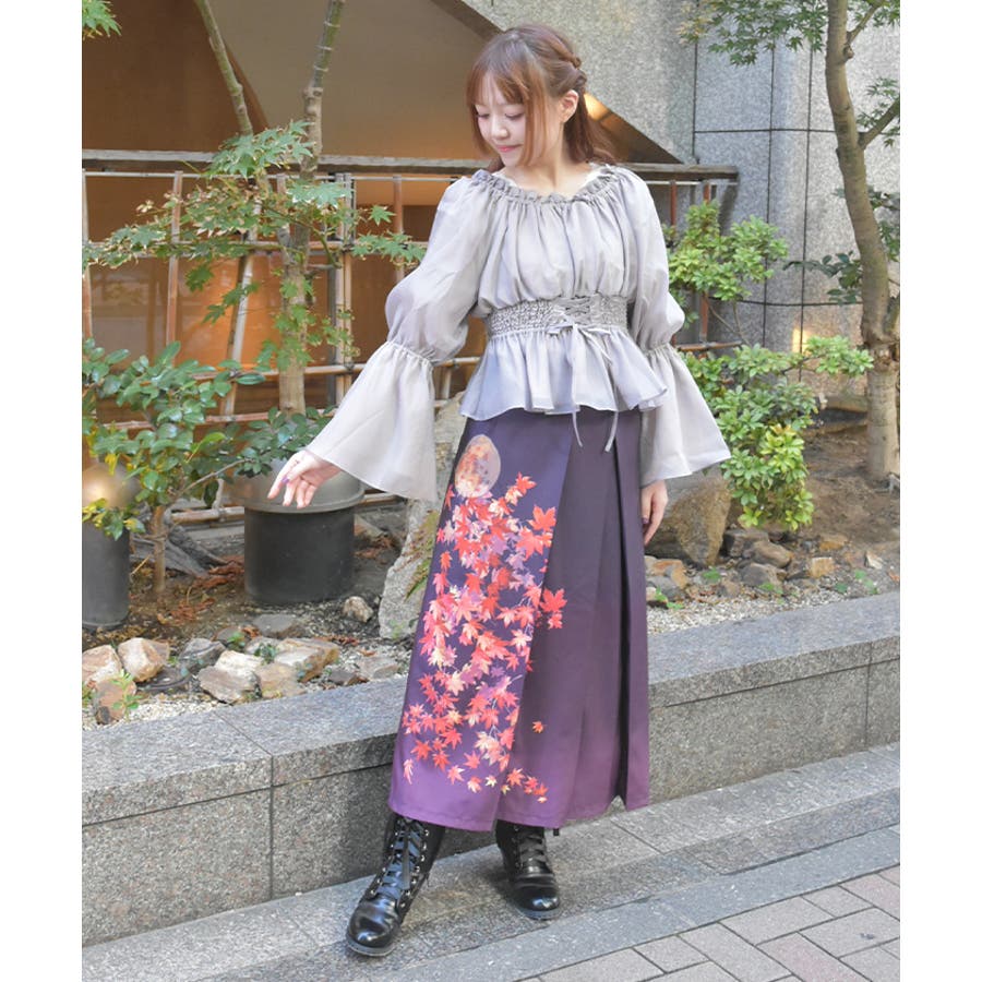 ブラウスやシンプルなトップスを合わせれば、主役級の存在感を放つコーデに。レースアップブーツや厚底シューズと合わせることで、和洋折衷の個性的なスタイルを完成させます。axes femmeの華やかなバックルがついたベルトを合わせても◎