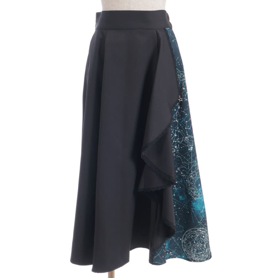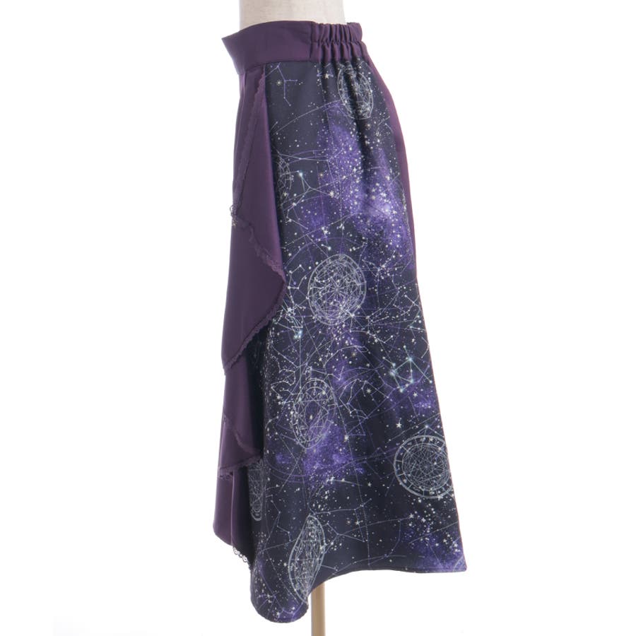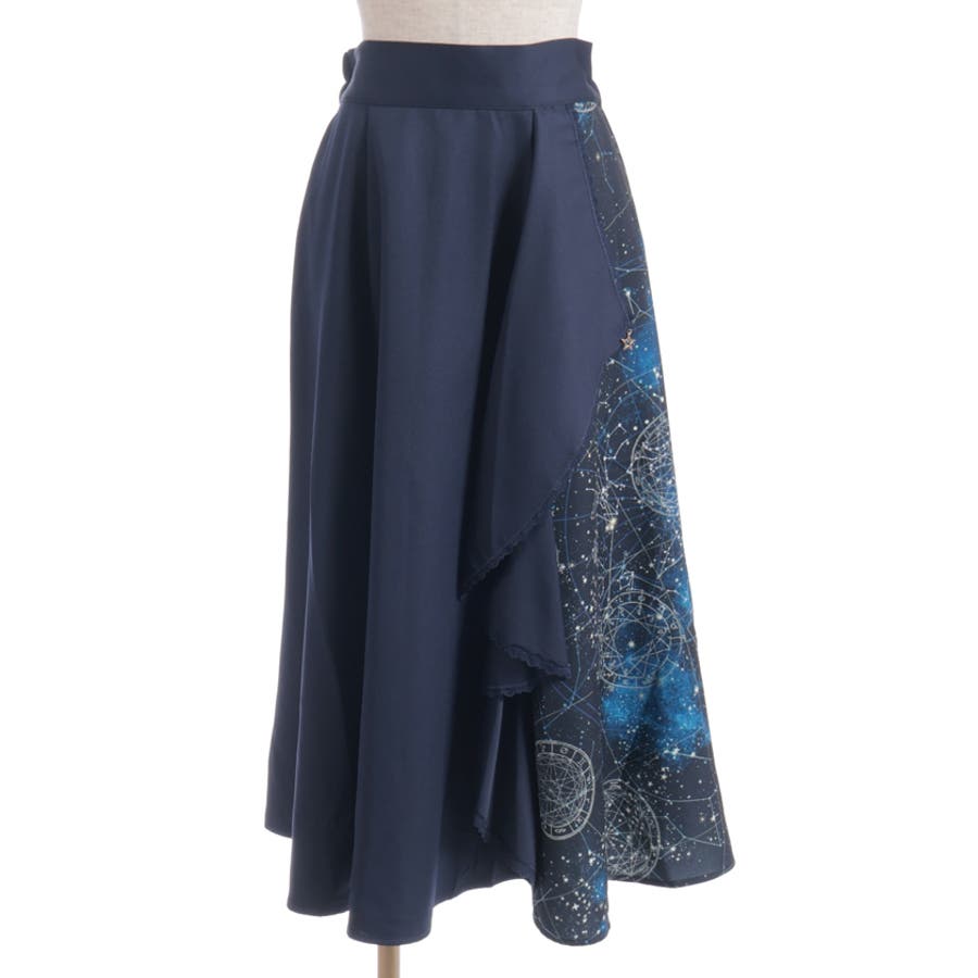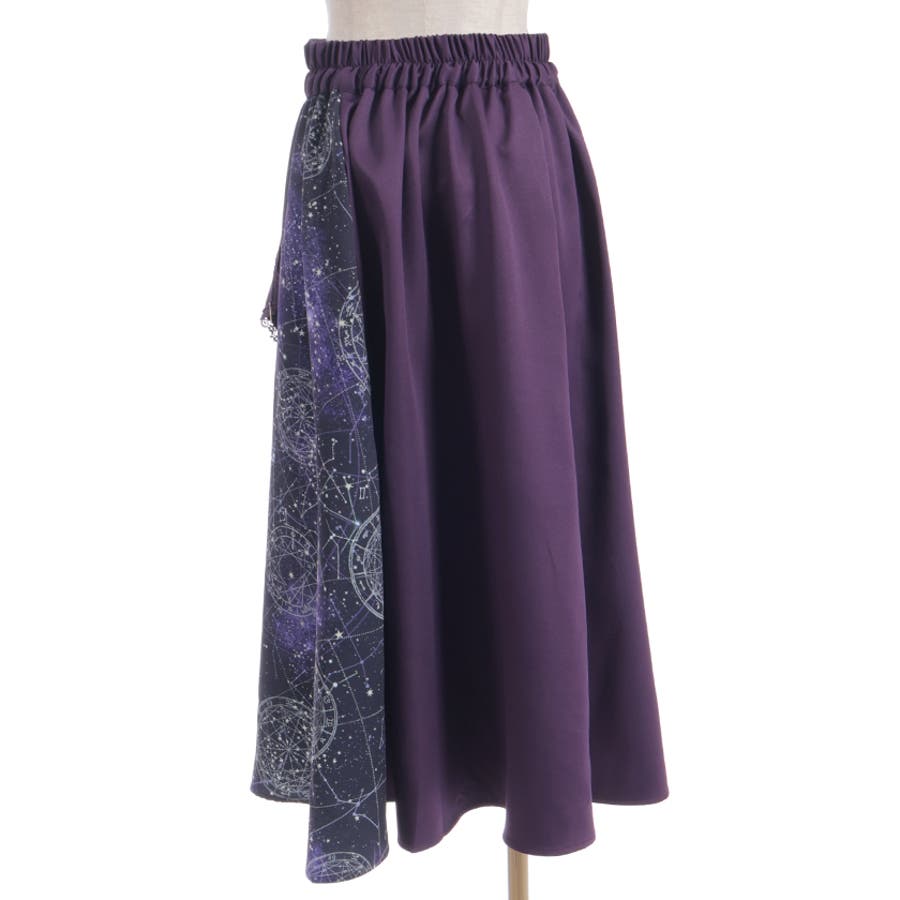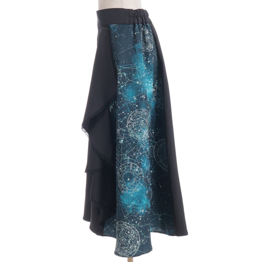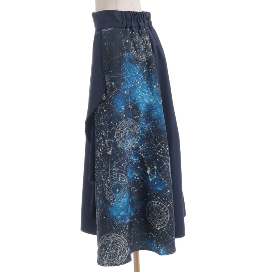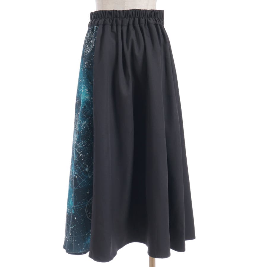 大きな天文図をベースにした華やかな天文柄を切り替えたスカートです。