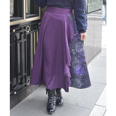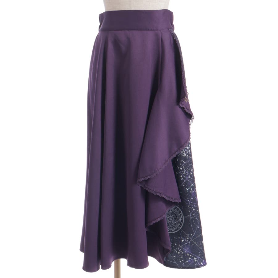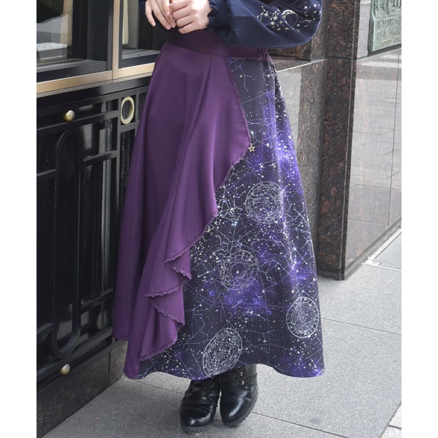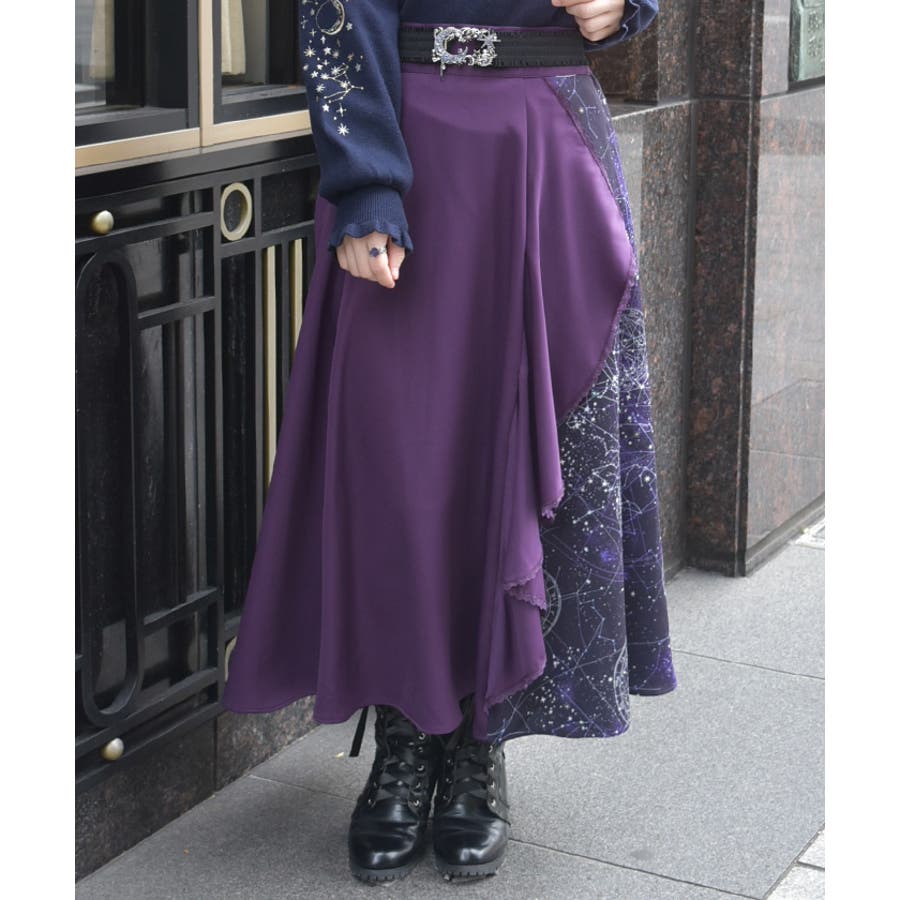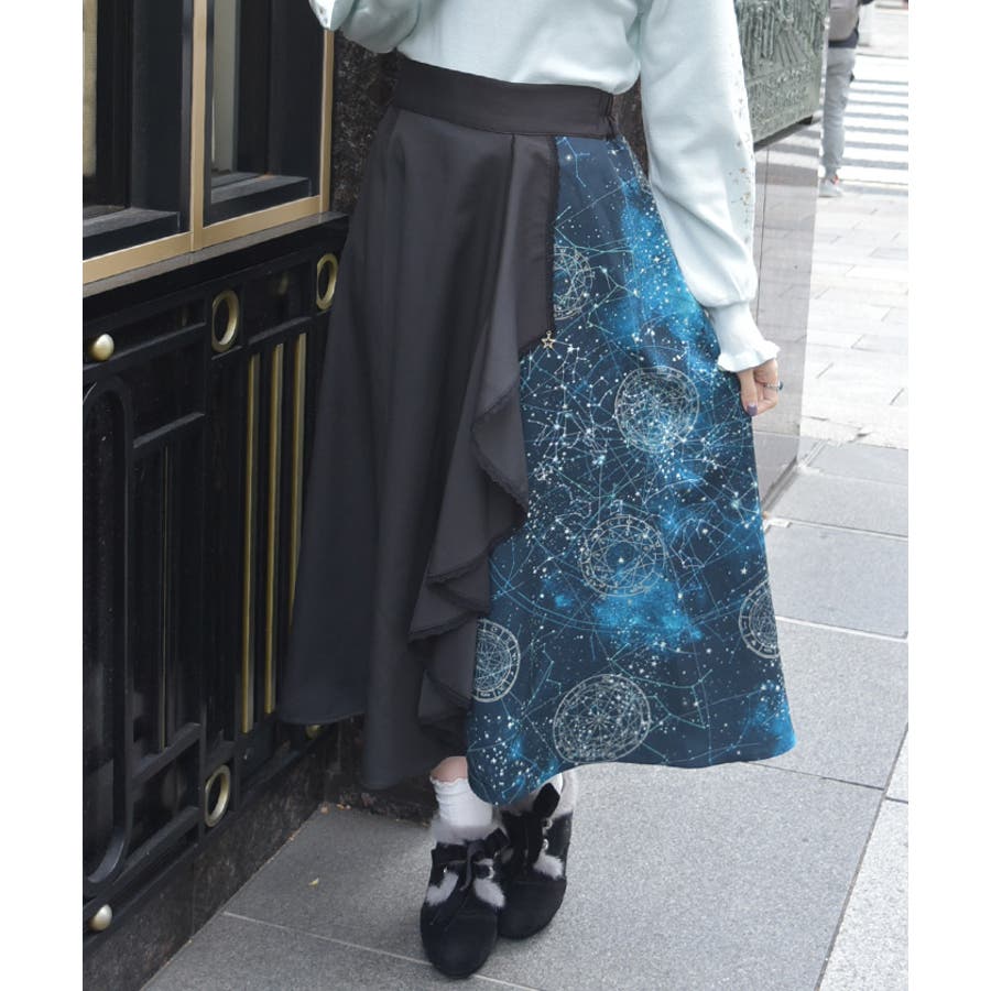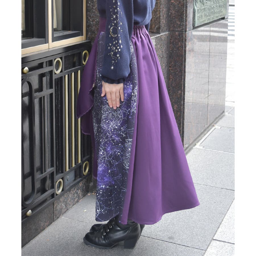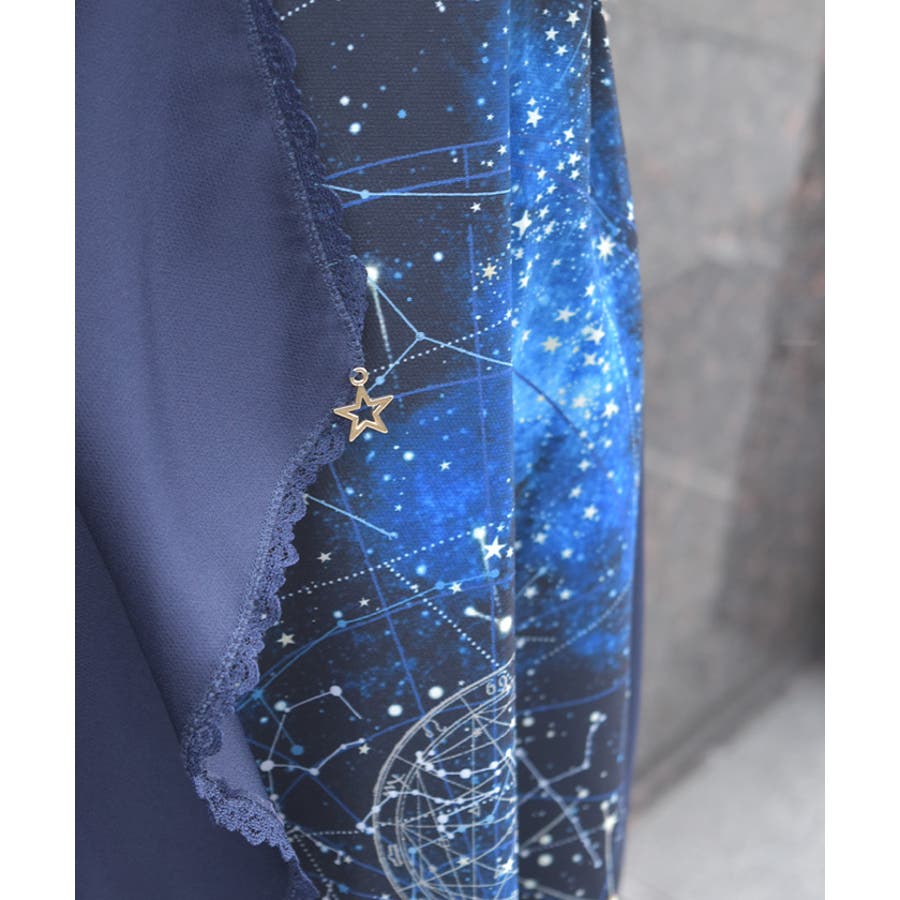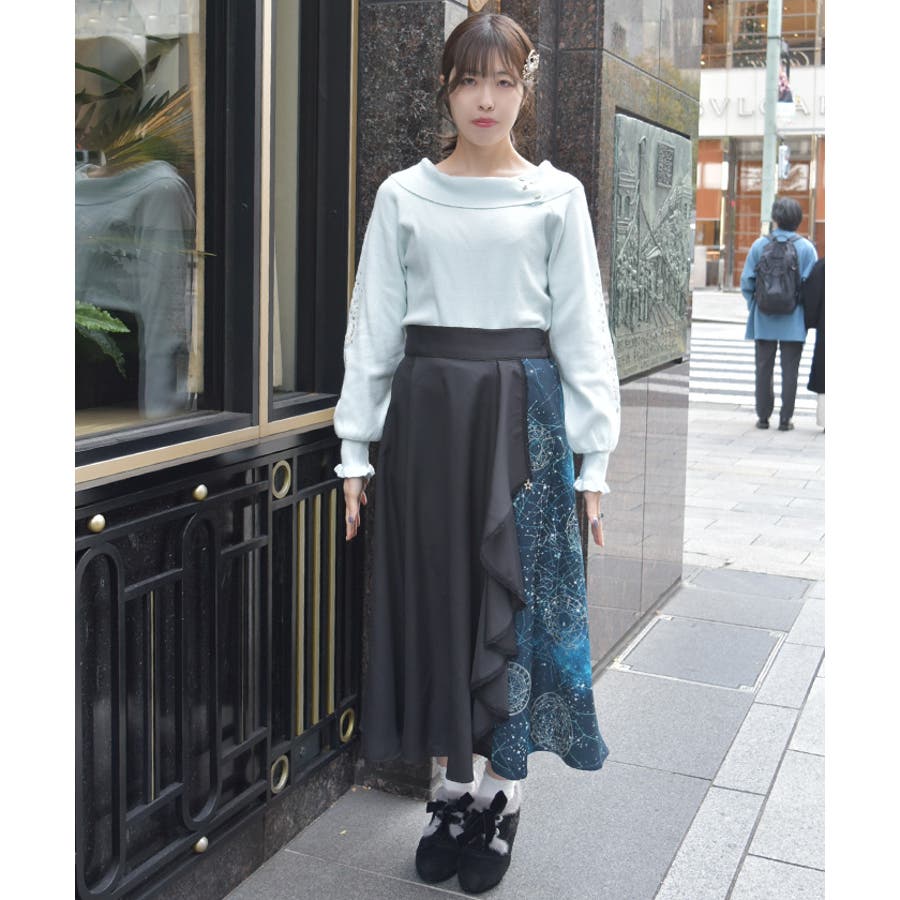 大きな天文図をベースにした華やかな天文柄を切り替えたスカートです。