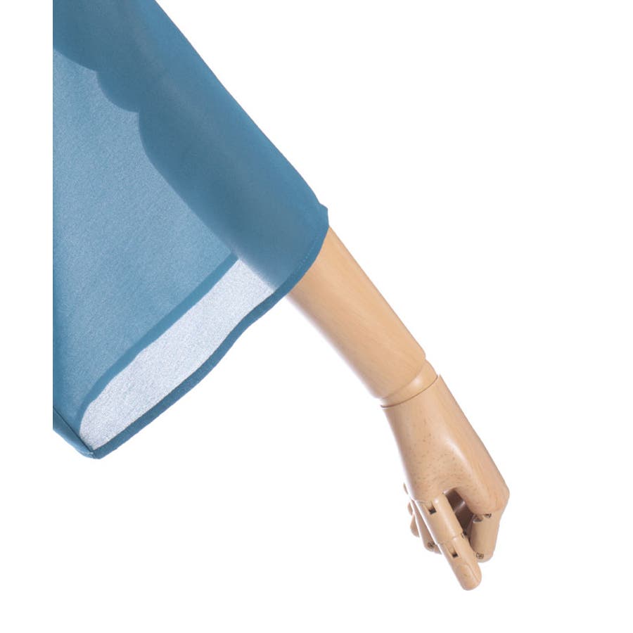 バックネックはタックデザインですっきり、裾に向かってAラインに広がるシルエット。