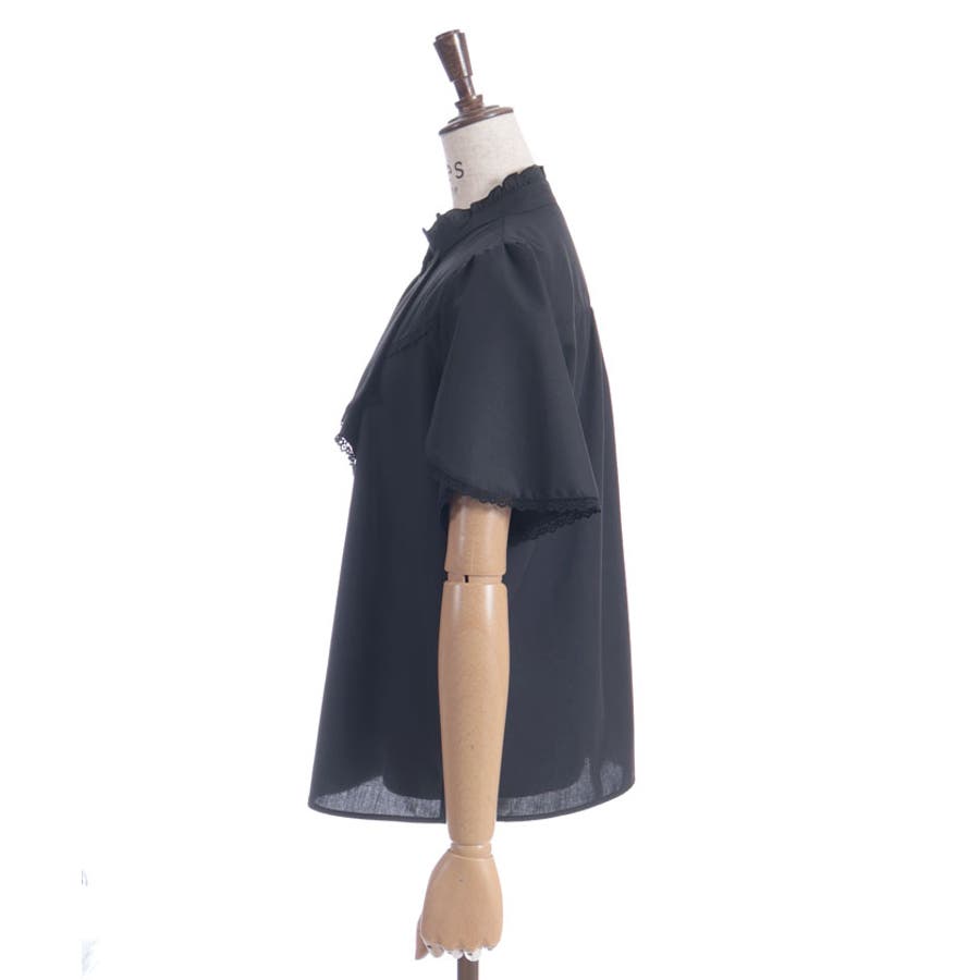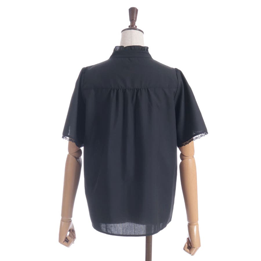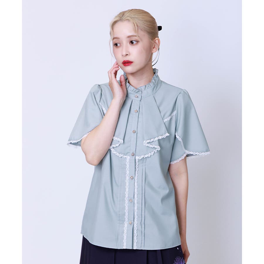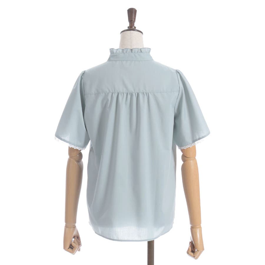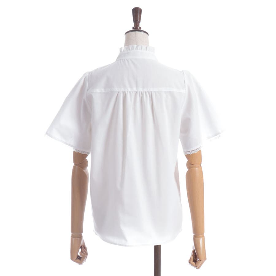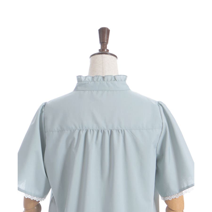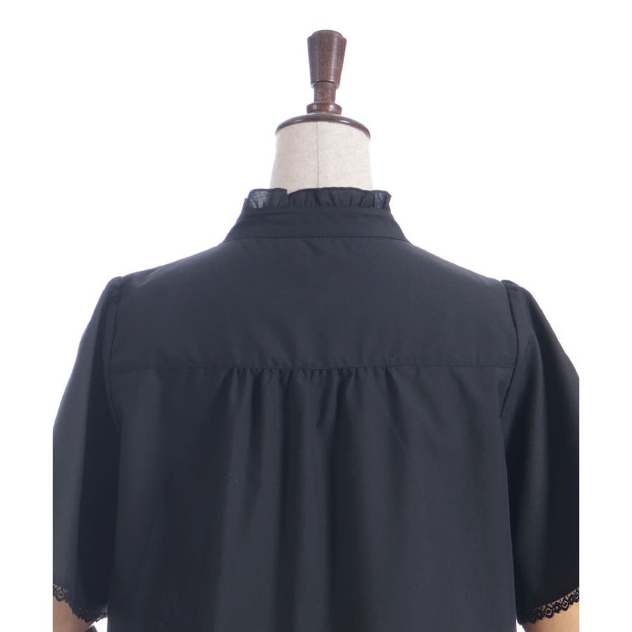 袖口や前立てにあしらった繊細なレースが上品さをプラスし、きちんと感のあるディテールが目を惹く1枚です。