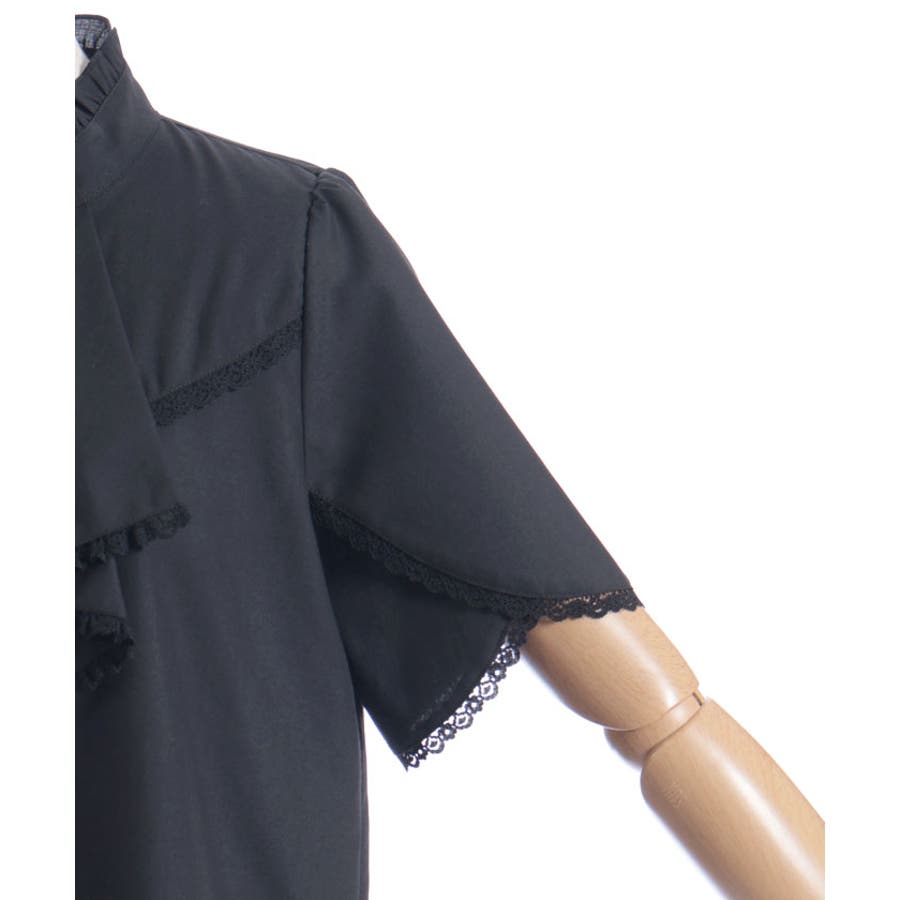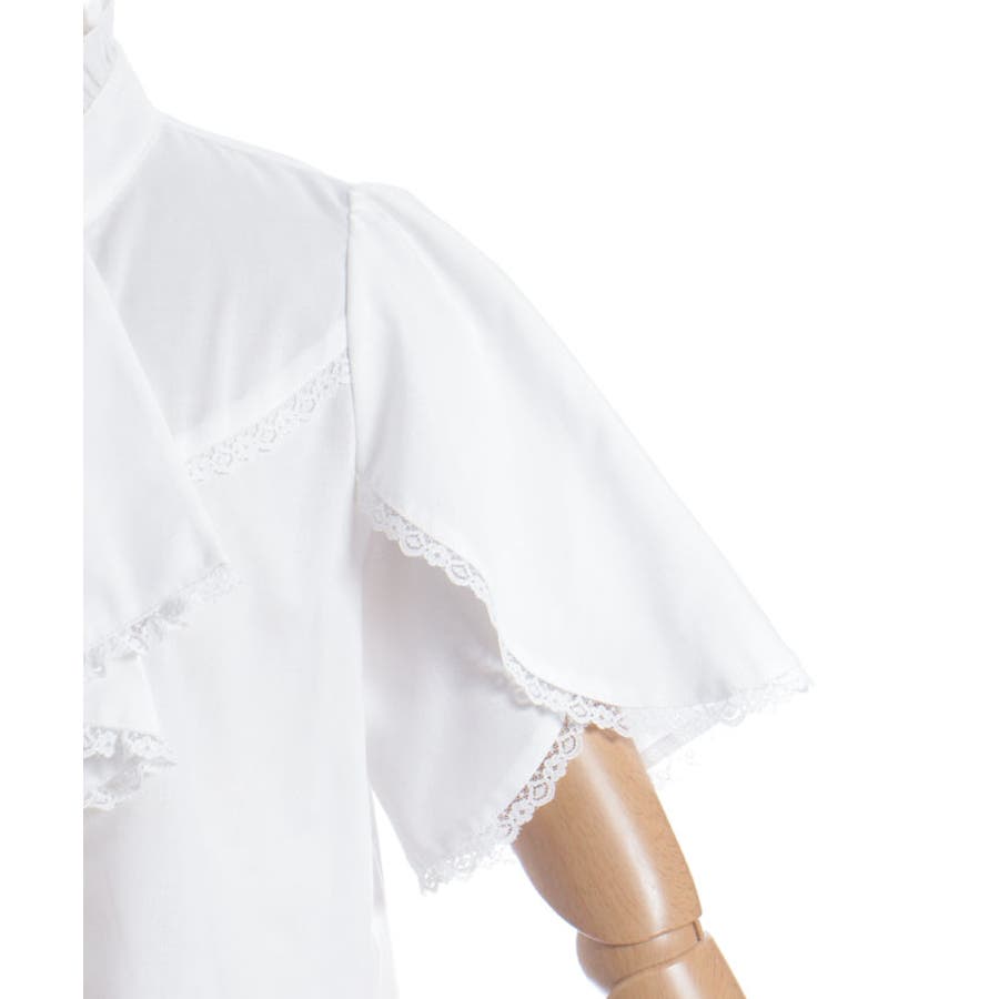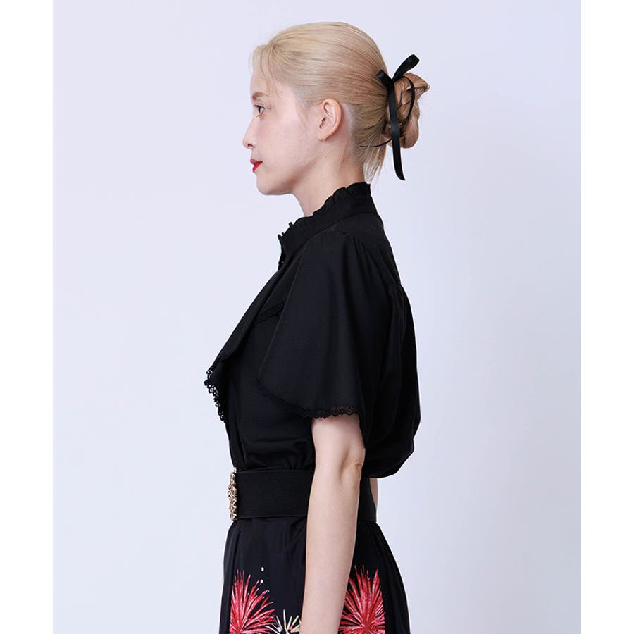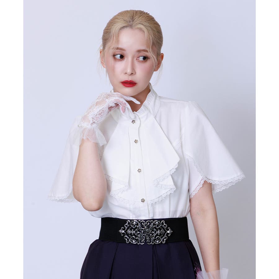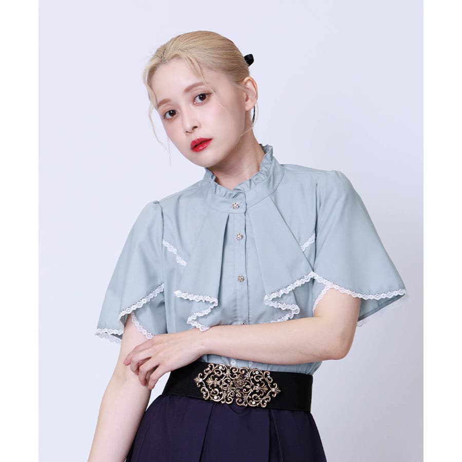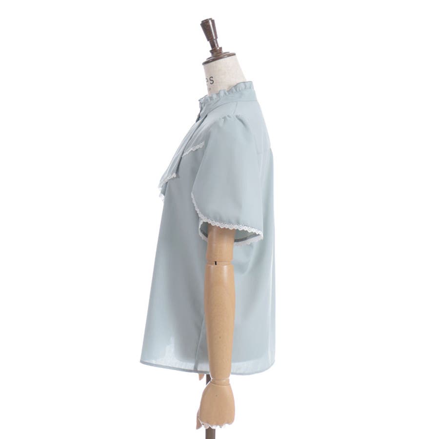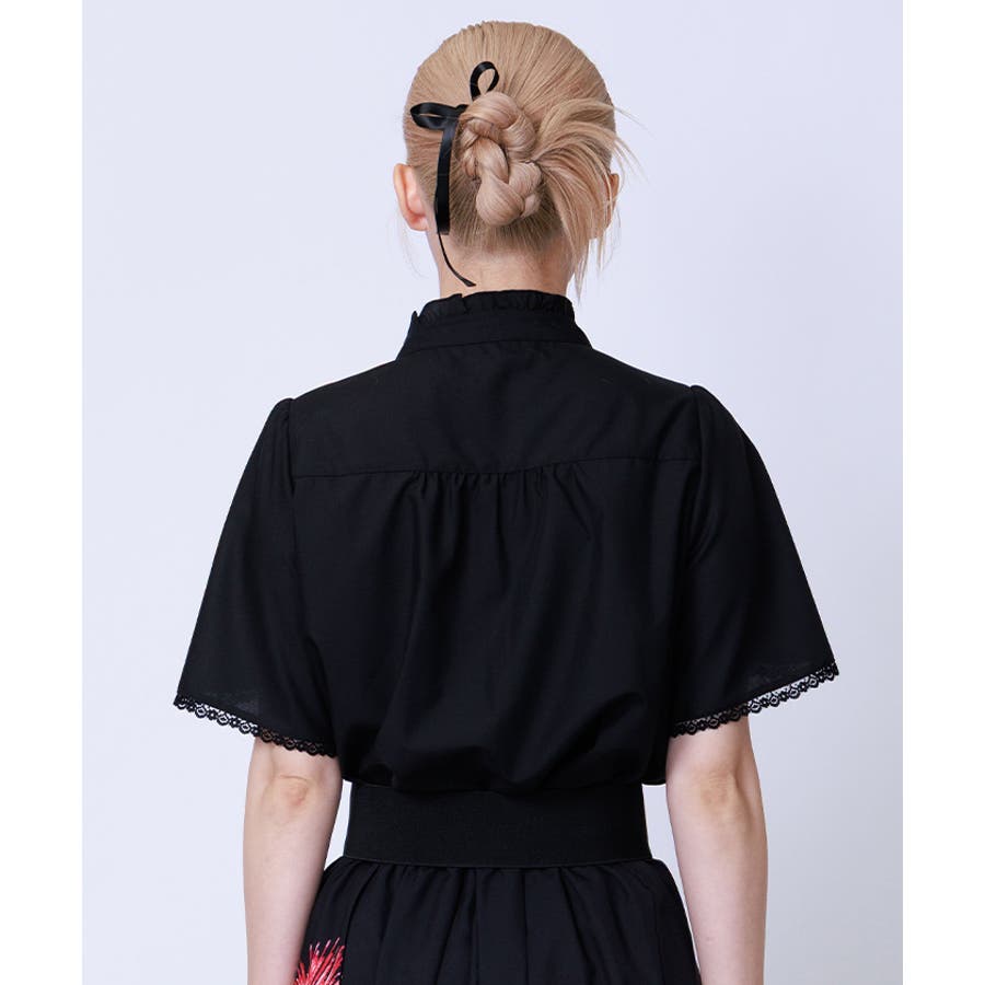 袖口や前立てにあしらった繊細なレースが上品さをプラスし、きちんと感のあるディテールが目を惹く1枚です。