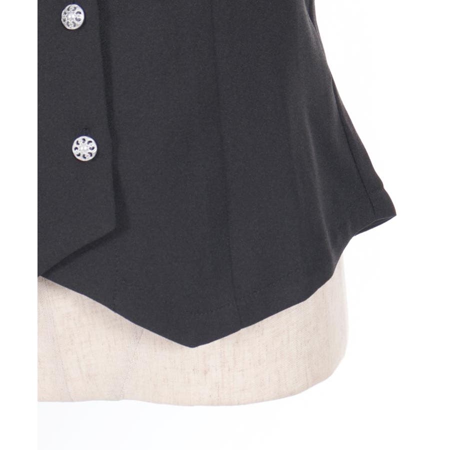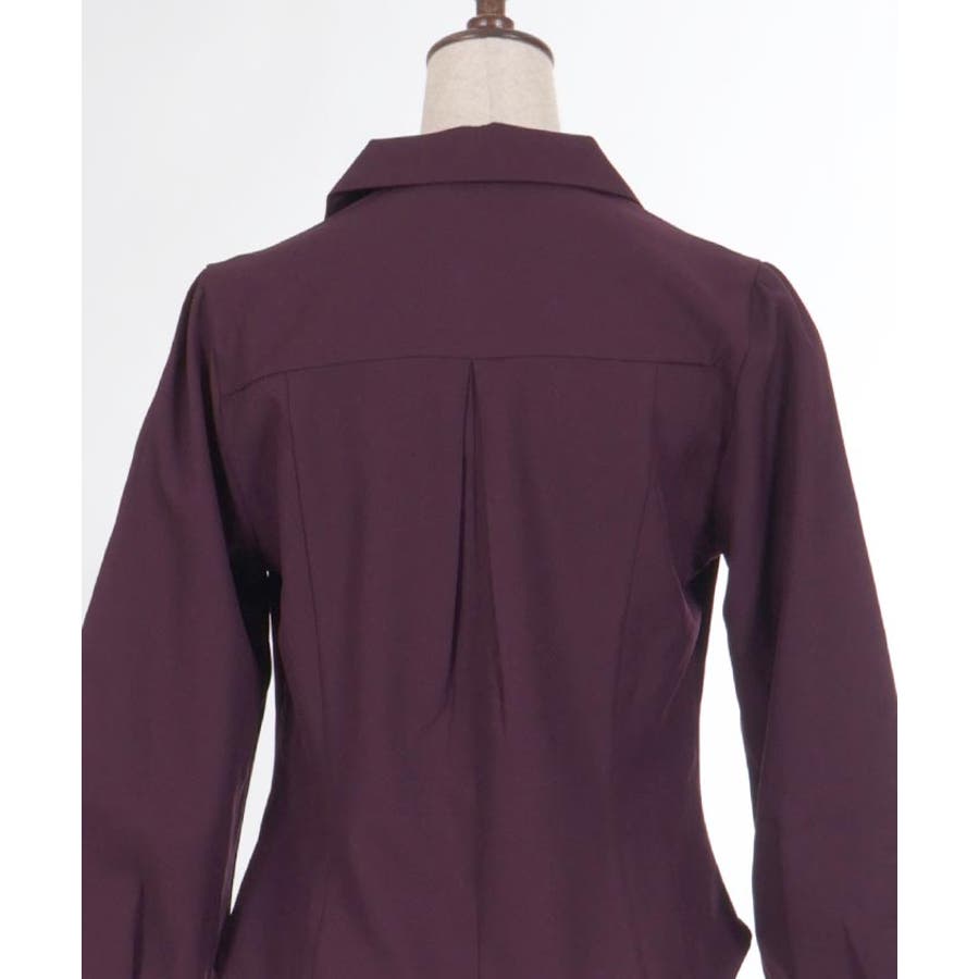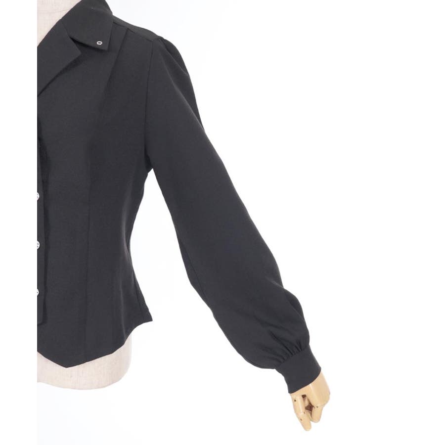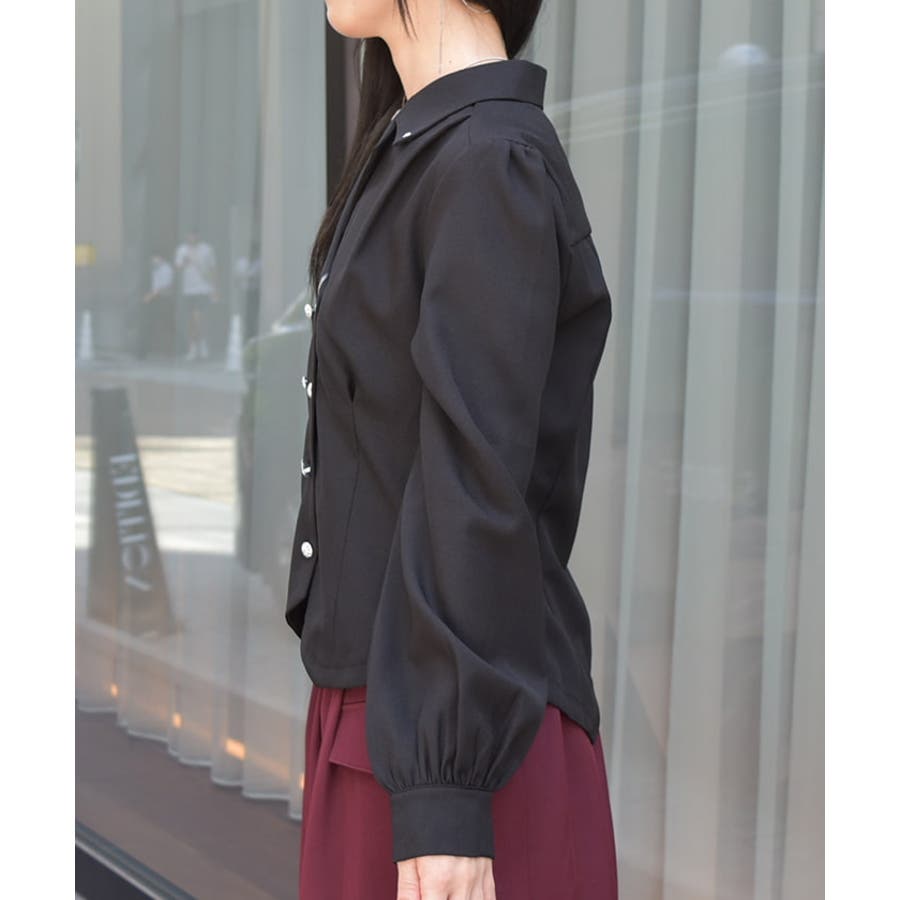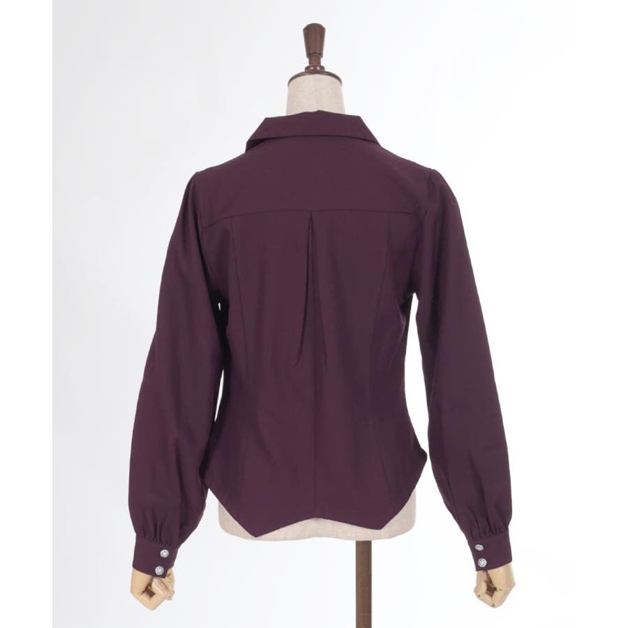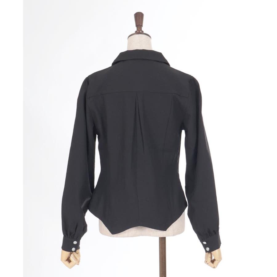 コルセット風のカッティングがシックな印象を与えるブラウスです。