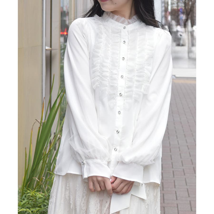 たっぷりなチュールフリルが着る人を彩るブラウス