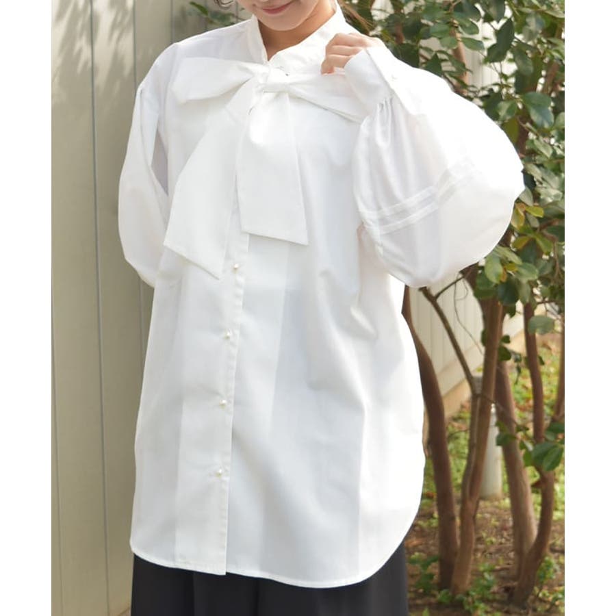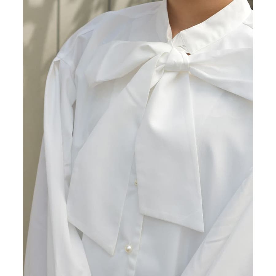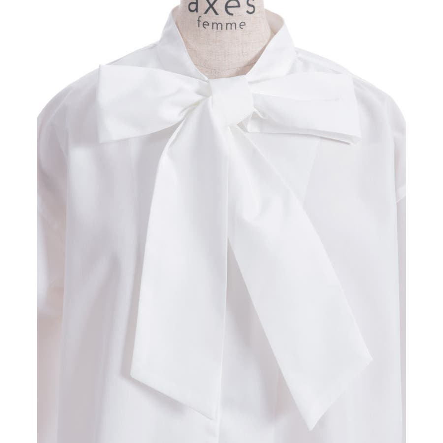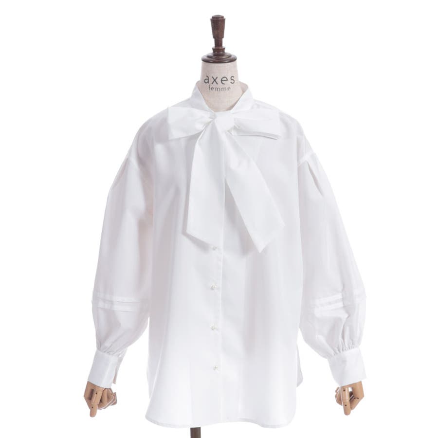 胸元のビッグリボンがポイントのボウタイブラウスです。