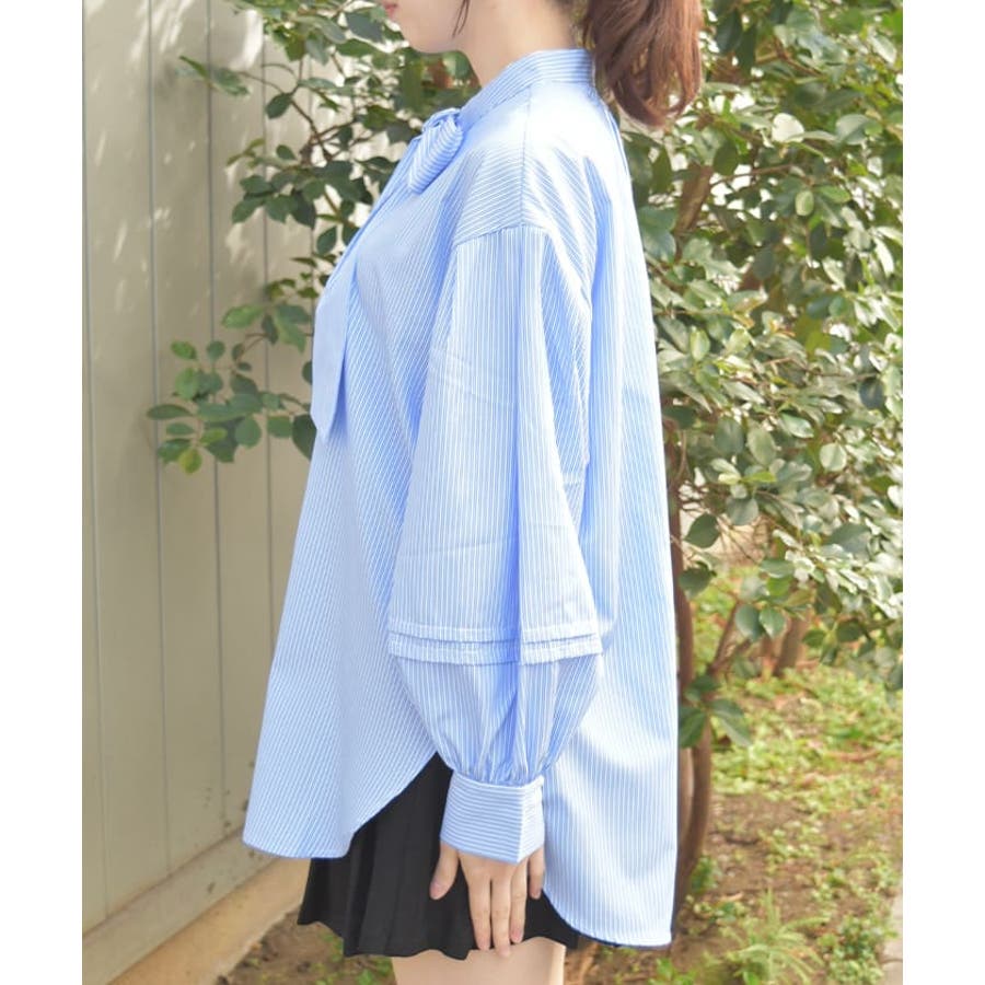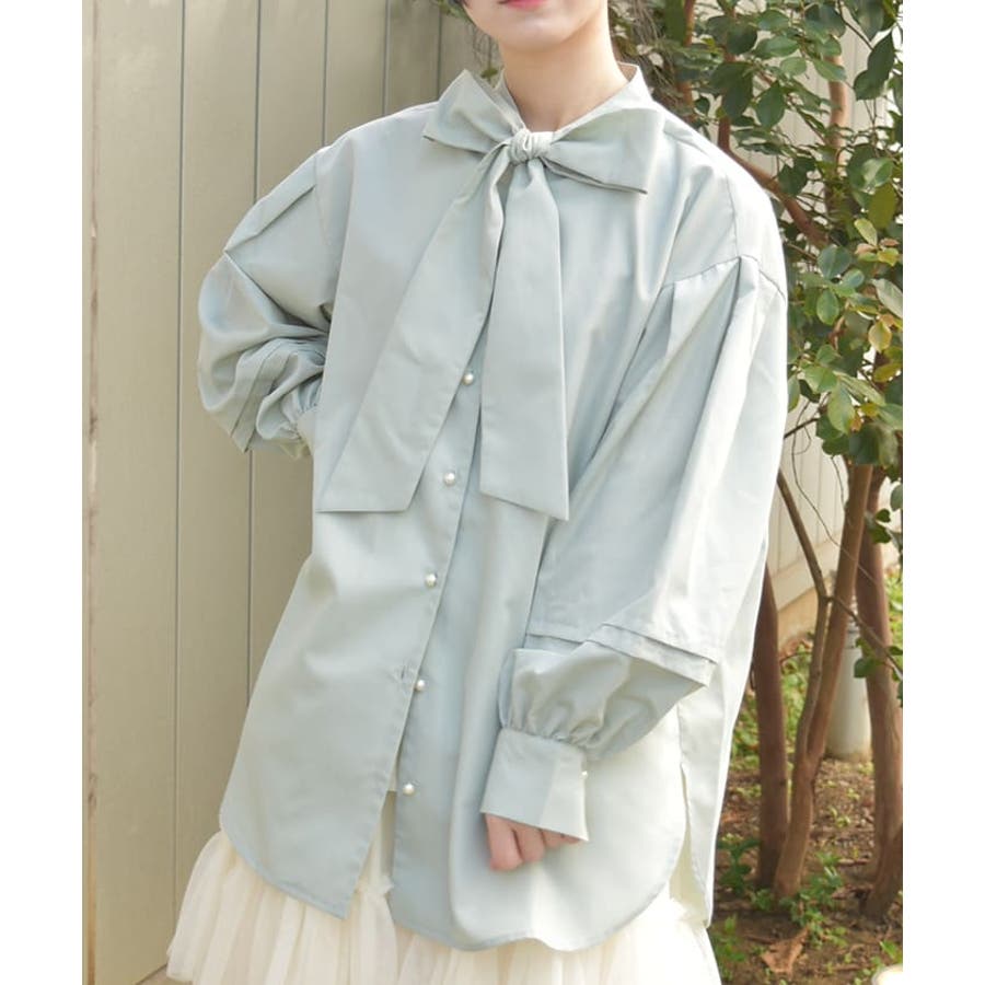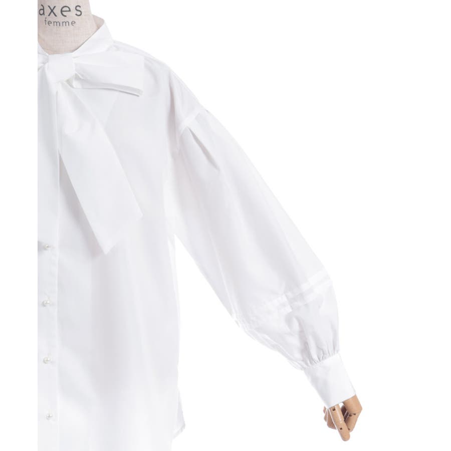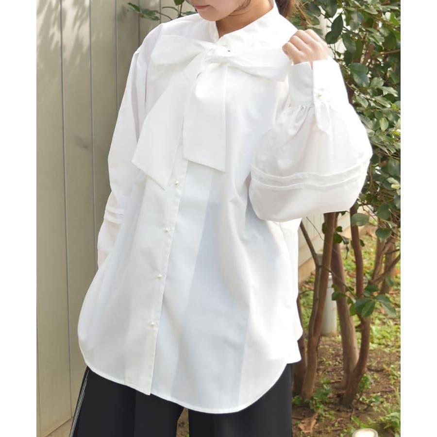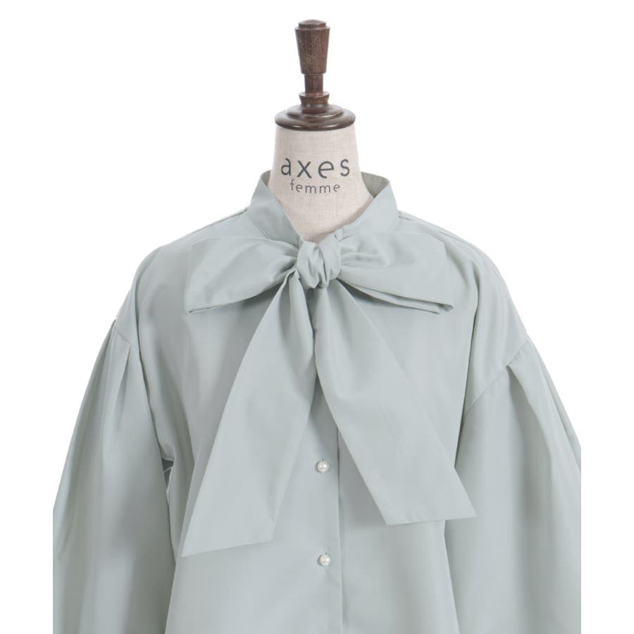 胸元のビッグリボンがポイントのボウタイブラウスです。