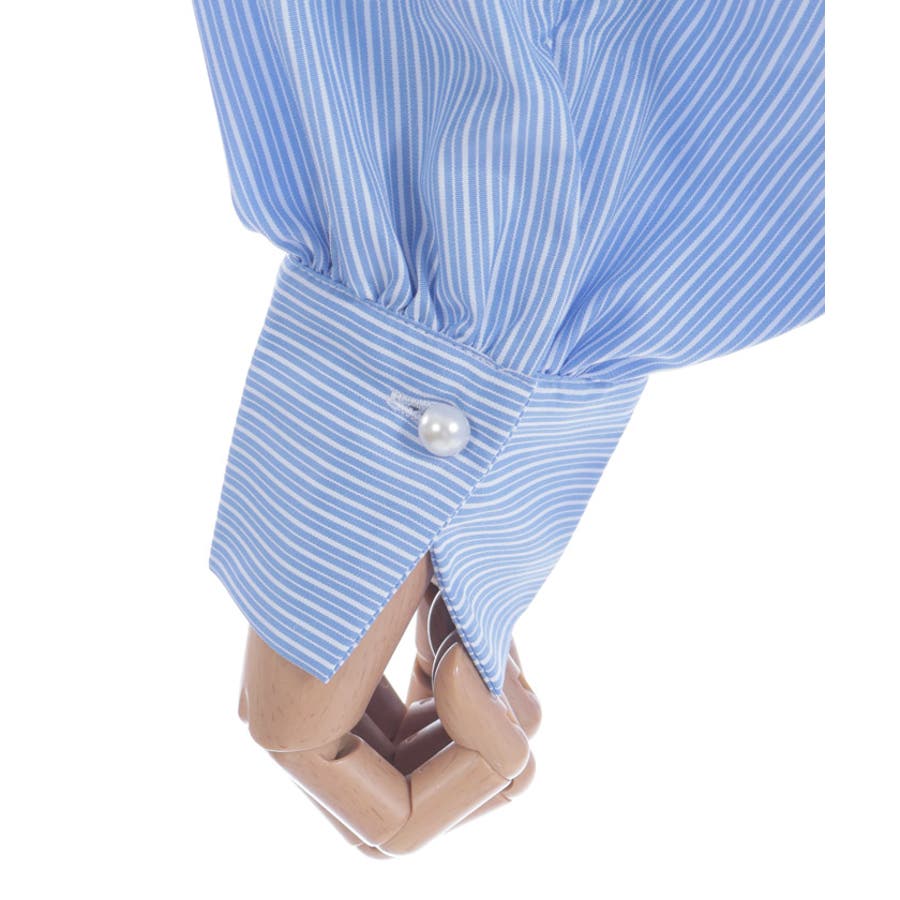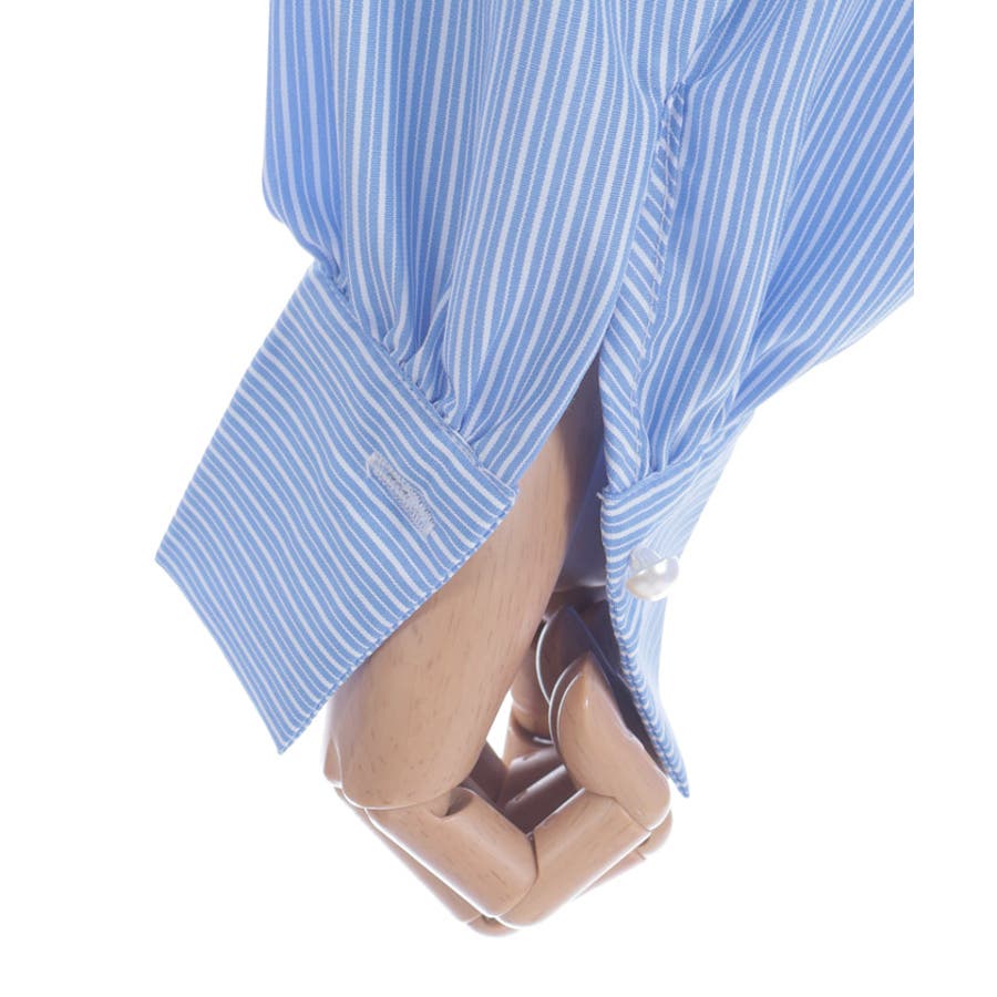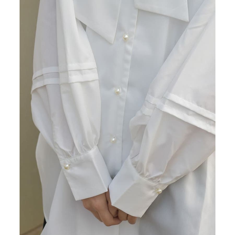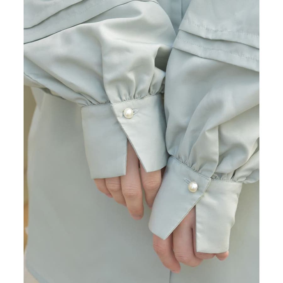 長めのカフスに1つのパールボタンで、バランス感がポイント。