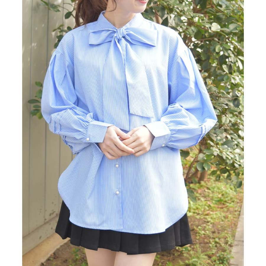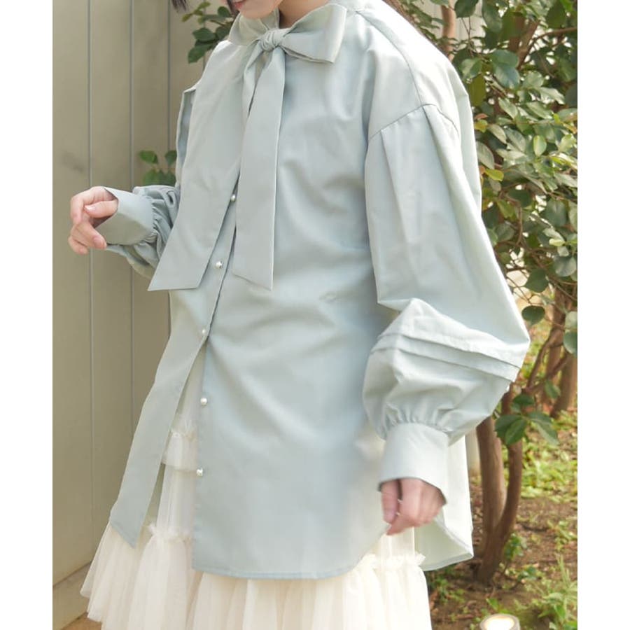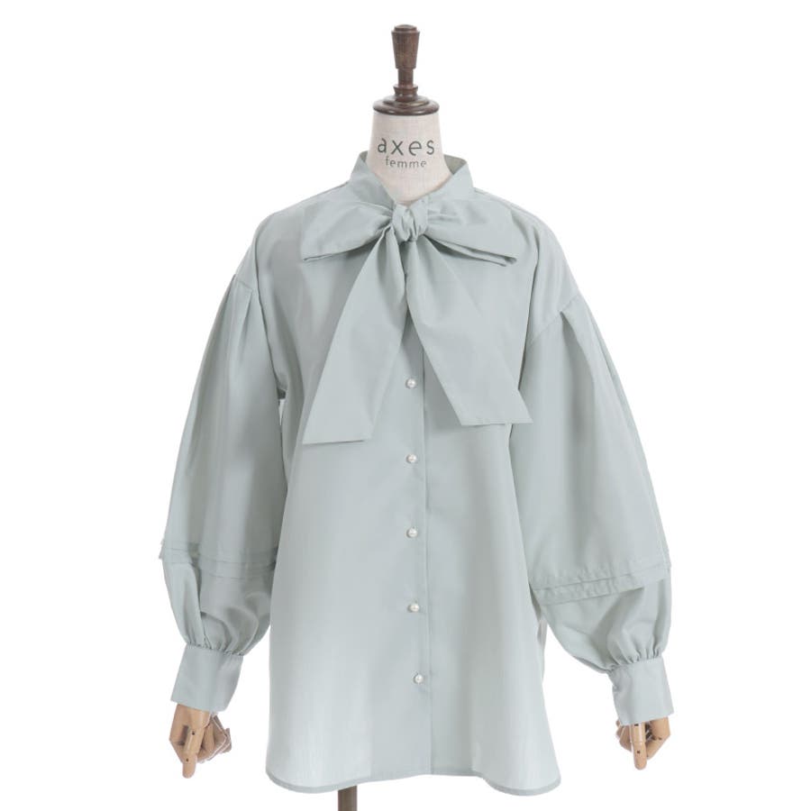 ボリューム袖ボウタイブラウス
