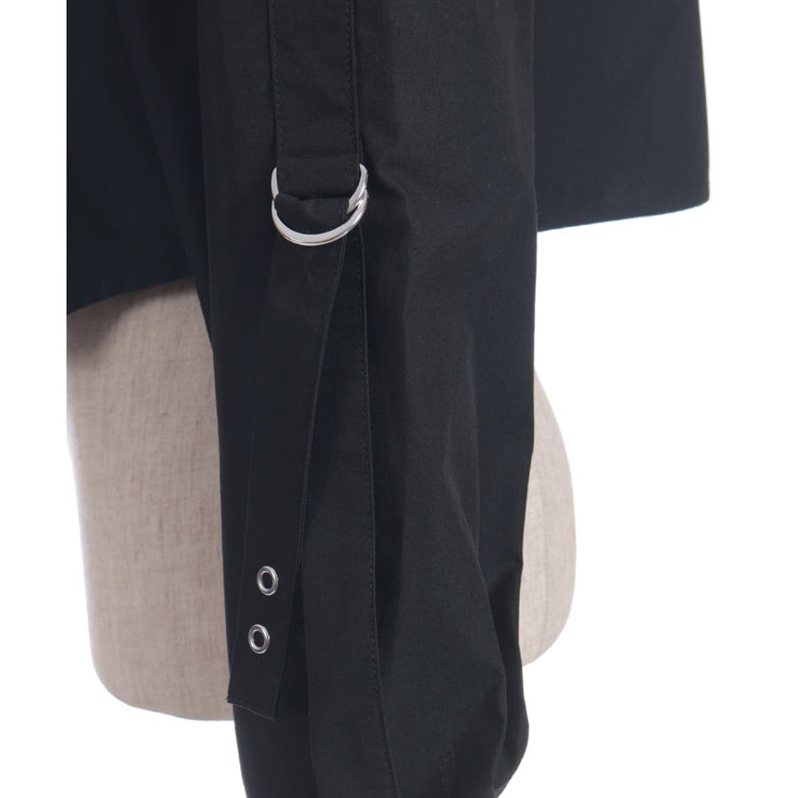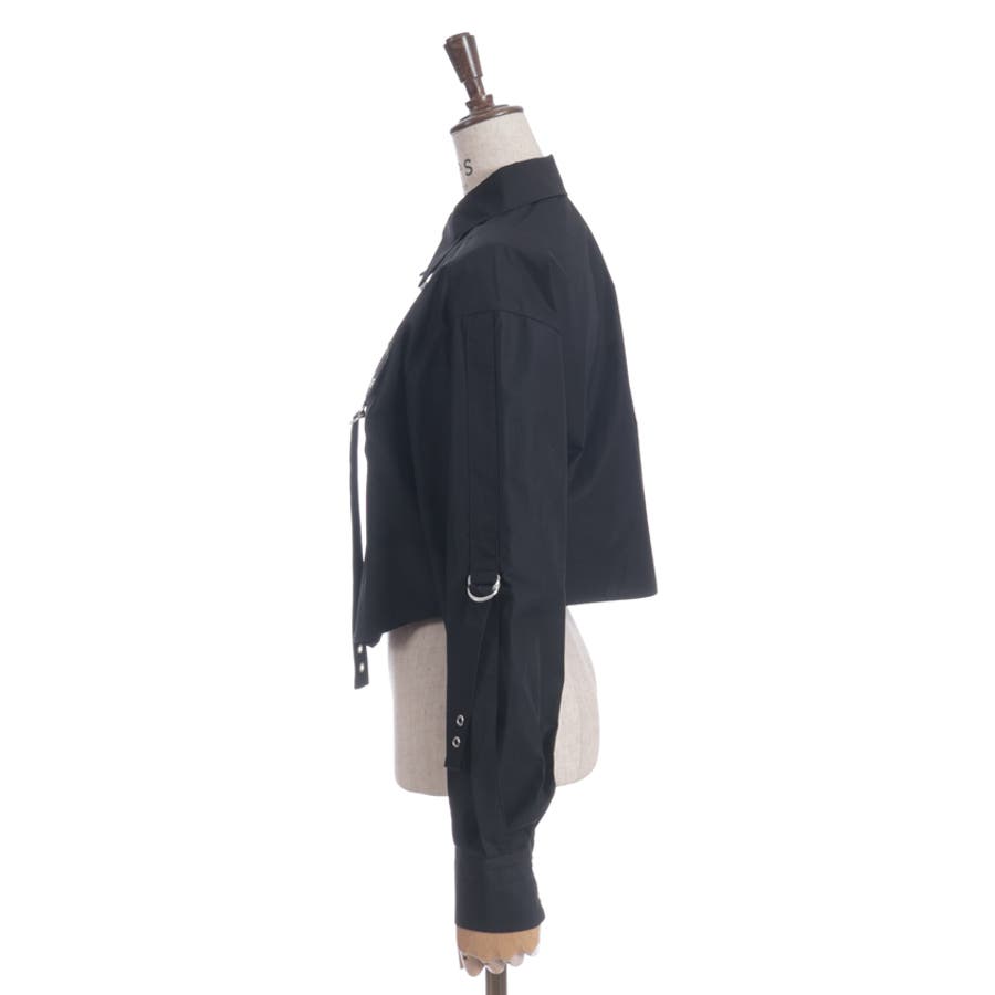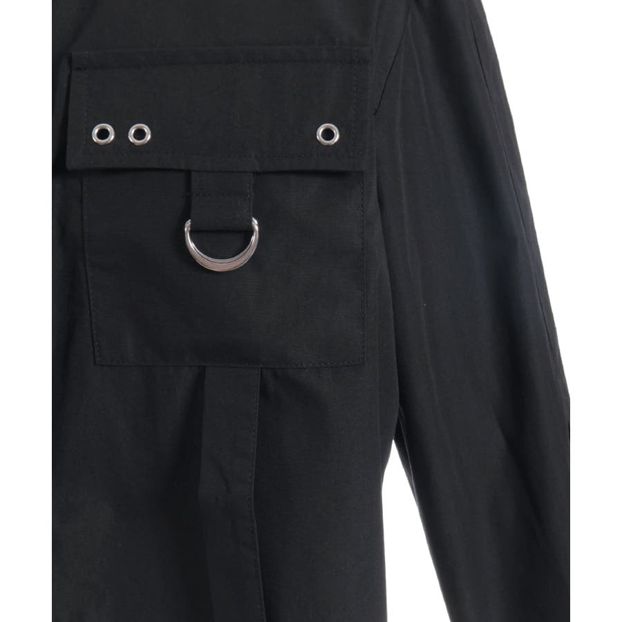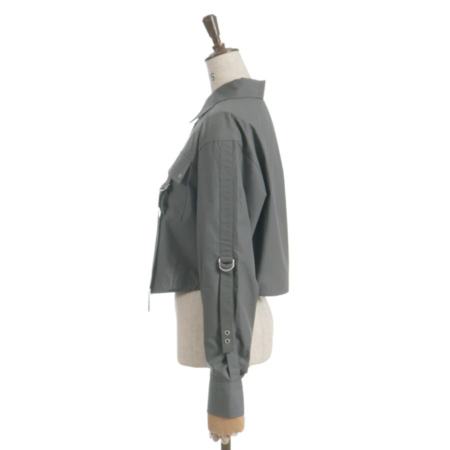 胸元のフラップポケットやストラップデザイン、並んだボタンがモードなアクセント。コンパクトな丈感と程よいハリのある素材で、きれいめにもカジュアルにも使いやすいデザインです。