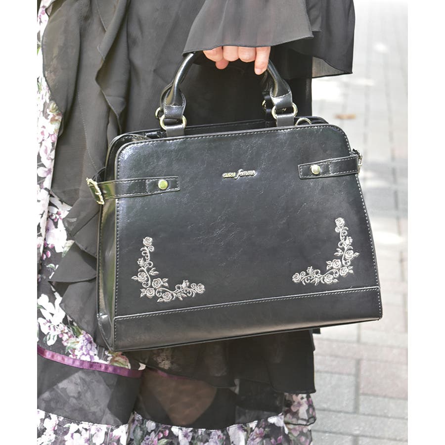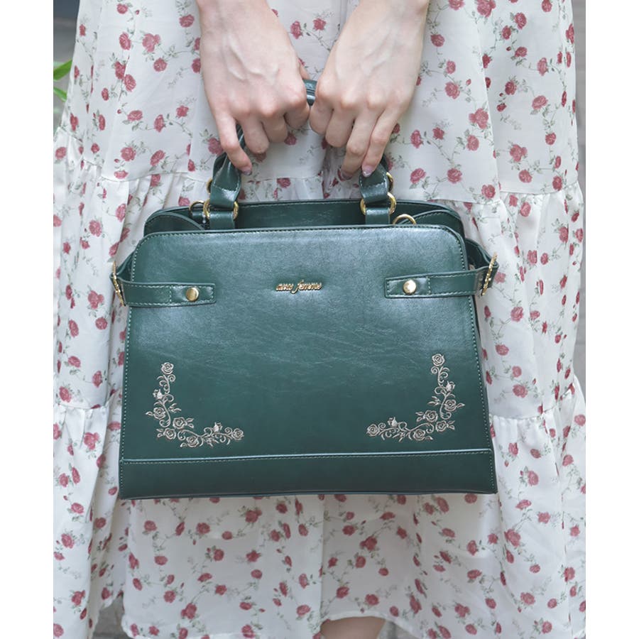 重厚なカラーに薔薇刺繍が映える、クラシカルなボストンバッグです。