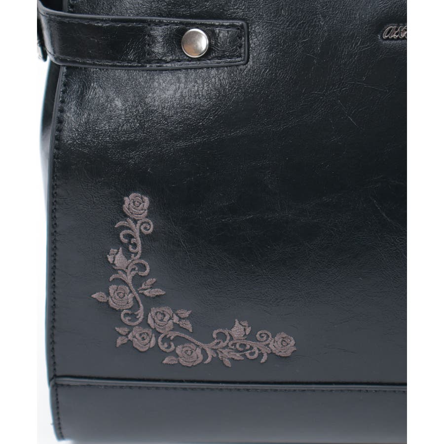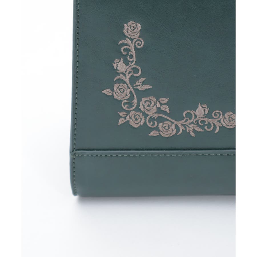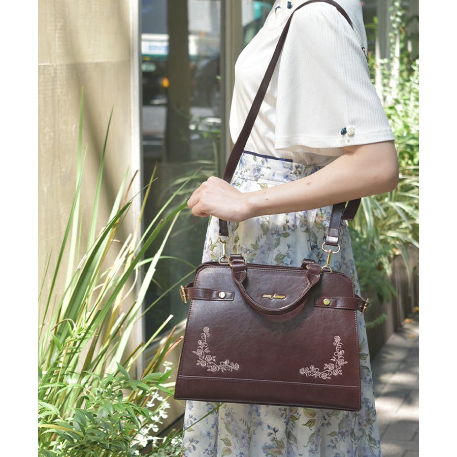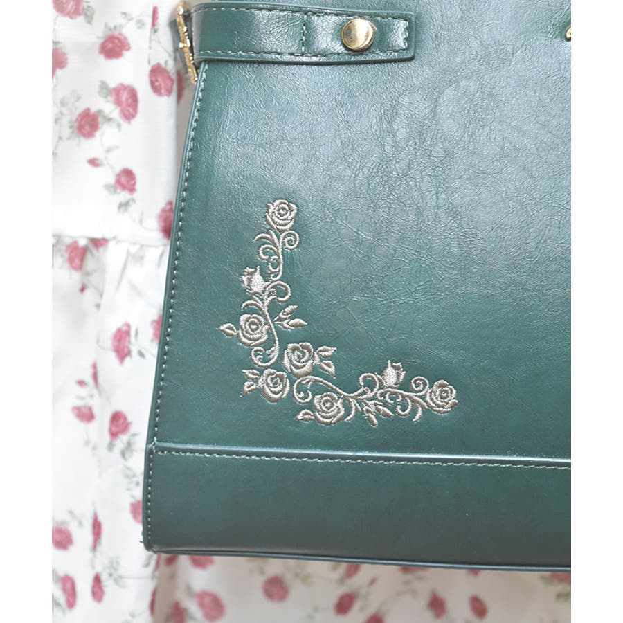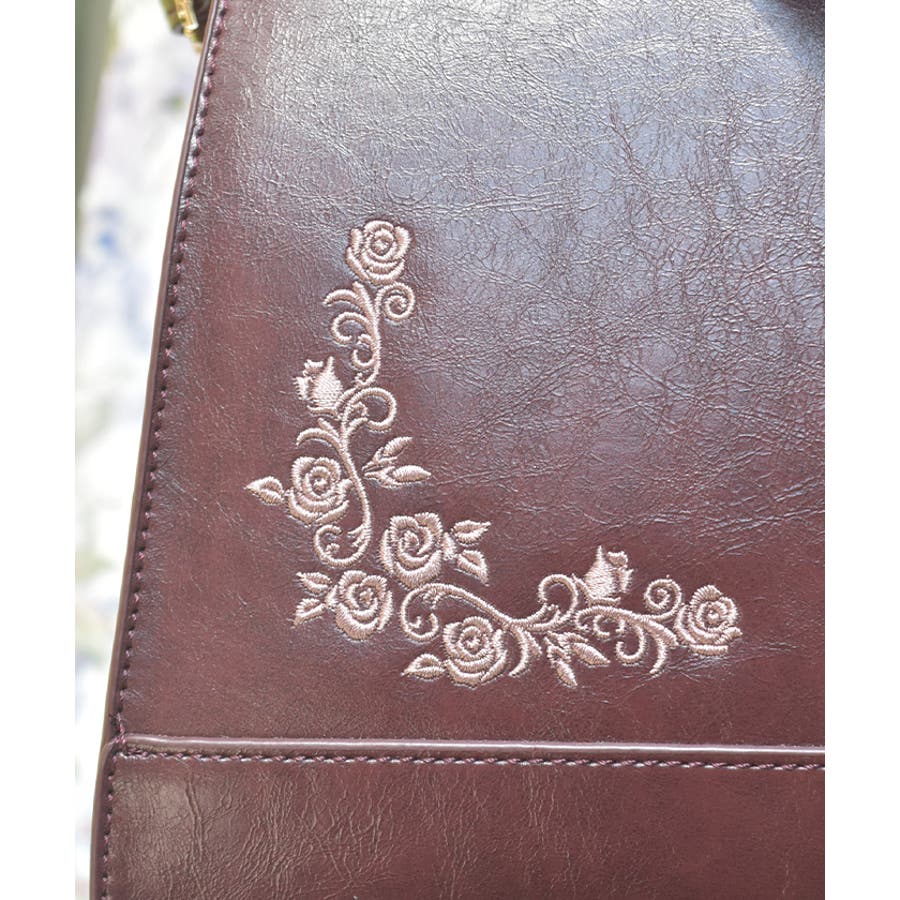 フロントデザインはシンプルな金具と繊細な薔薇刺繍をあしらい、ほんのり華やかで上品な印象に仕上げています。