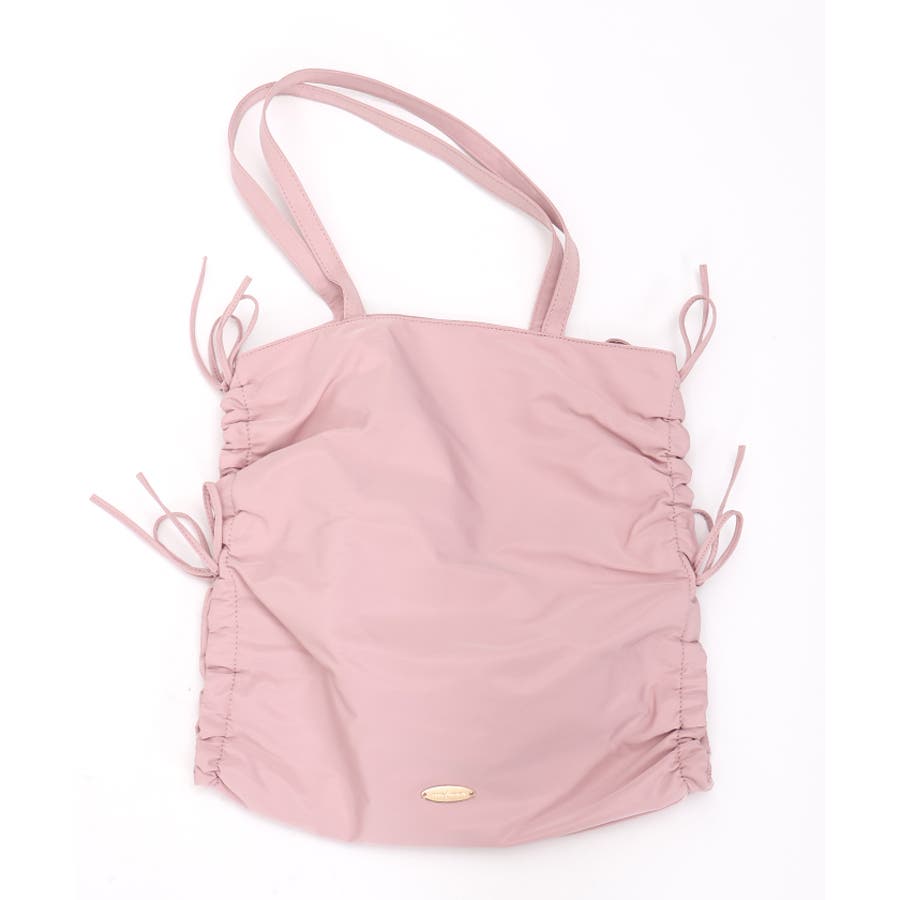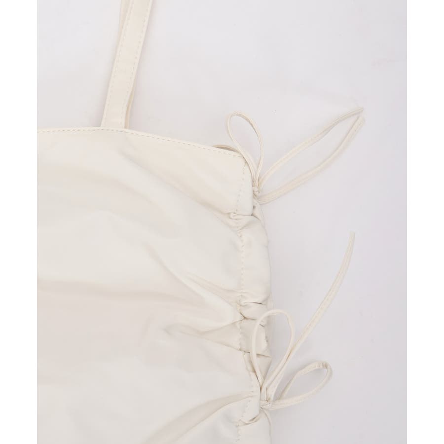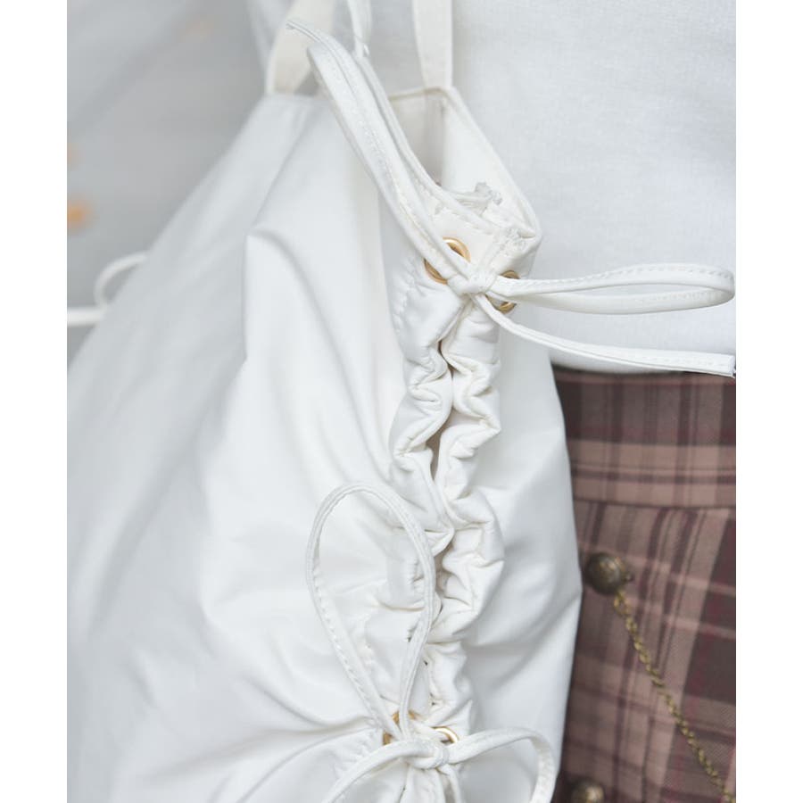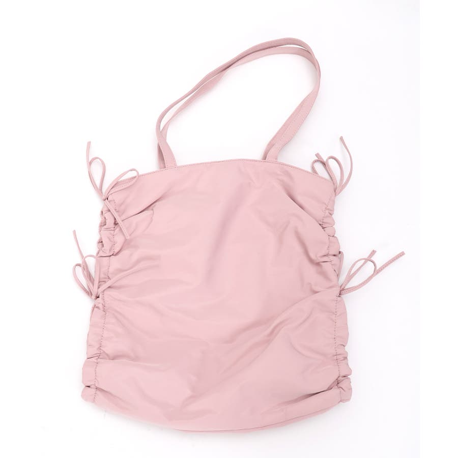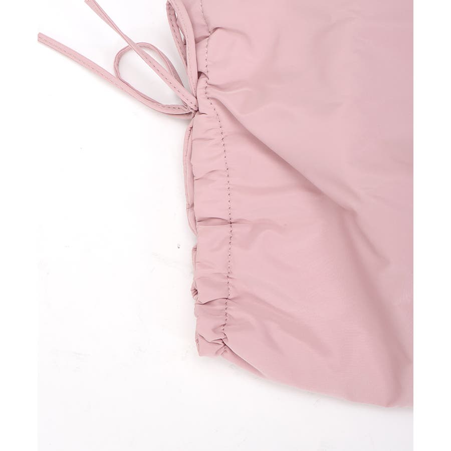 ギャザーの立体感と細リボンがアクセントになったデザイン。