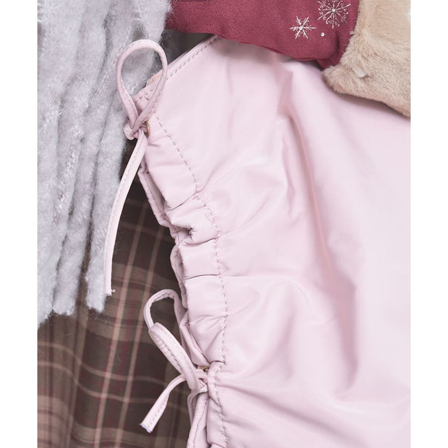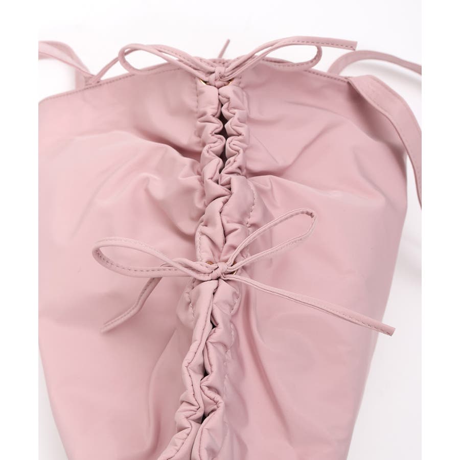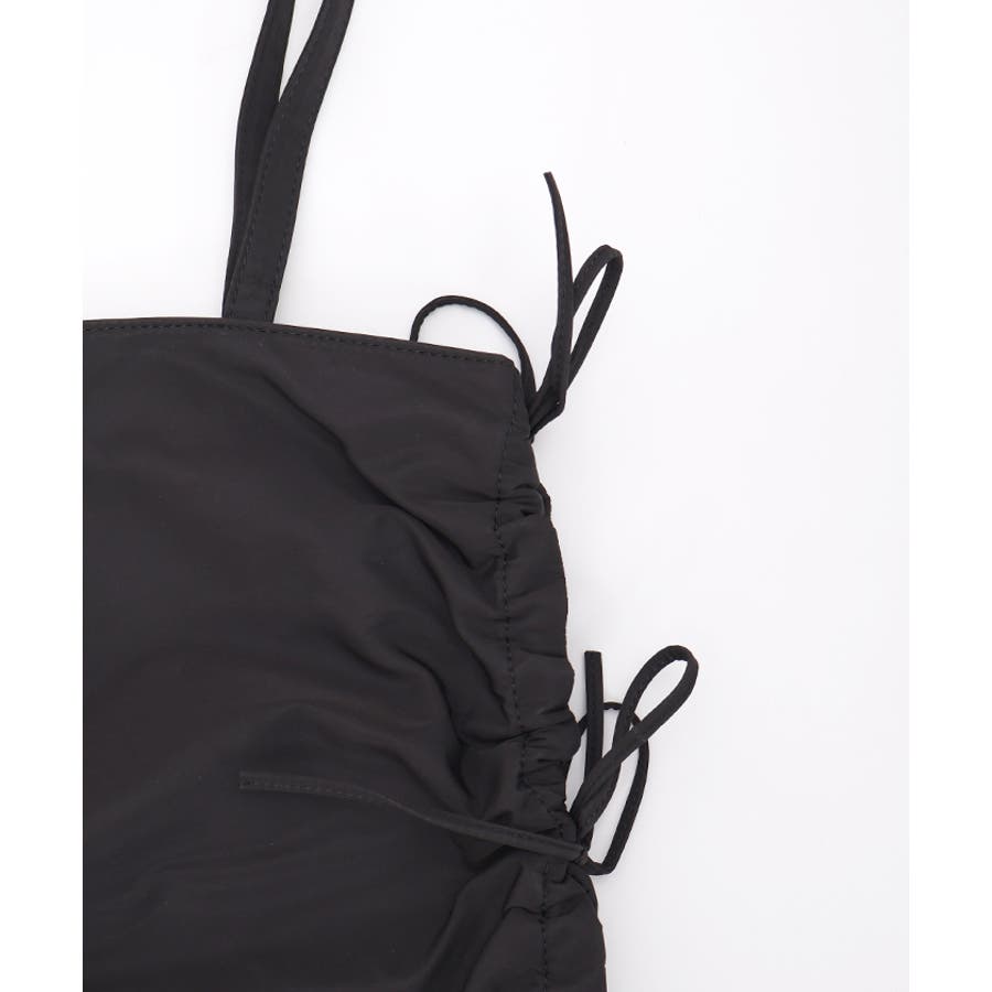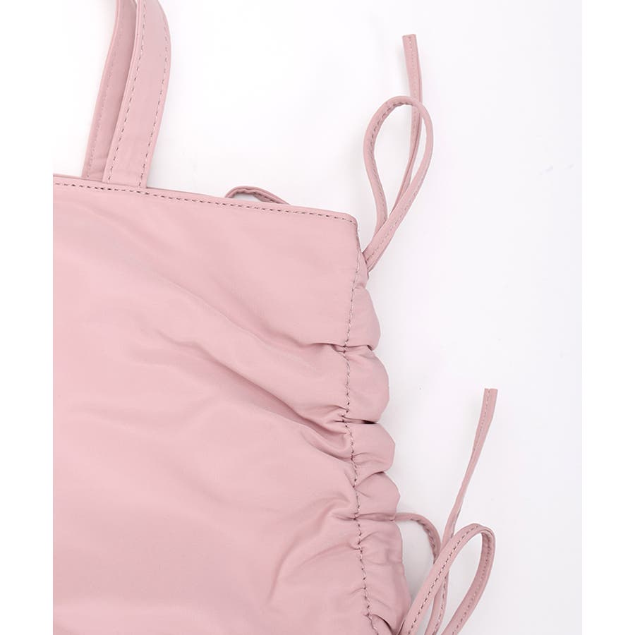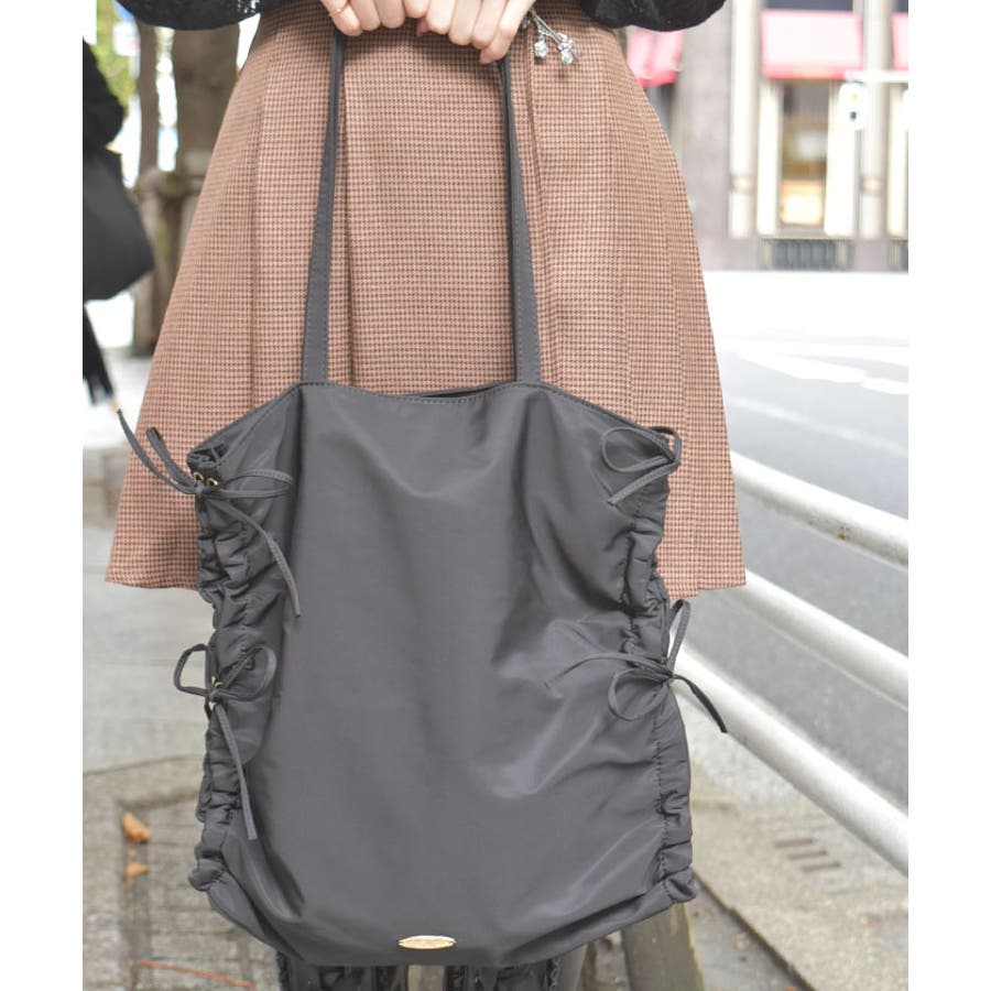 ギャザーの立体感と細リボンがアクセントになったデザイン。