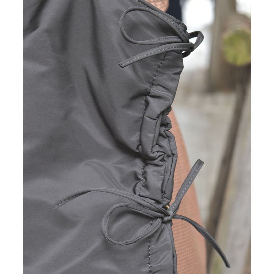 両サイドのドロストは、引っ張ってタテのサイズ感やギャザー分量を調節することが可能です。