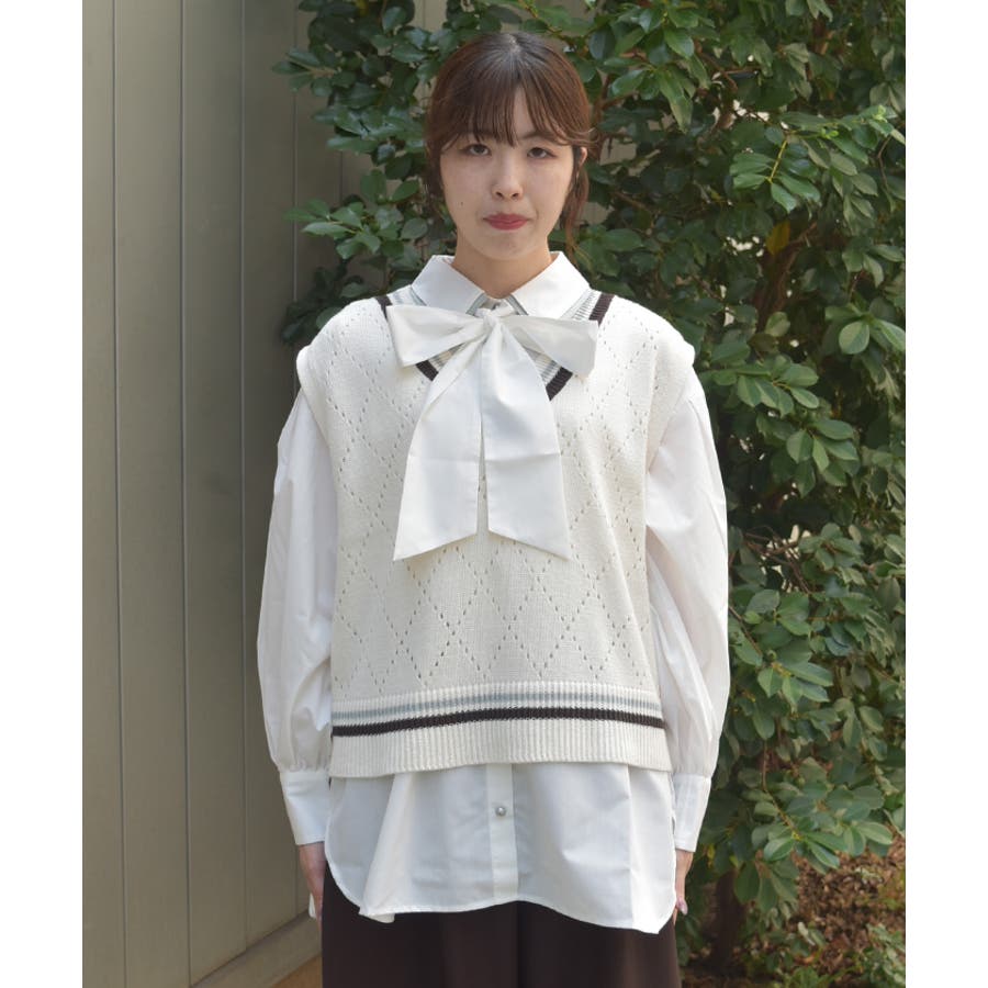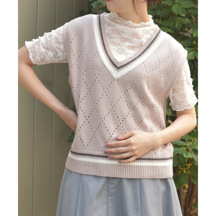 ダイヤの透かし編み入りで程よく透け感もあるため、季節問わず長く着られます。