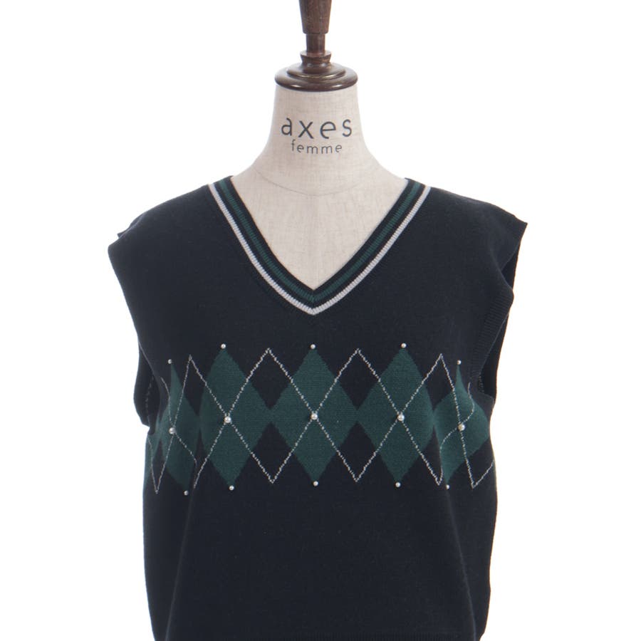 パール付アーガイルベスト