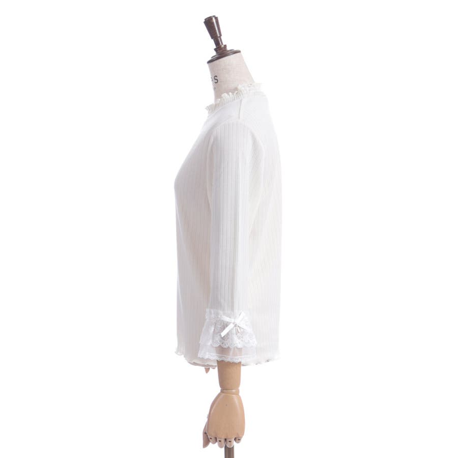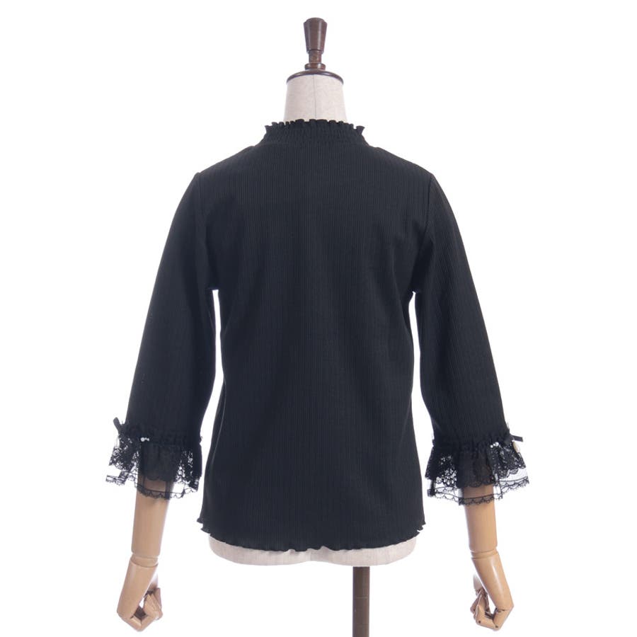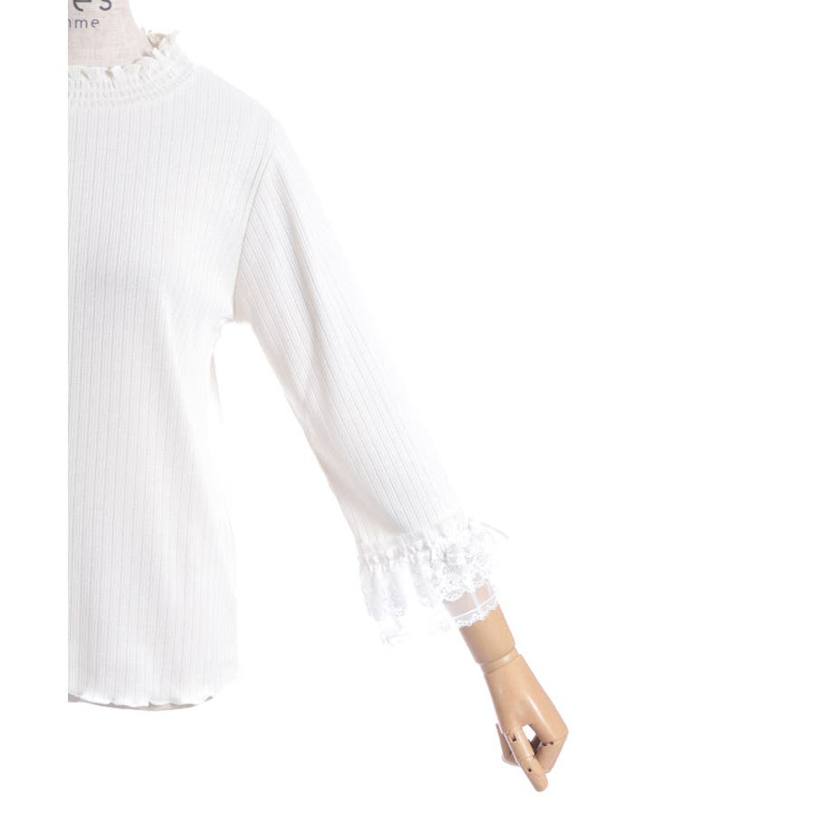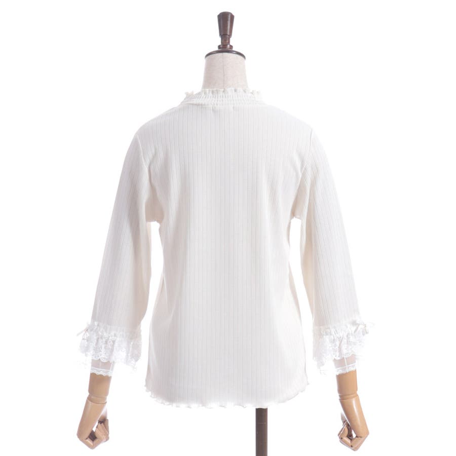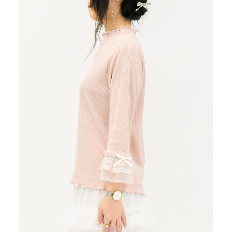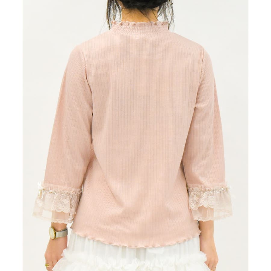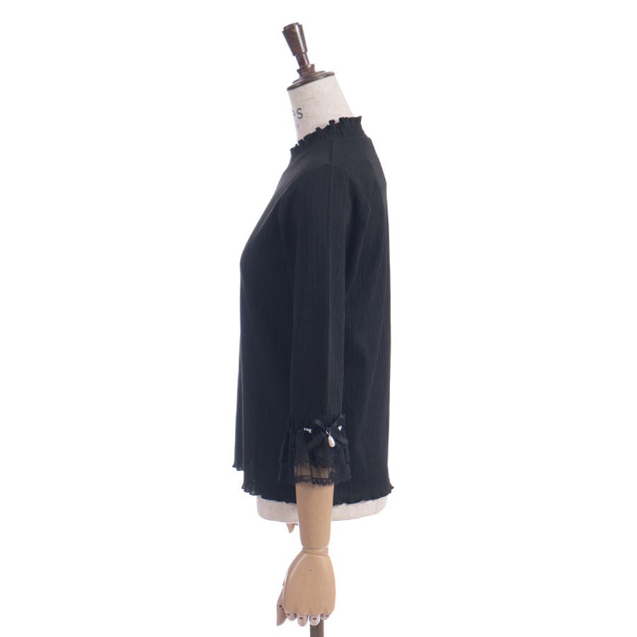レース×チュール×リボンの華やかな袖デザインがポイントの七分袖トップスです。