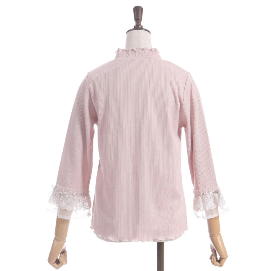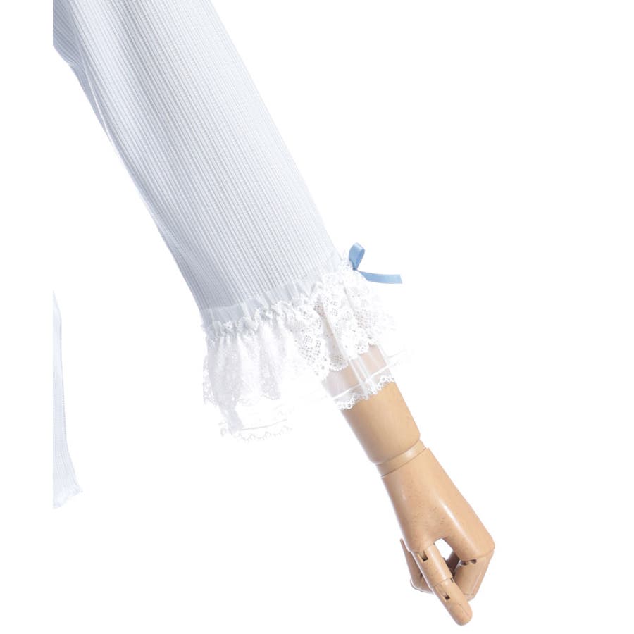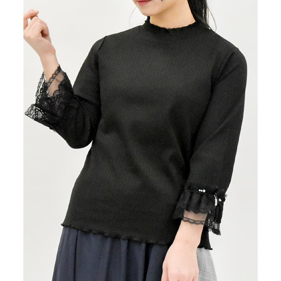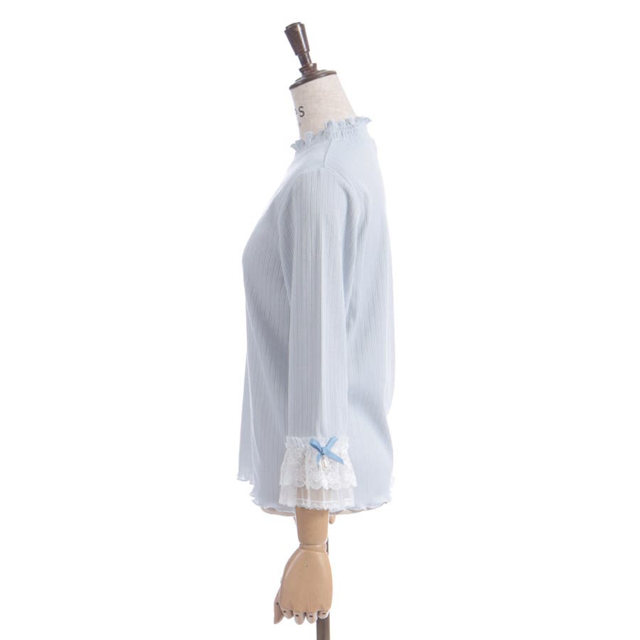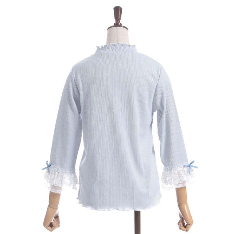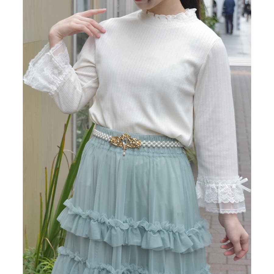 レース×チュール×リボンの華やかな袖デザインがポイントの七分袖トップスです。