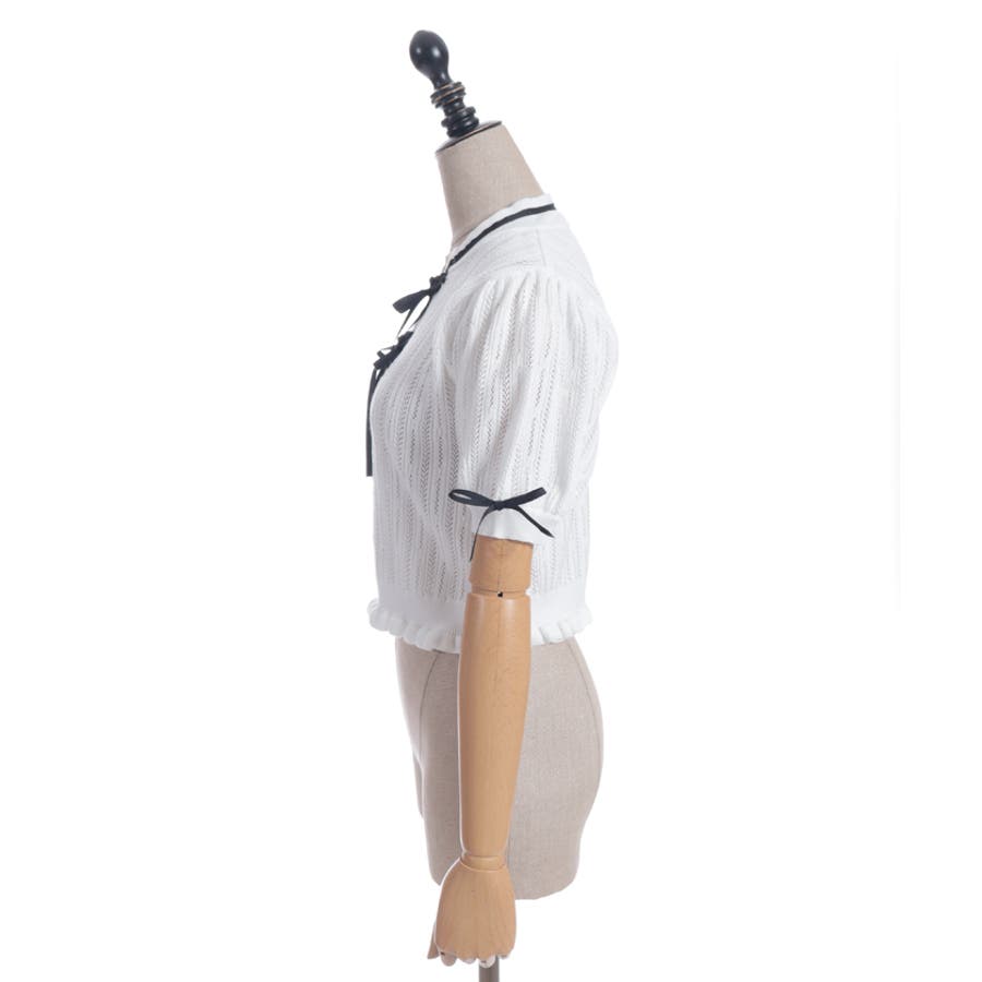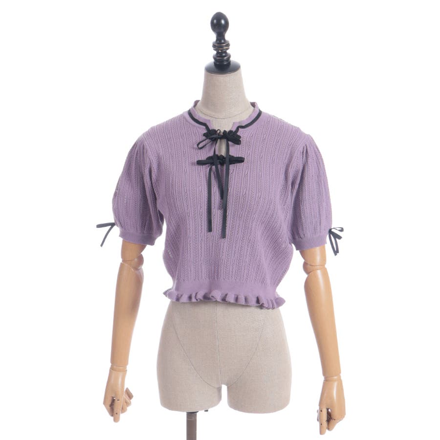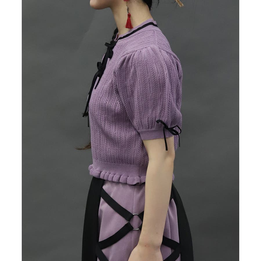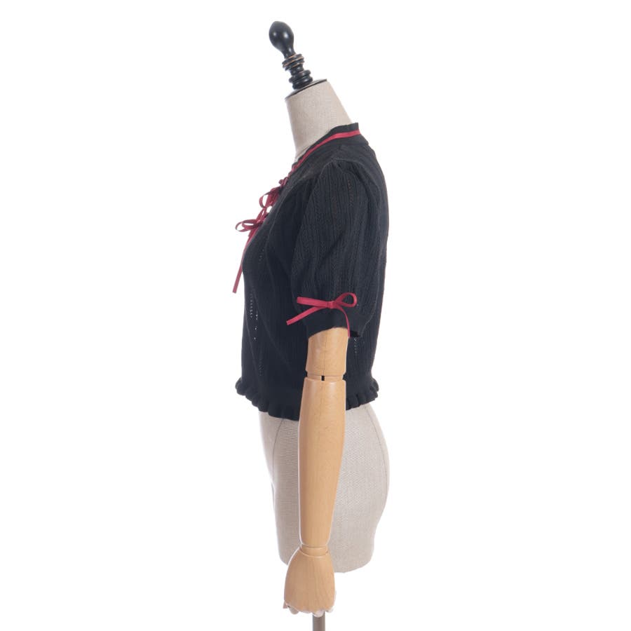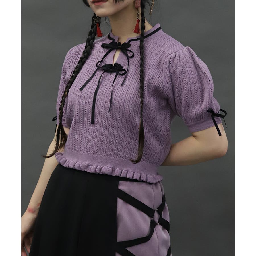 配色のチャイナボタンとリボンが映えるのでコーデのワンポイントにピッタリなトップスです。